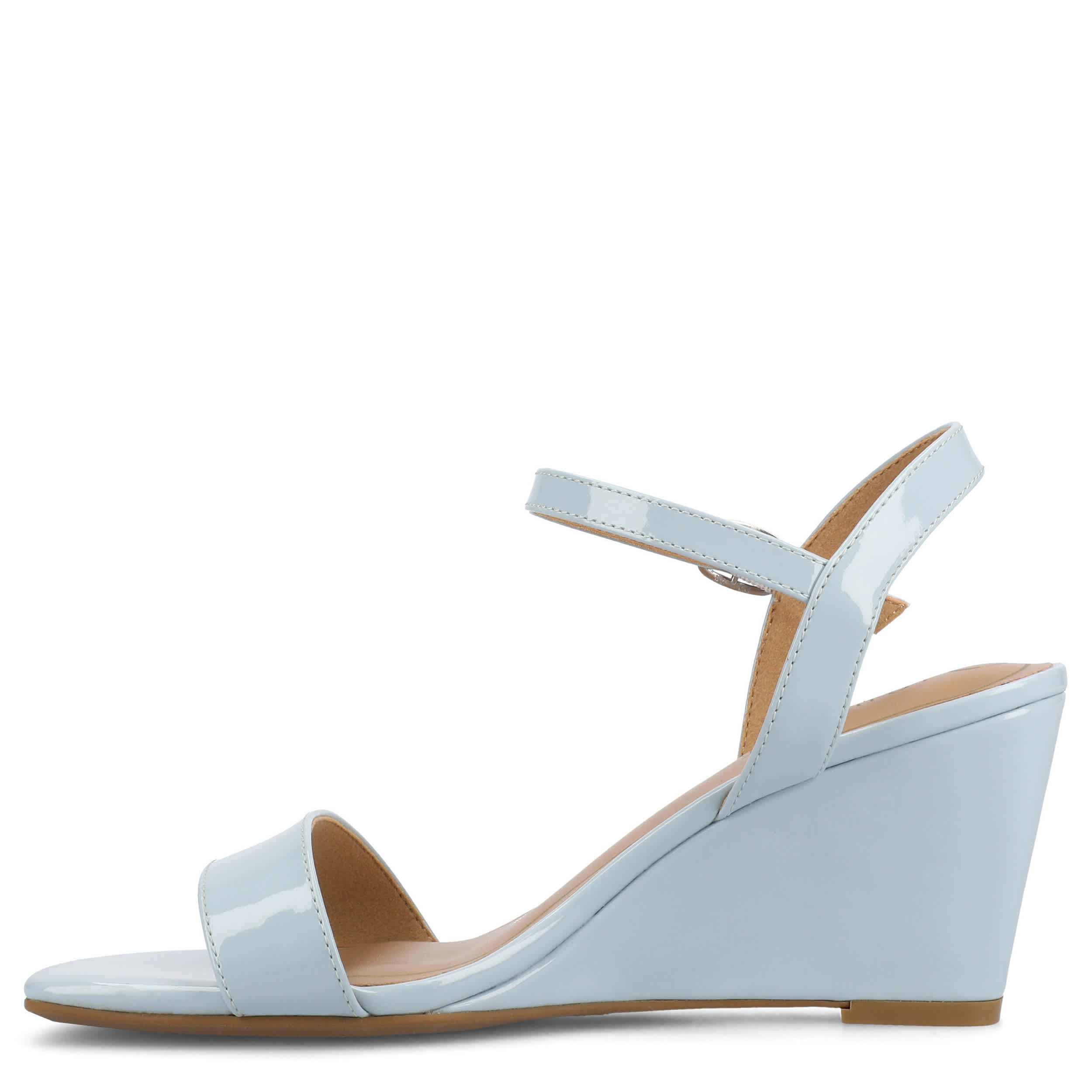 Summer style is versatile with the Clayr wedge sandal from Journee Collection. A glossy patent leather upper is paired with a simple design to enable so many fashionable moments. The insole comforts your steps, while the wedge heel offers a supportive lift.