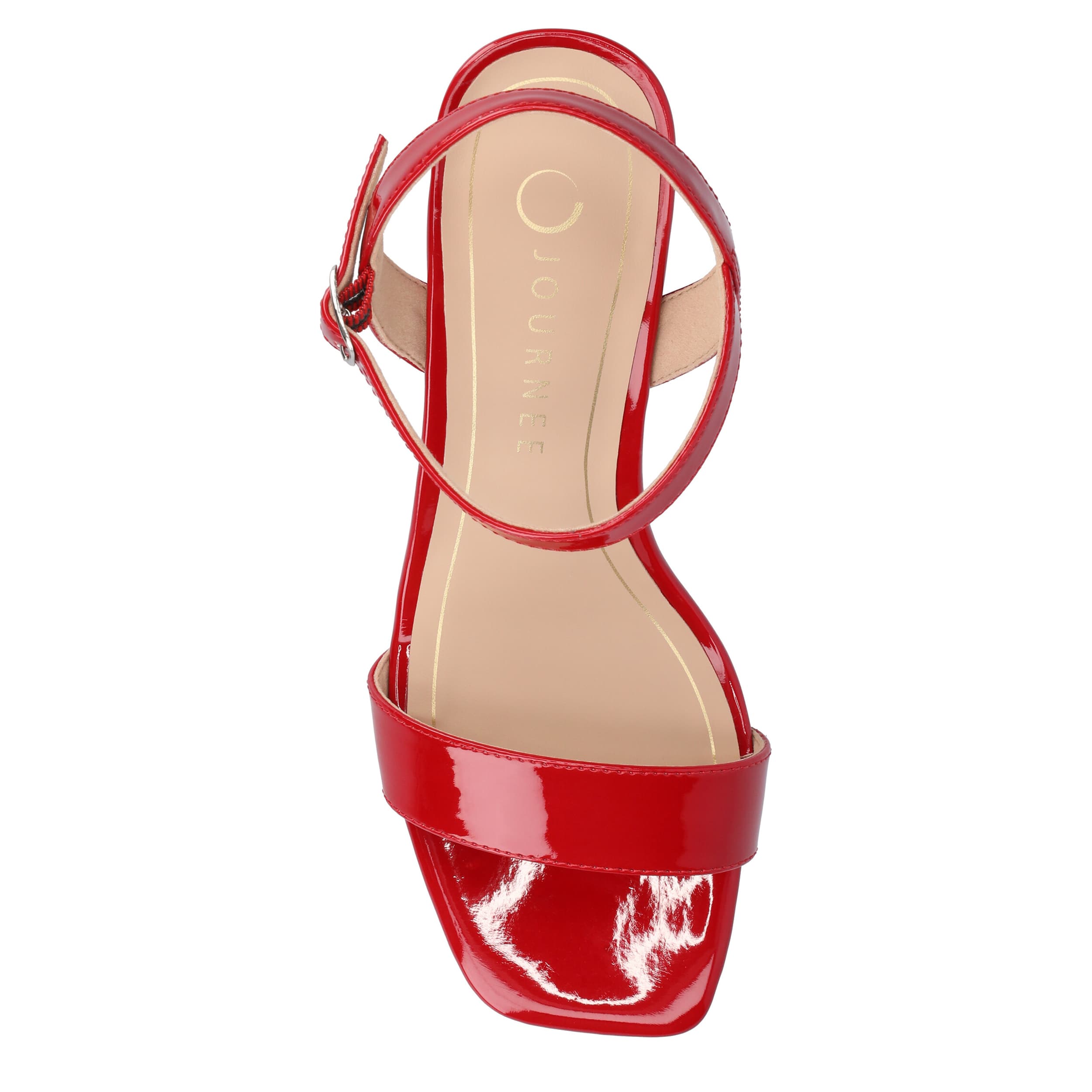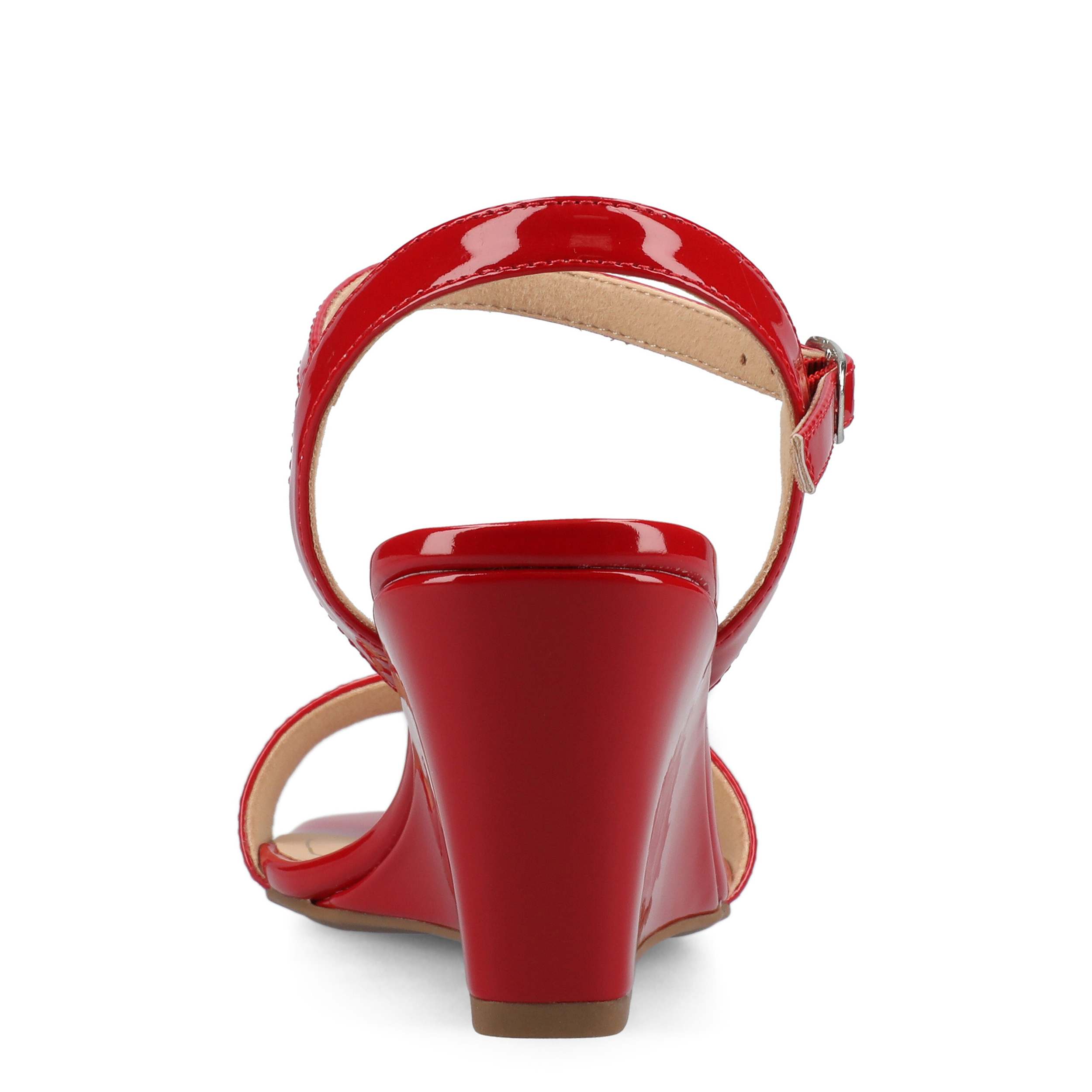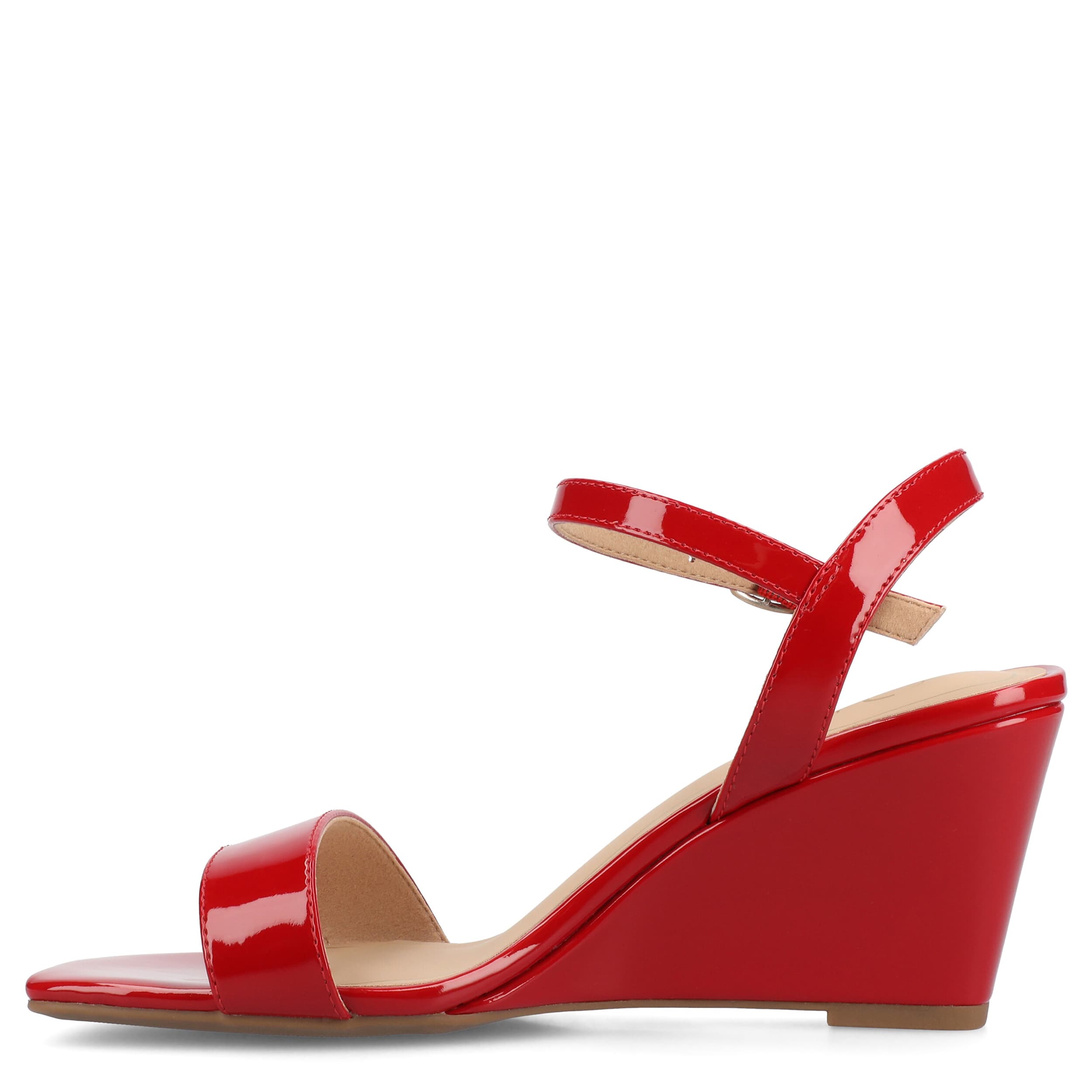 Summer style is versatile with the Clayr wedge sandal from Journee Collection. A glossy patent leather upper is paired with a simple design to enable so many fashionable moments. The insole comforts your steps, while the wedge heel offers a supportive lift.