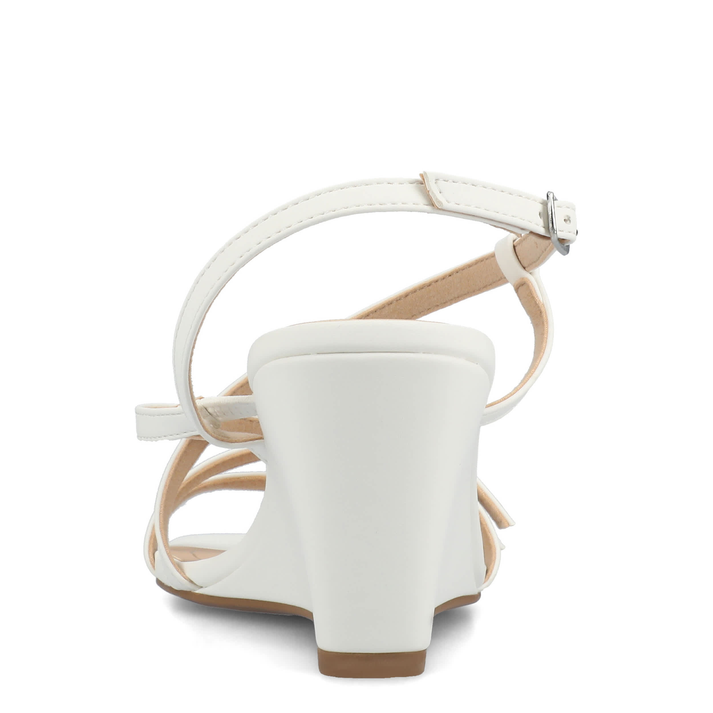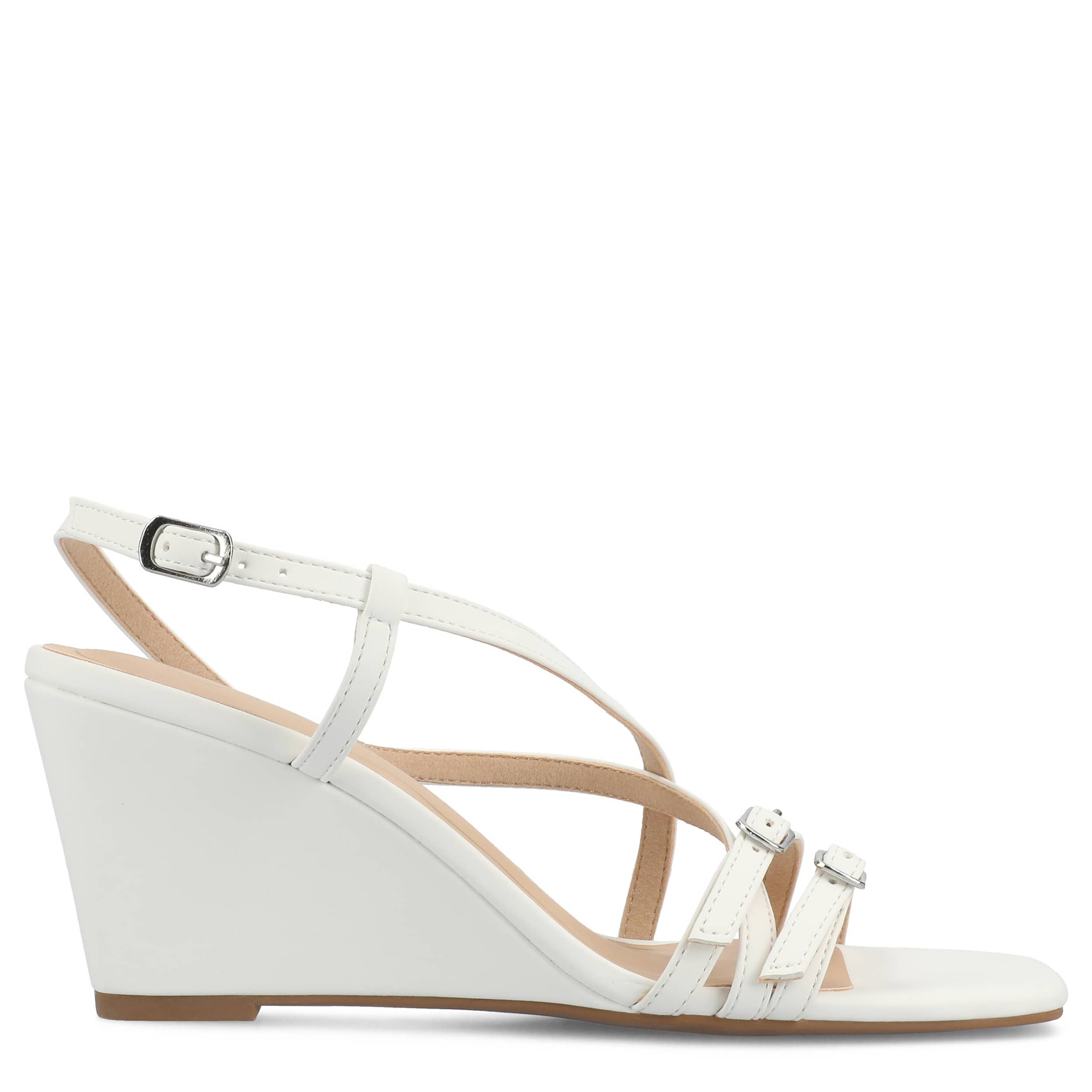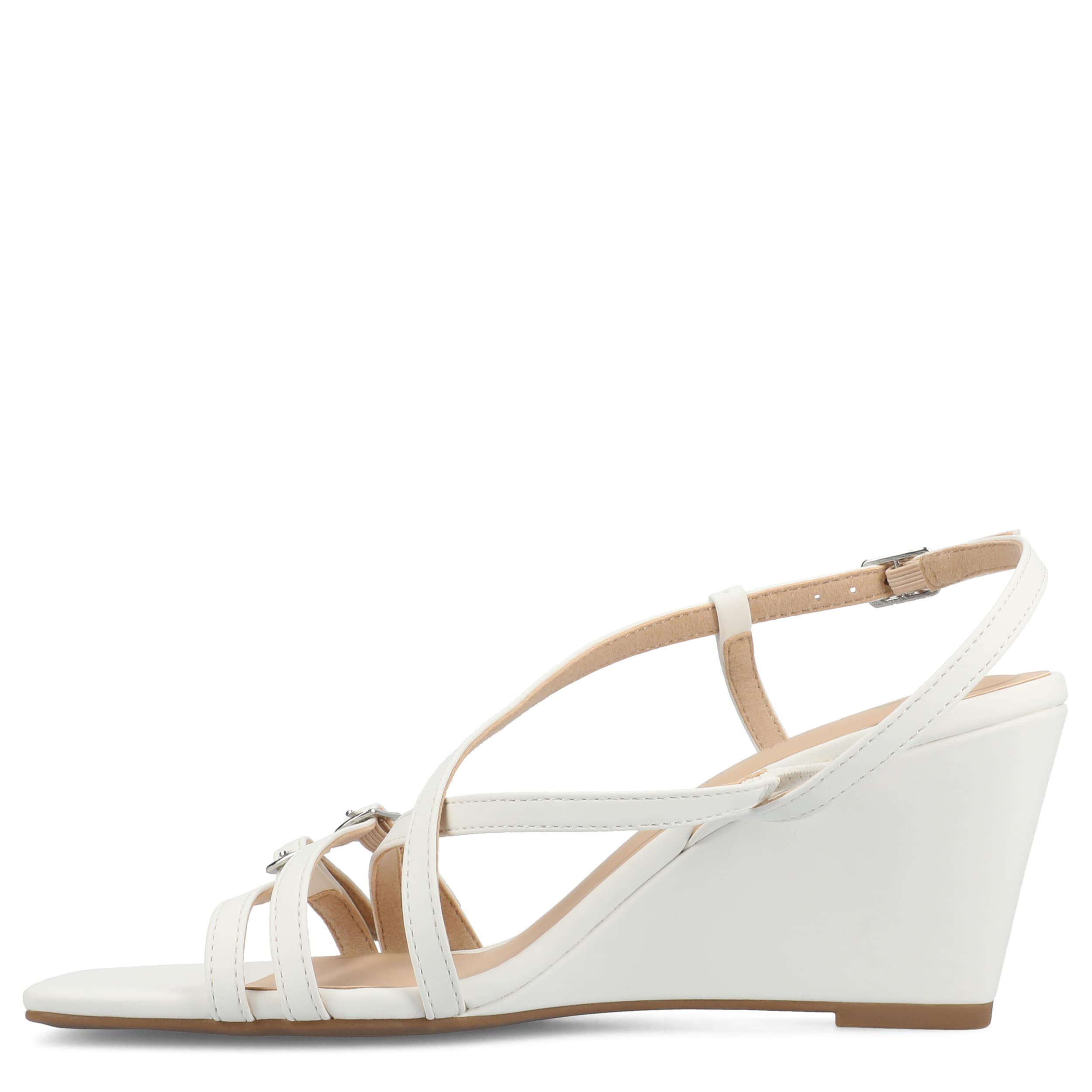 Dress up your summer look with the Clinnne wedge sandal from Journee Collection. Crafted with faux leather, this multi-strap sandal has buckle accents and a sleek square toe for a chic touch. The footbed provides all-day comfort, while the demi wedge offers a trendy lift.
