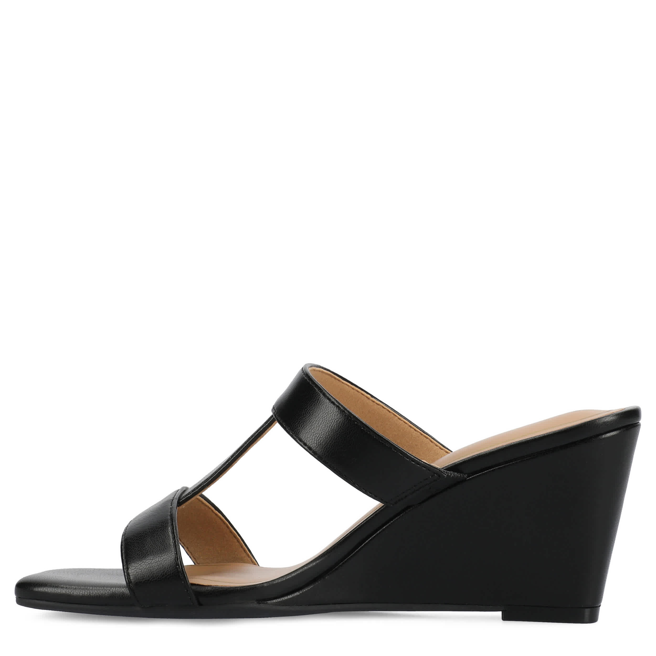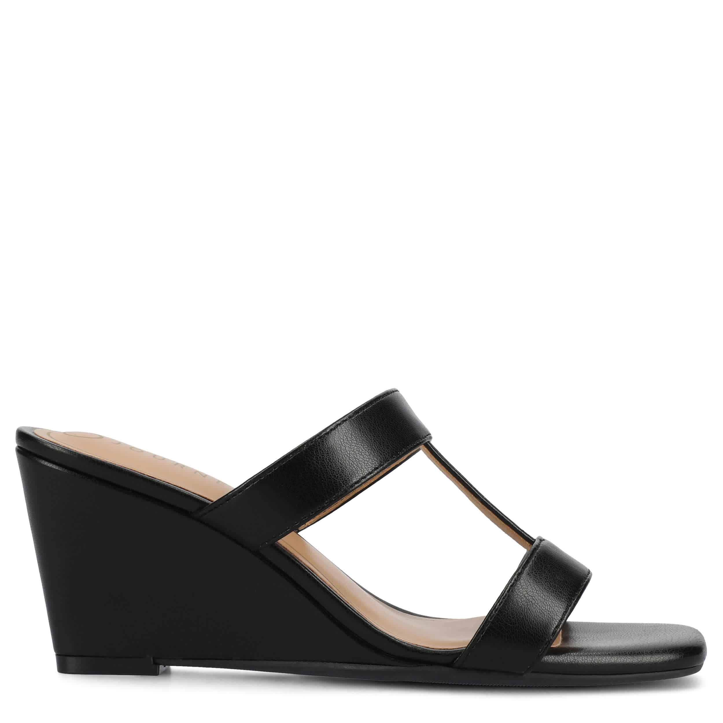Simple yet chic, the Clodie wedge sandal from Journee Collection is trendy summer style. Featuring a faux leather upper with a sleek design, this T-strap sandal looks great in the office or over the weekend. The footbed offers all-day comfort, while the sturdy heel gives a classy lift.