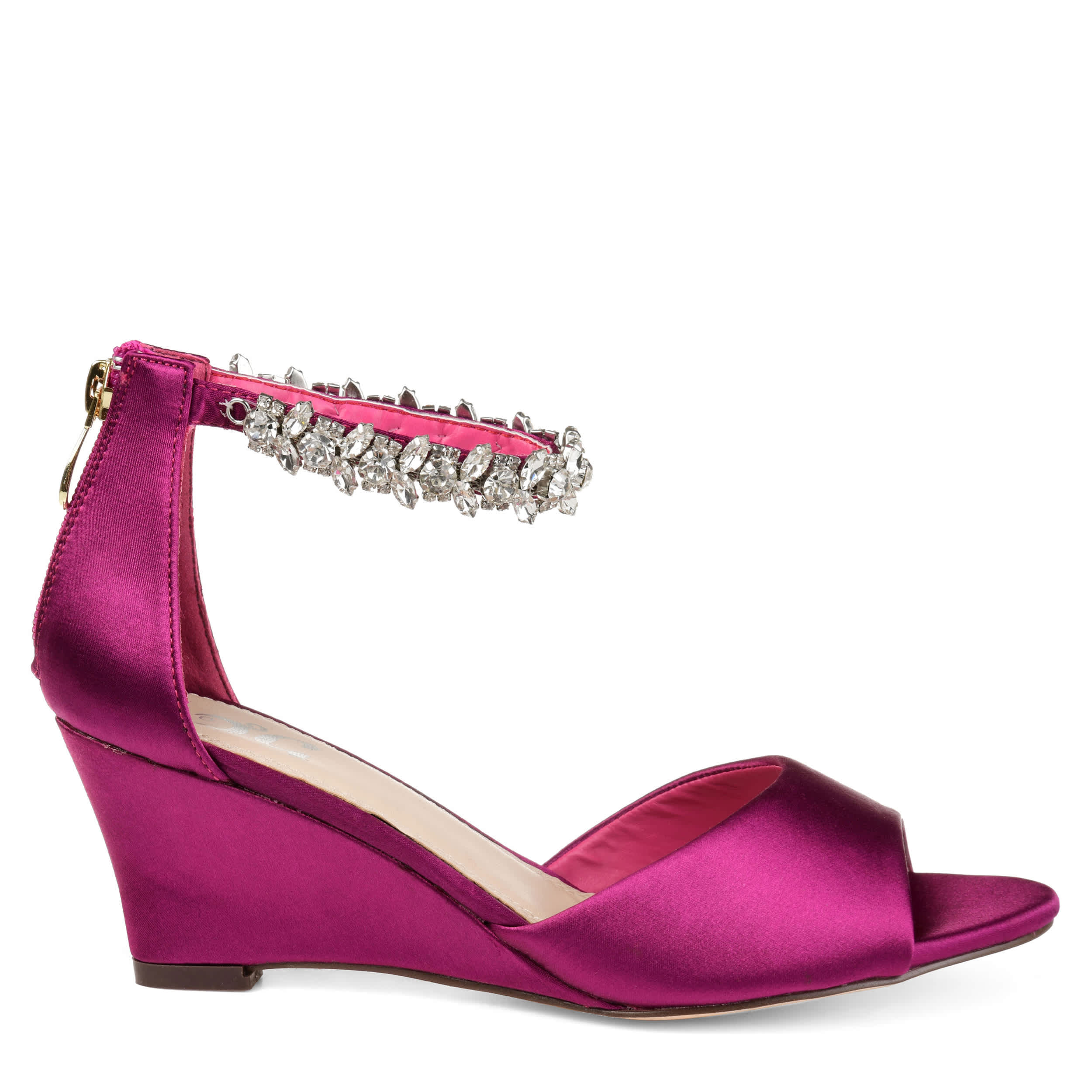 Feeling a little fancy? Try out the Journee Collection Connor women's sandal. With satiny fabric, a back zipper for easy access, and a cute wedge heel, these sandal are great finish for your outfit.