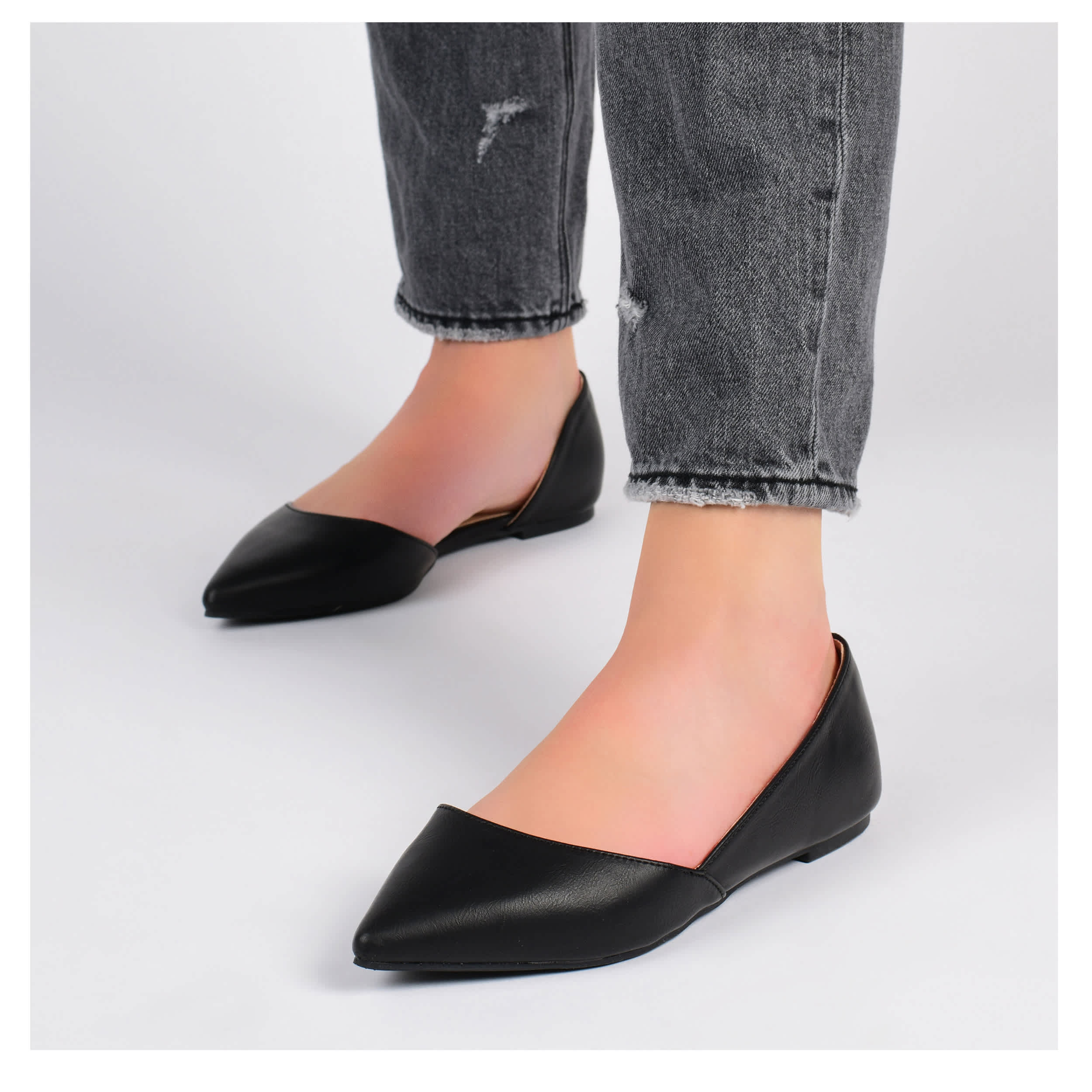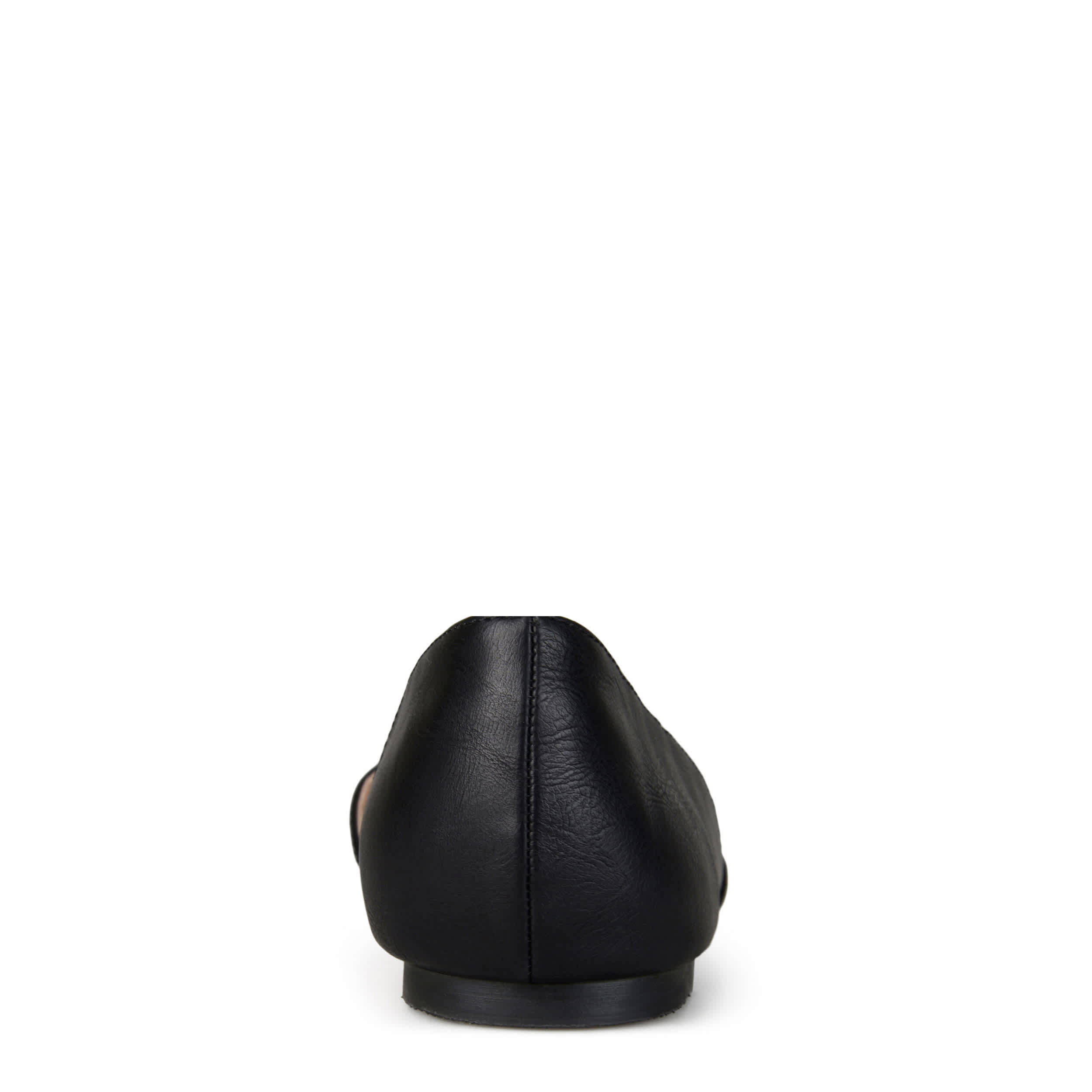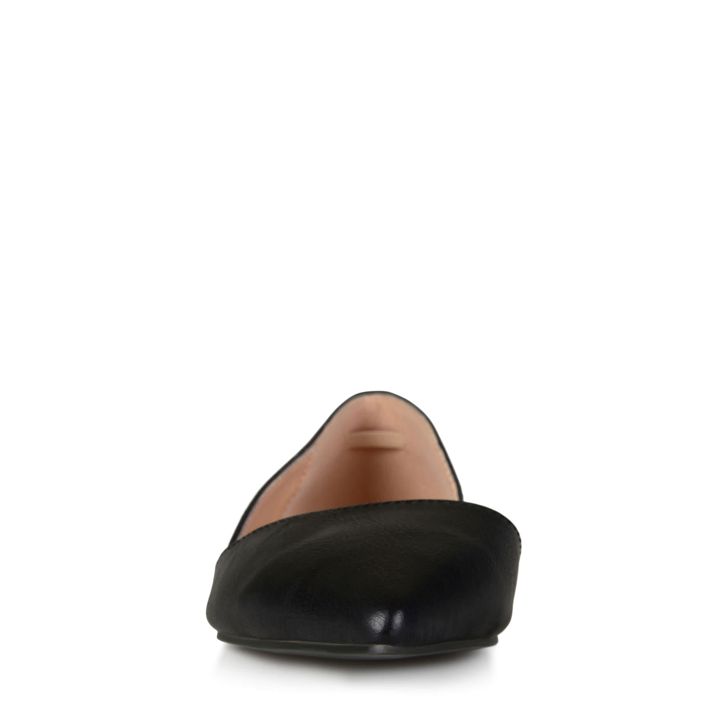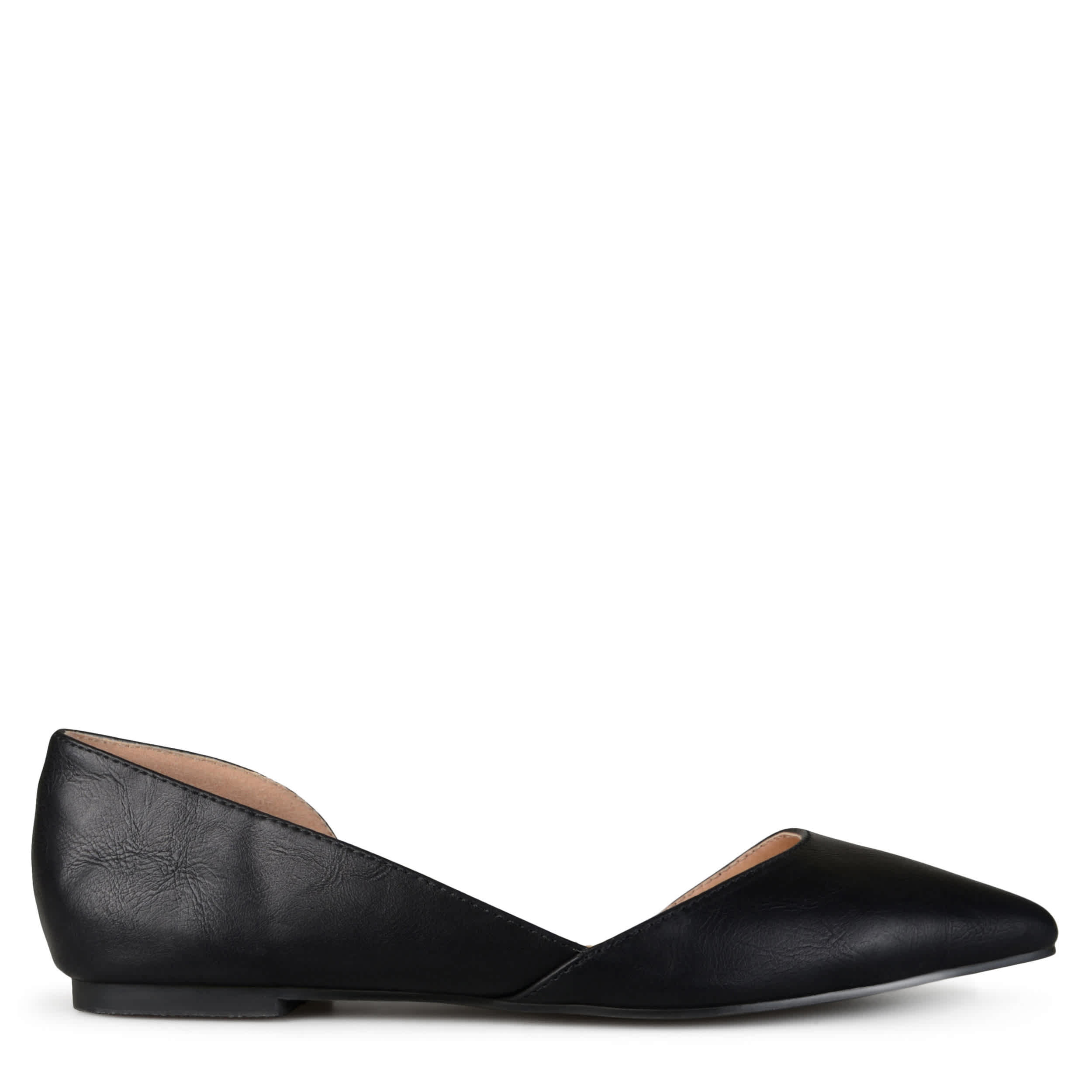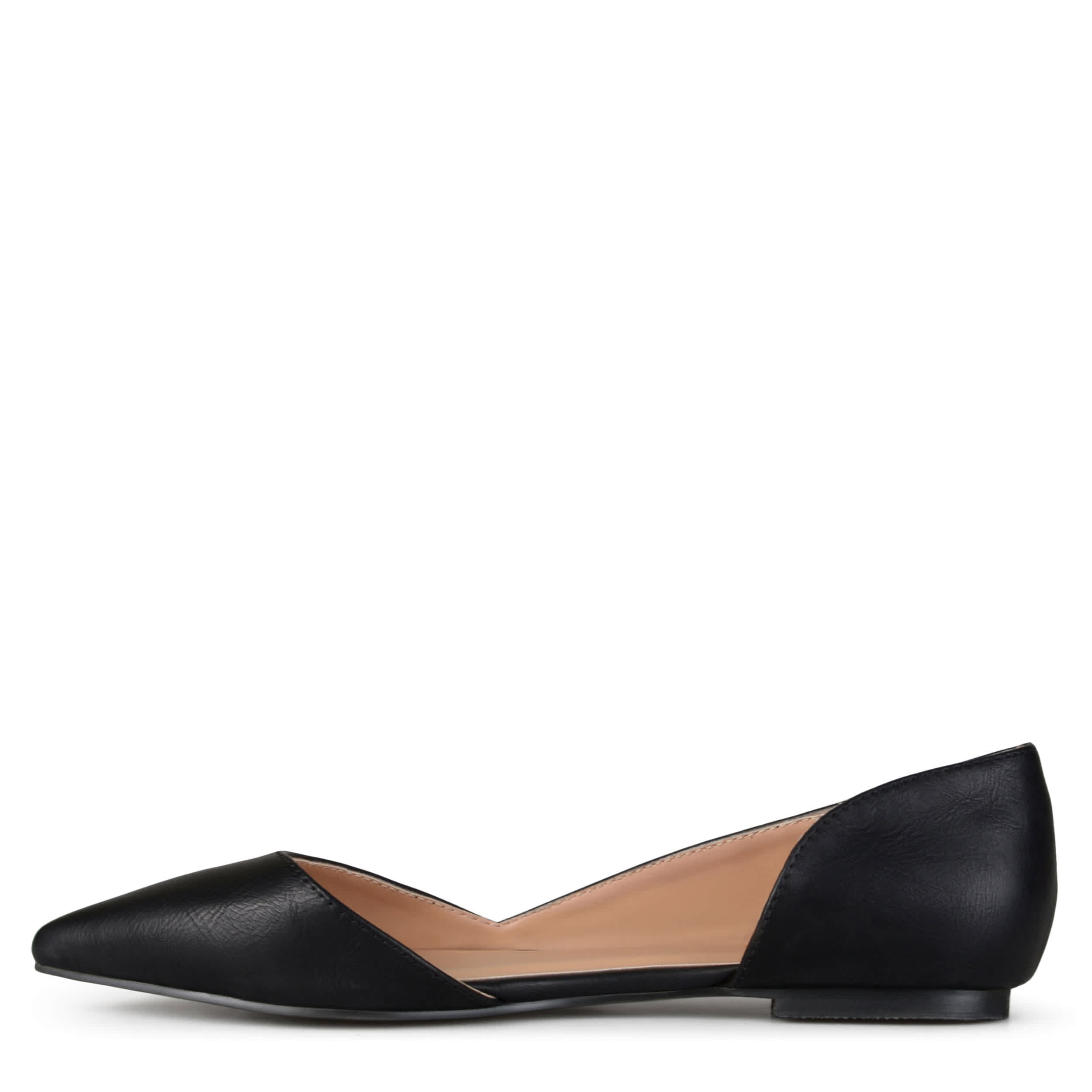 Utra femme styling beautifully done with the Journee Collection Cortni women's flat. With a synthetic upper featuring a D'Orsay design and pointed toe, this slip-on flat would look amazing with a long dress or skirt. The padded footbed comforts your foot while the rubber sole supports every step.