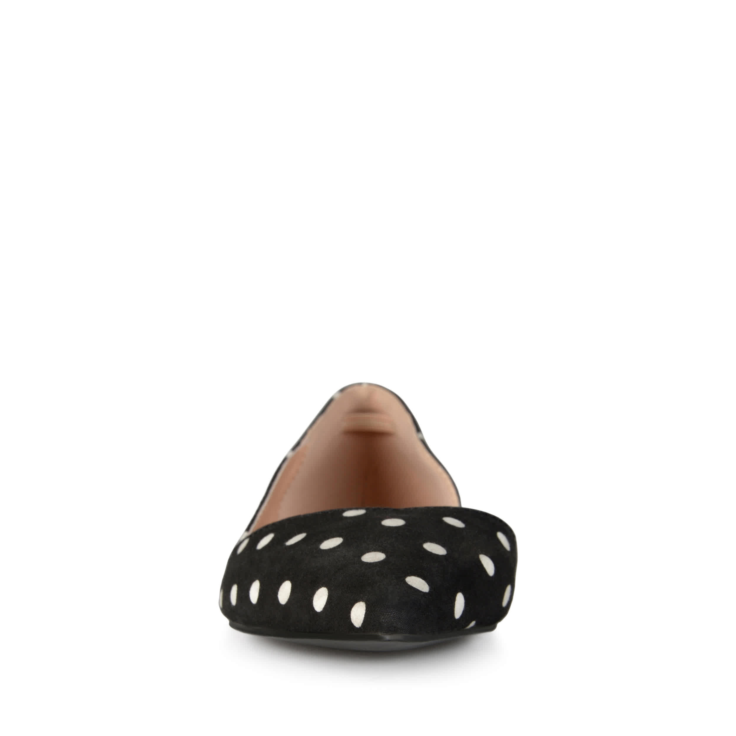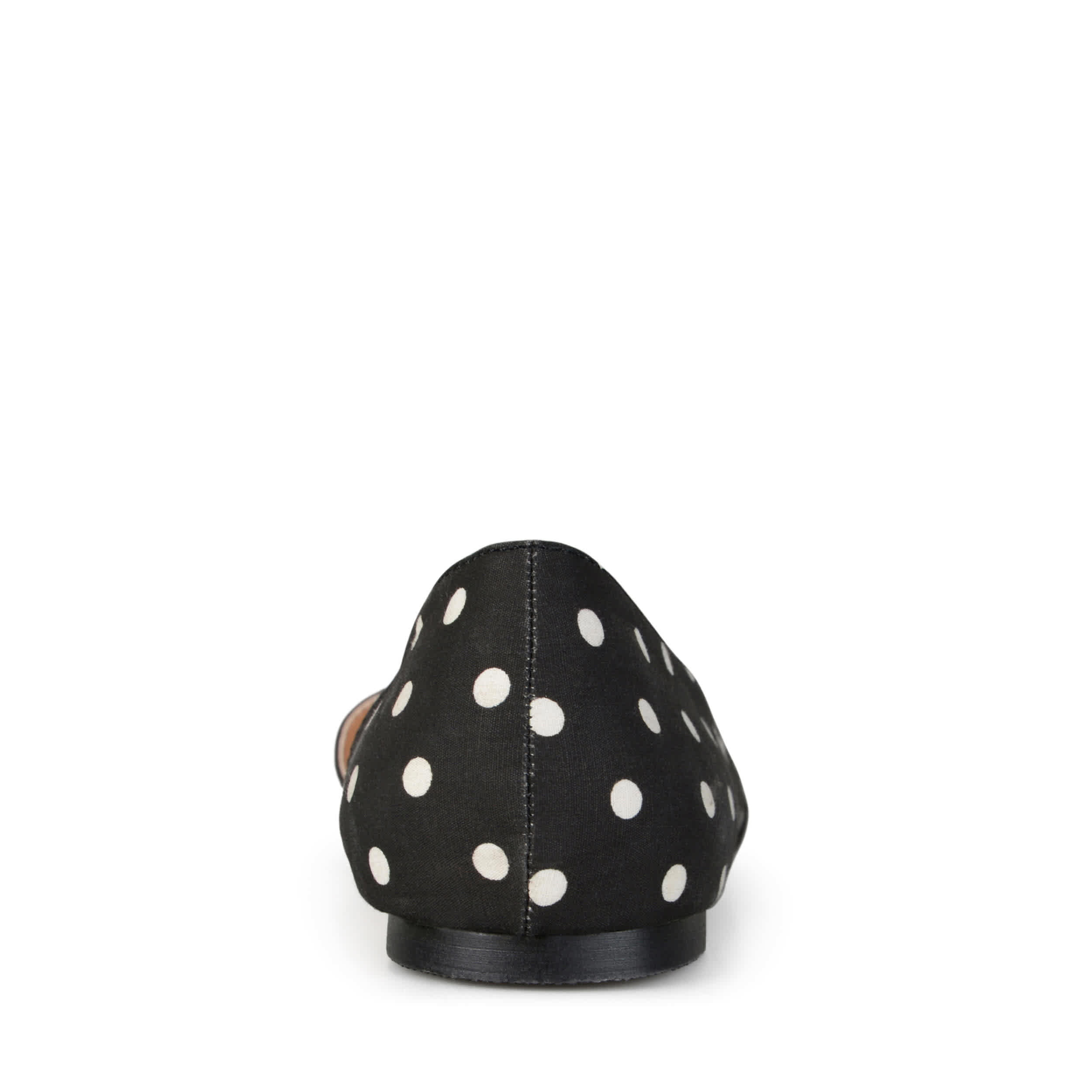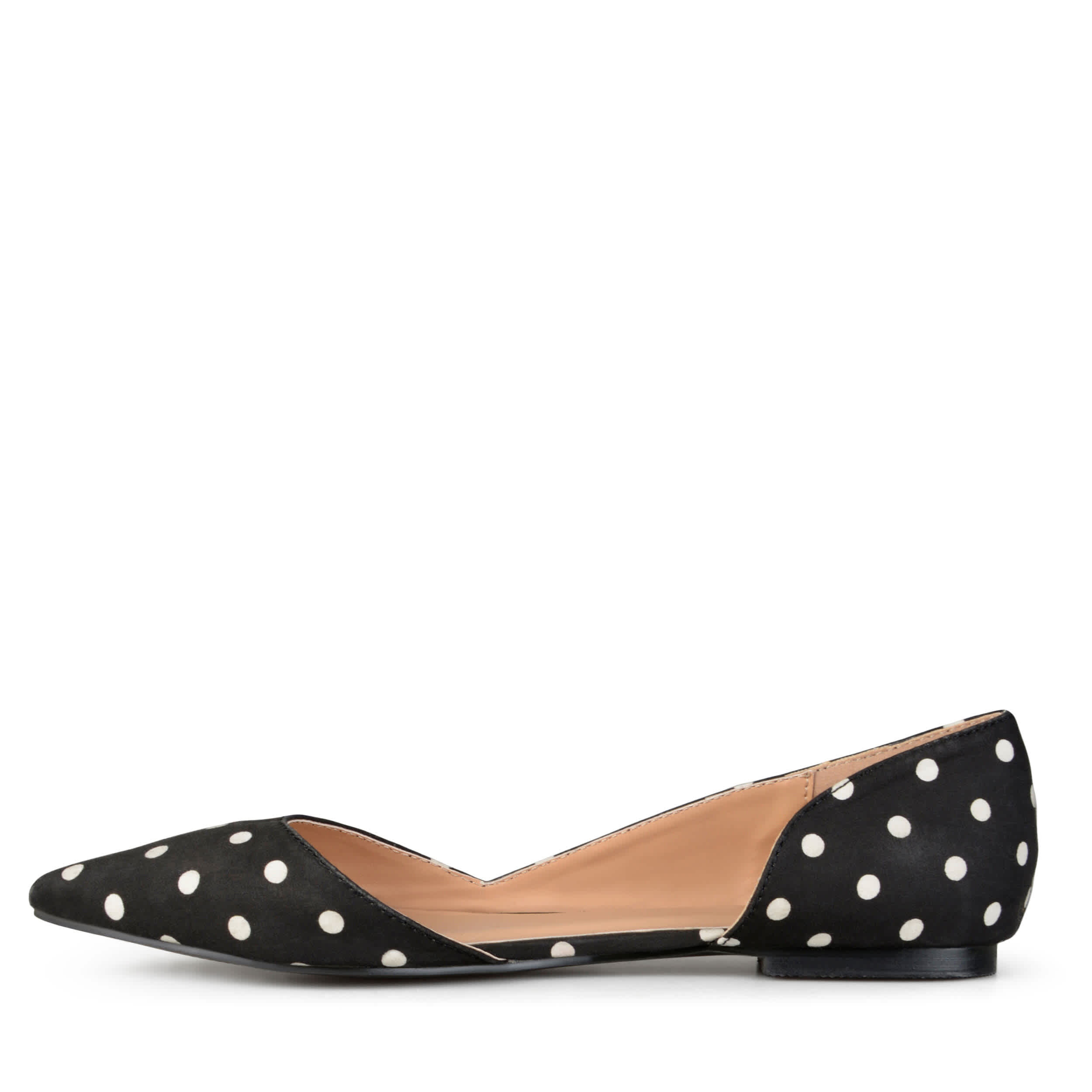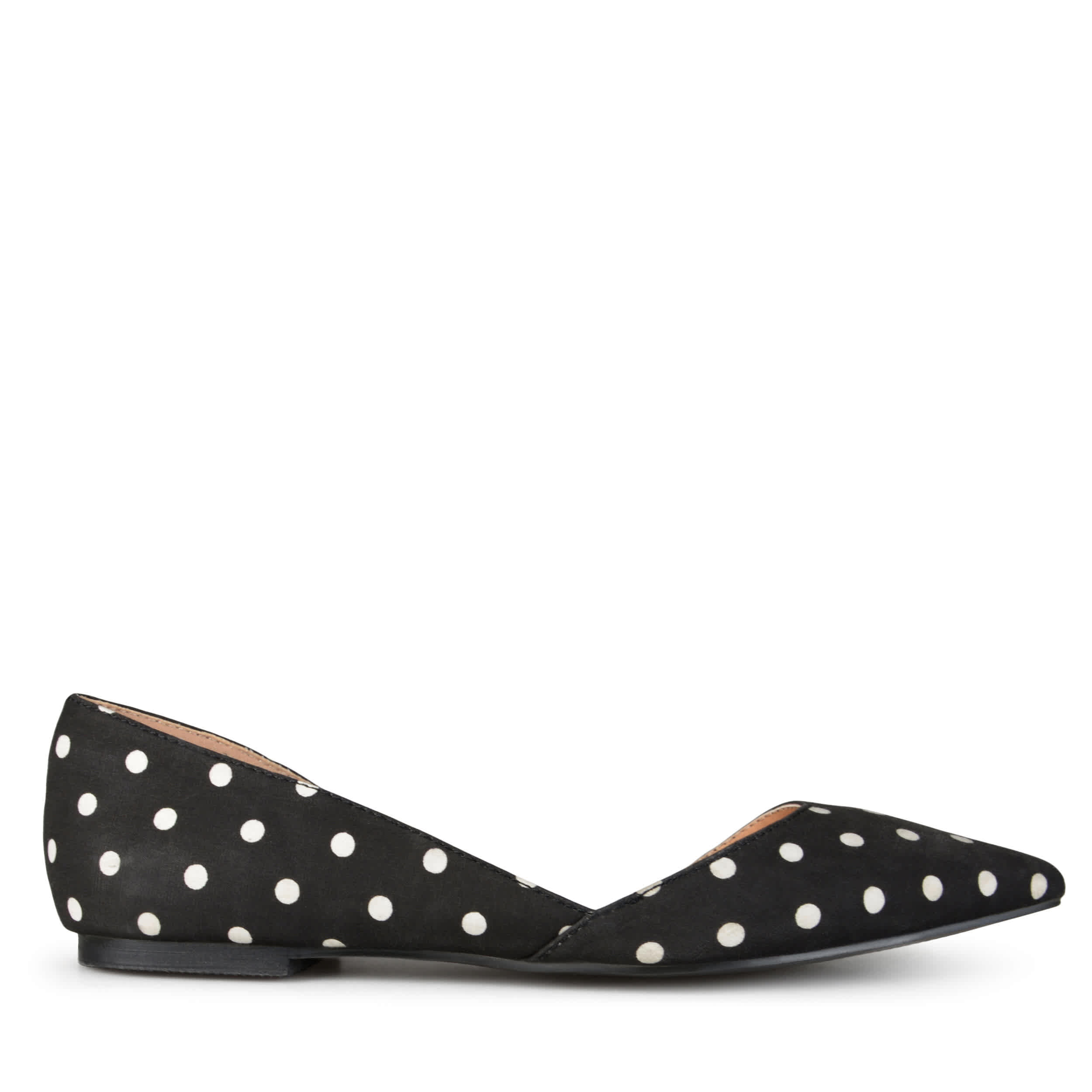 Utra femme styling beautifully done with the Journee Collection Cortni Wide Width women's flat. With a synthetic upper featuring a D'Orsay design and pointed toe, this slip-on flat would look amazing with a long dress or skirt. The padded footbed comforts a wider foot while the rubber sole supports every step.