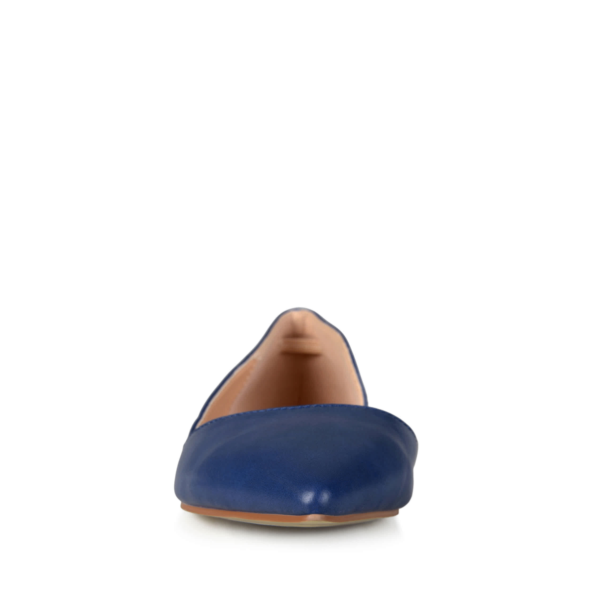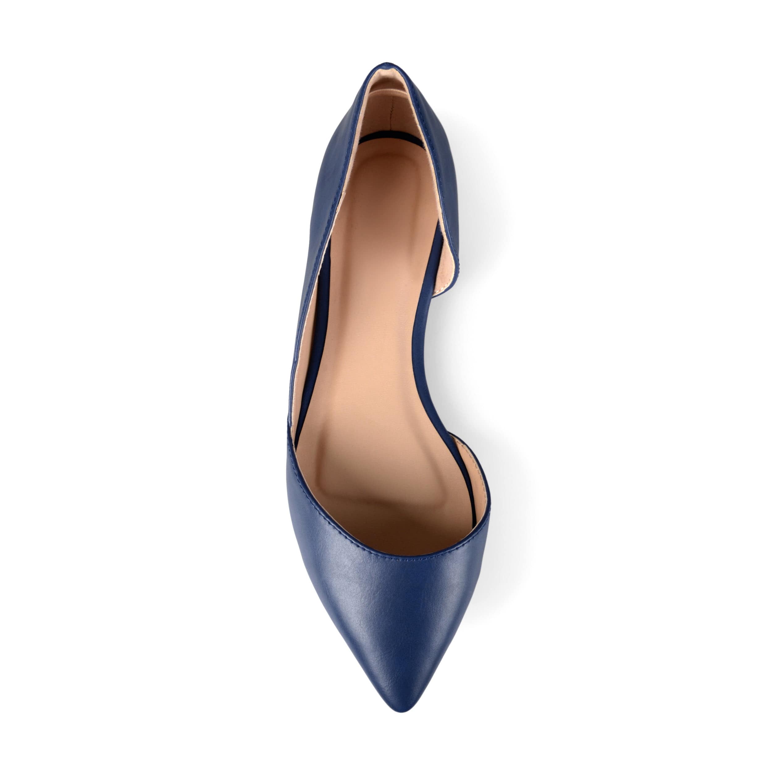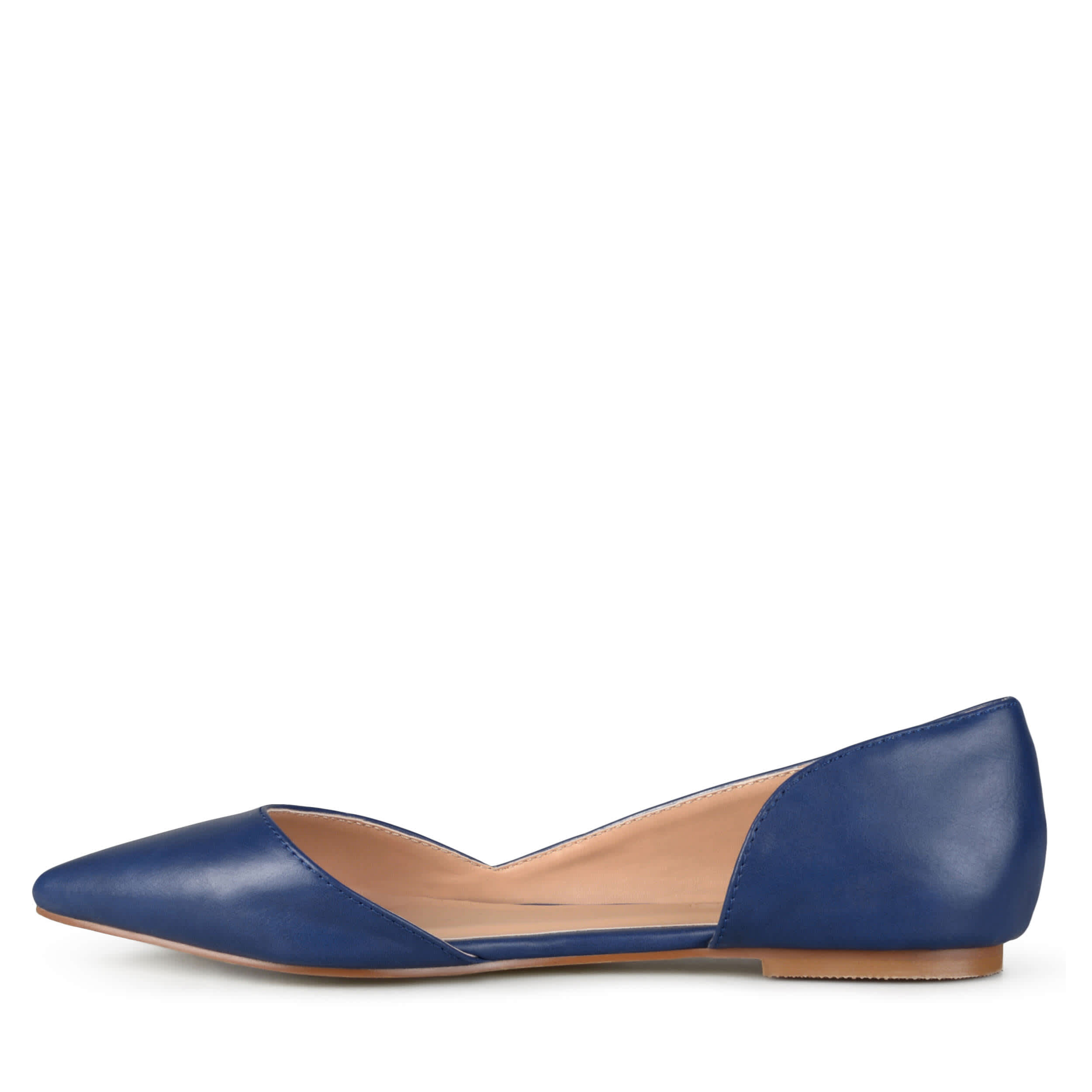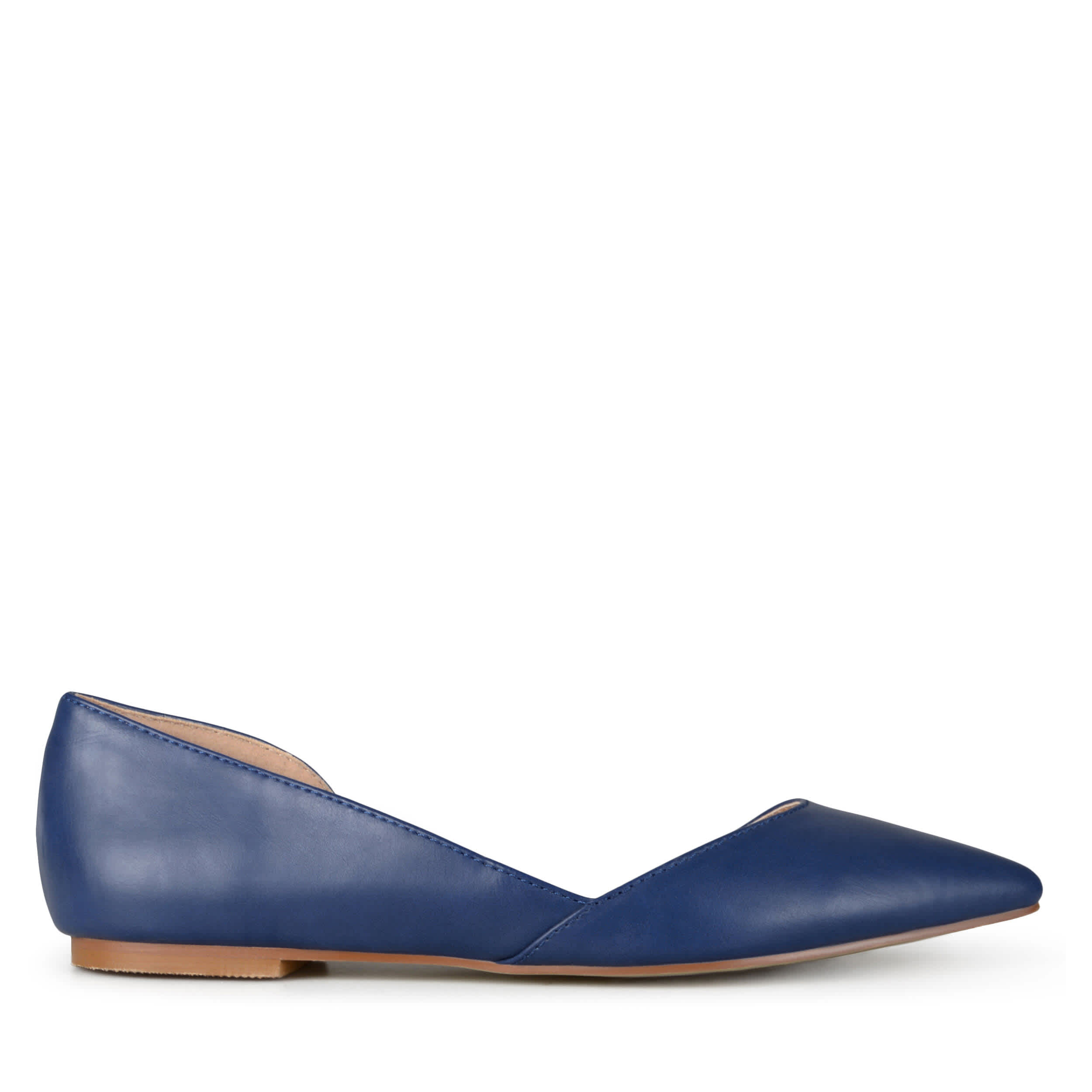Utra femme styling beautifully done with the Journee Collection Cortni Wide Width women's flat. With a synthetic upper featuring a D'Orsay design and pointed toe, this slip-on flat would look amazing with a long dress or skirt. The padded footbed comforts a wider foot while the rubber sole supports every step.