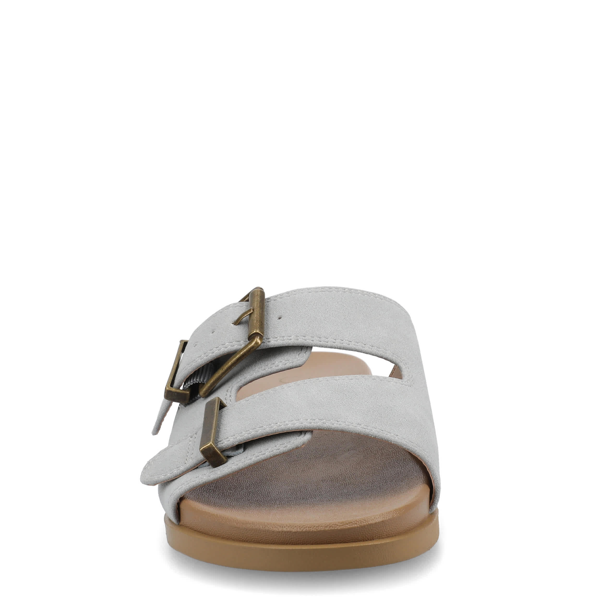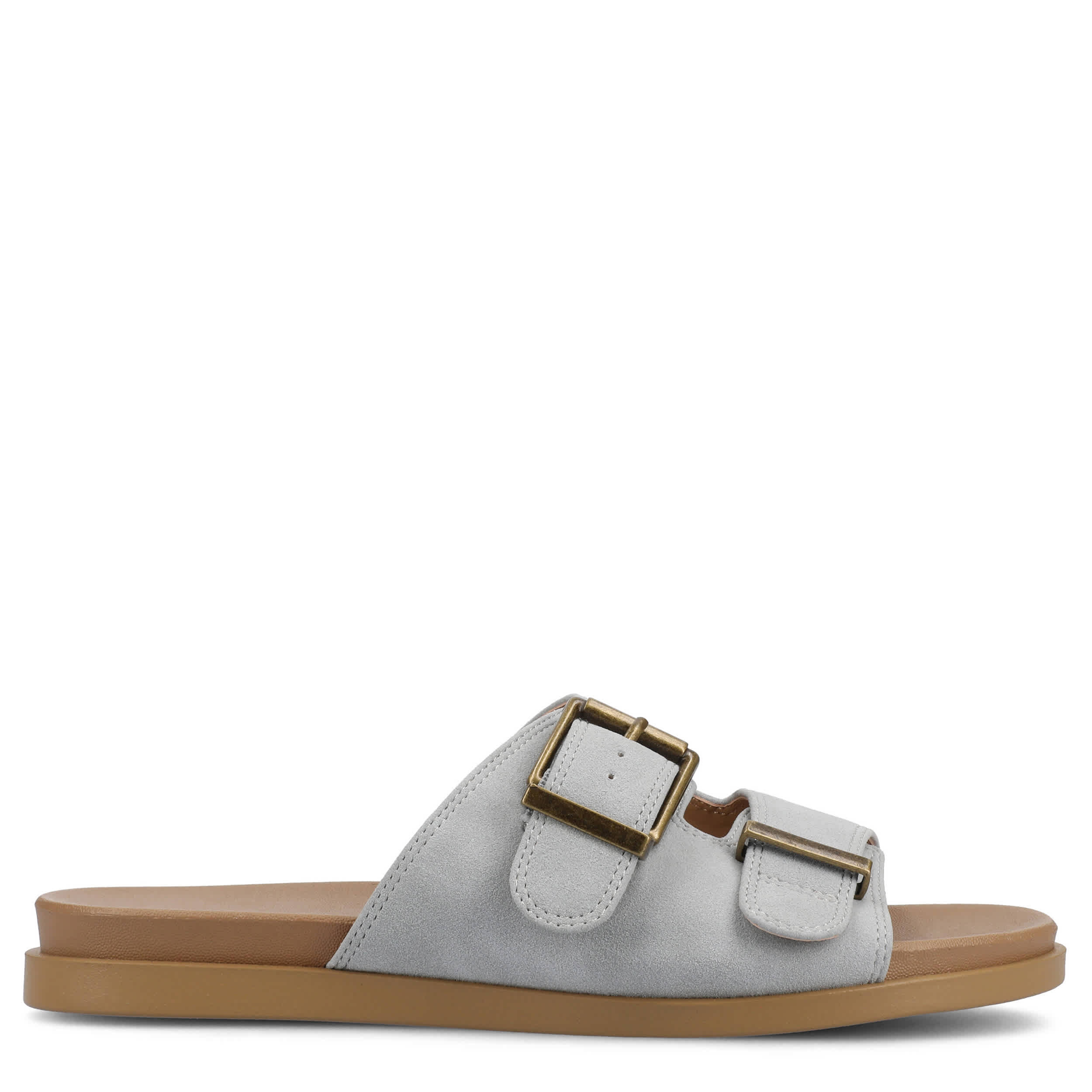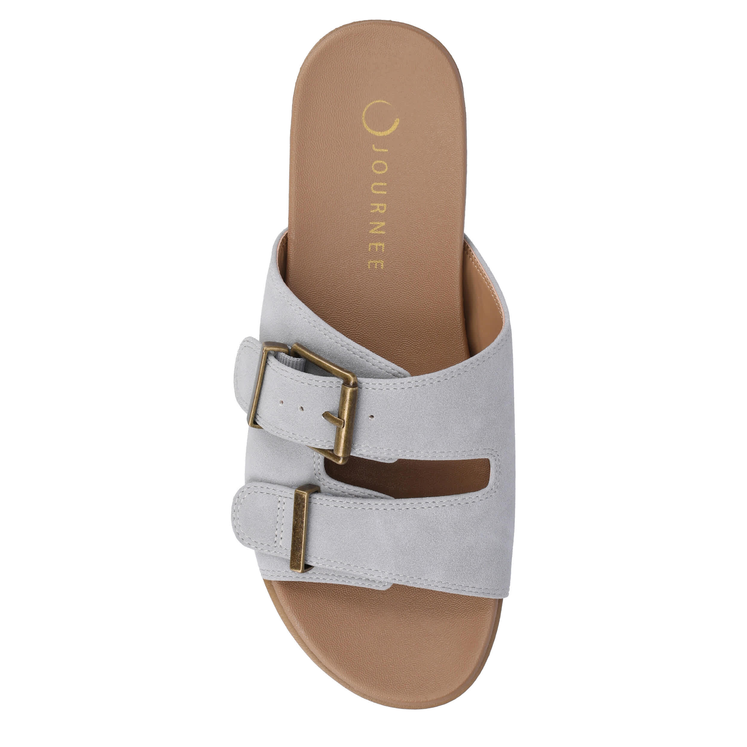 Just slip on and go this summer with the Cosette slide sandal from Journee Collection. Featuring a faux leather upper with dual adjustable buckle straps, this shoe ensures a secure fit while adding a trendy touch to your outfits. The cushioned footbed offers optimal comfort for running errands or casual outings with friends.