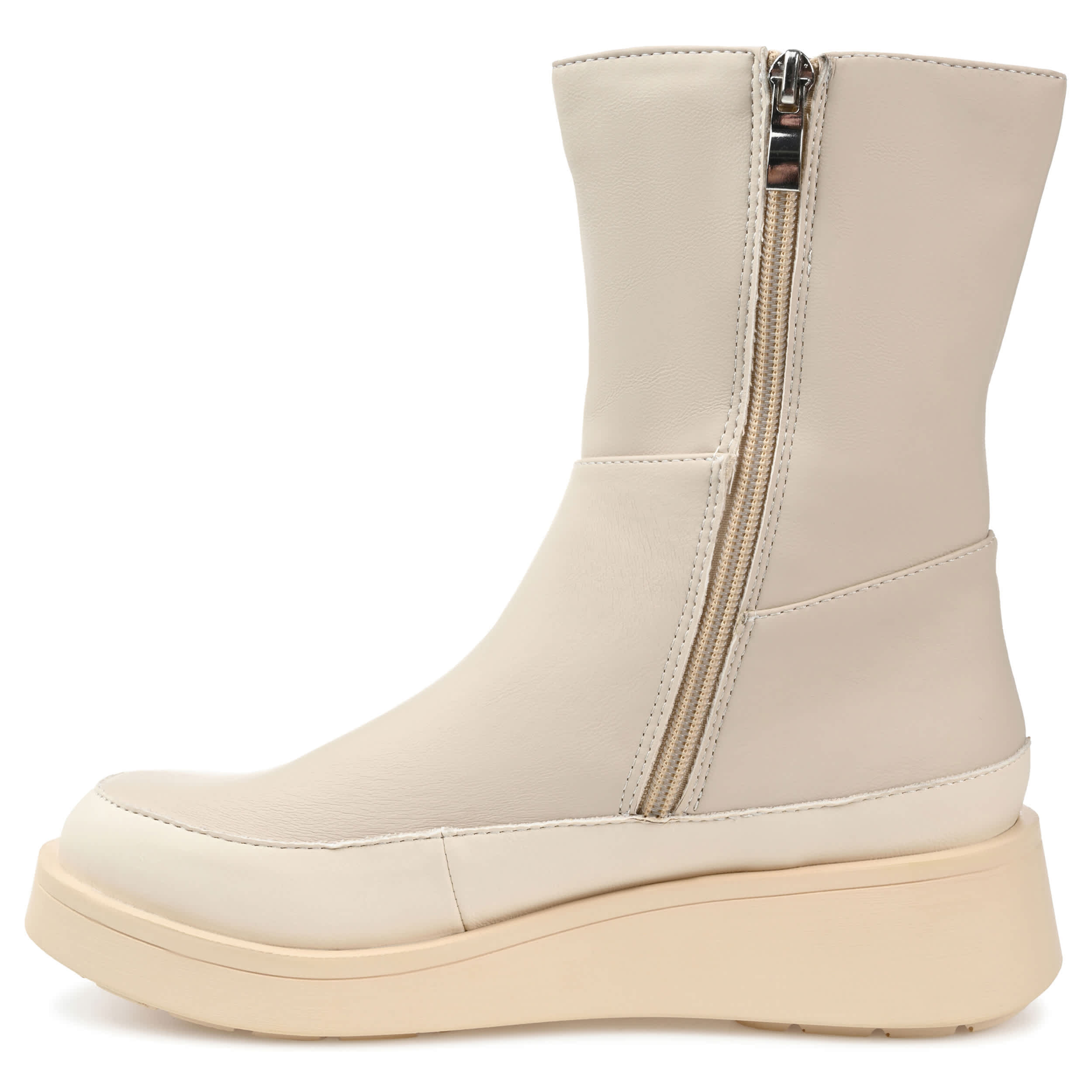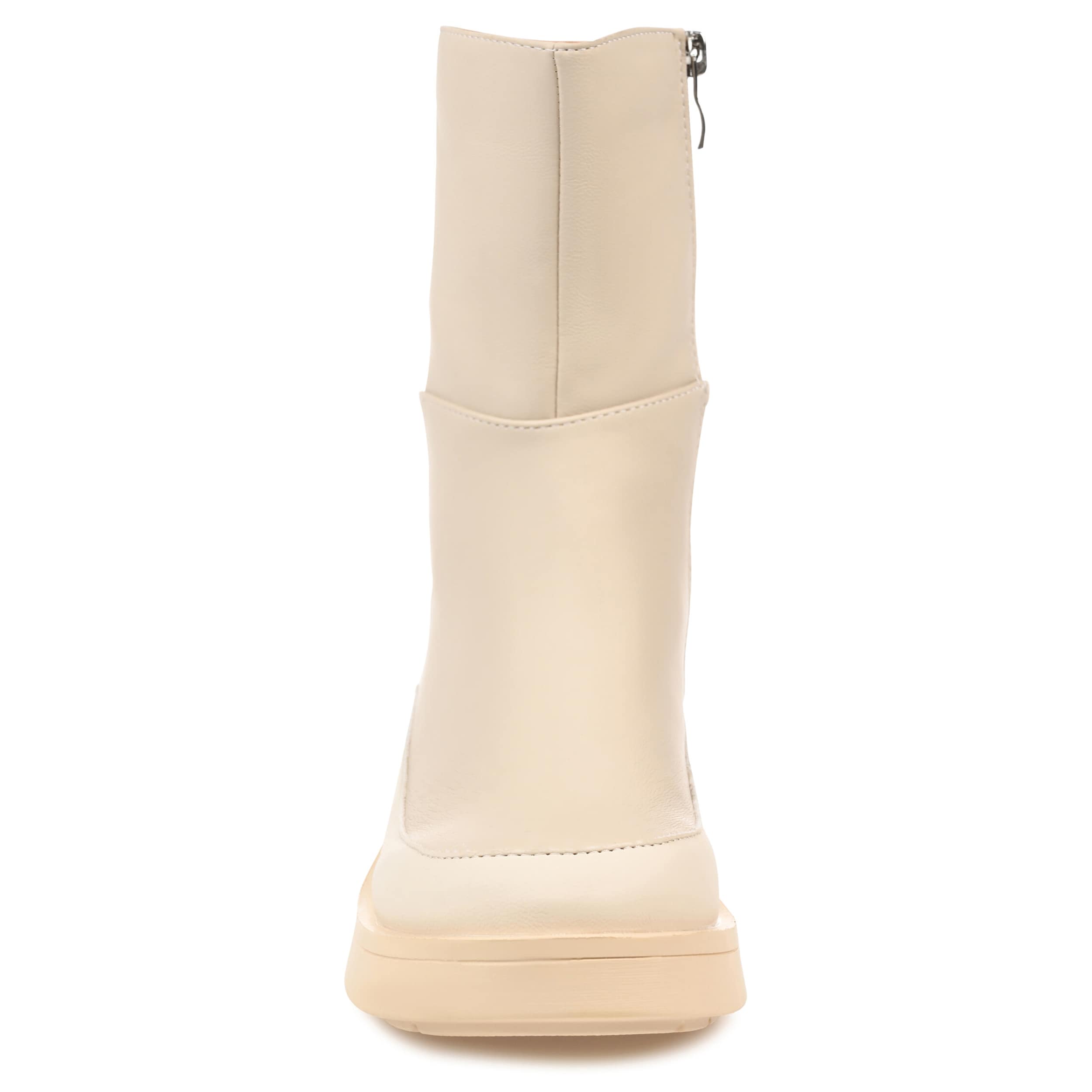Look your best and feel even better in the Cristen ankle boot from Journee Collection. With a vegan leather upper featuring a two-tone profile and elevated platform heel, this trendy, easy zip boot looks fantastic with distressed skinny jeans or leggings. A Tru Comfort Foamâ„¢ footbed offers all-day cushioning, while the lug outsole provides amazing grip and traction.