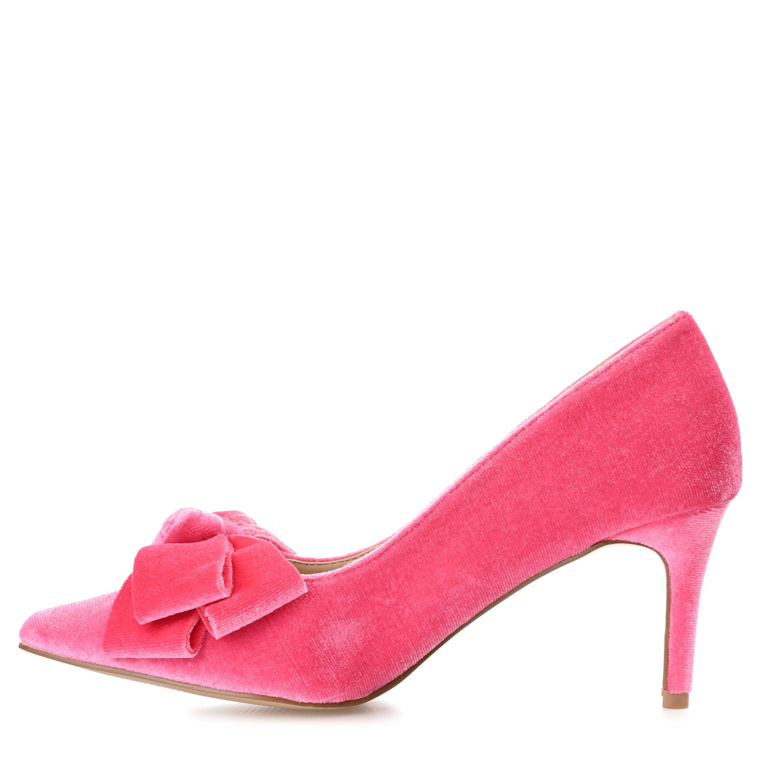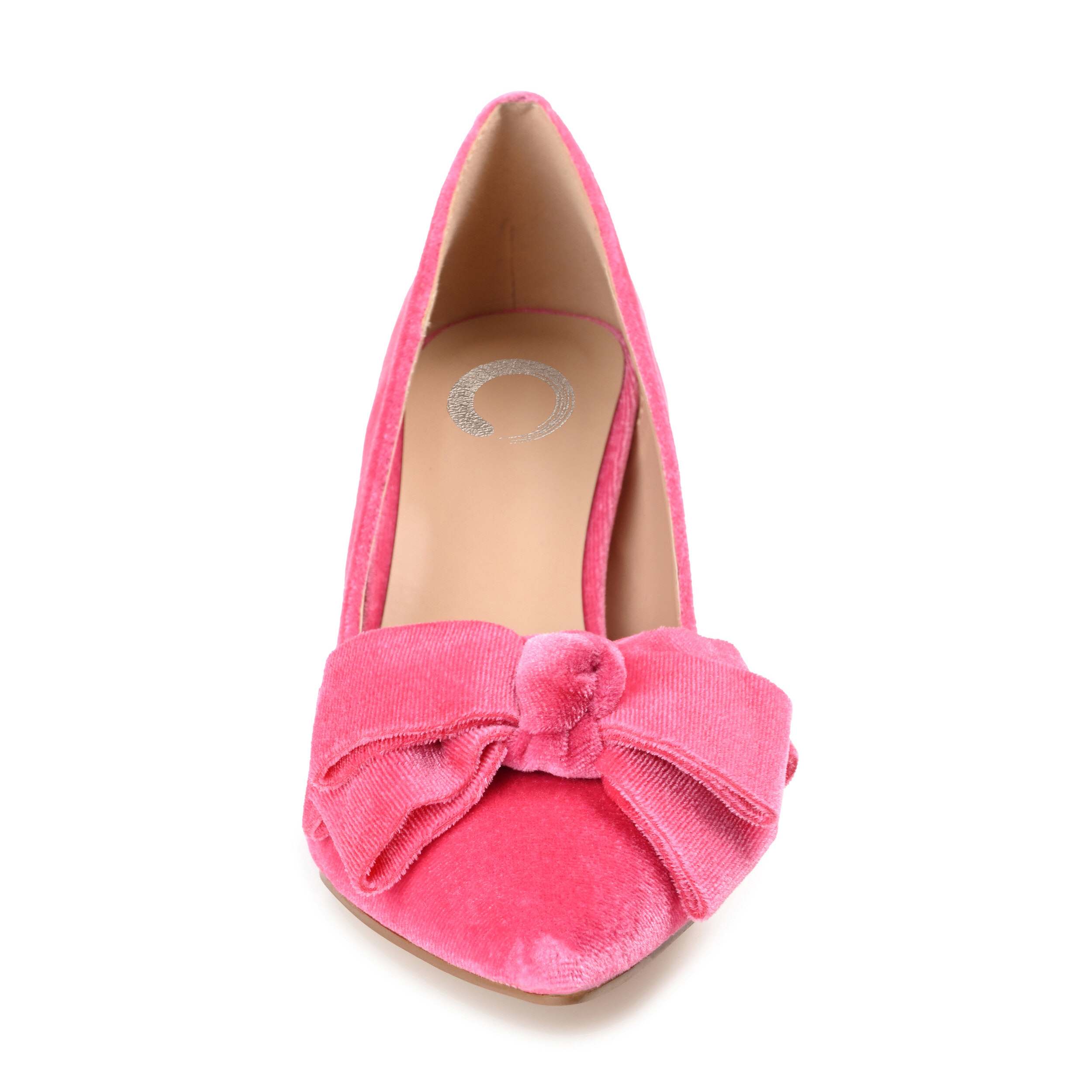 Highlight an elegant look with the Crystol women's pump from the Journee Collection. With a bold velvet fabric upper featuring a decorative bow accent for a touch of feminine flair, this pointy-toe pump is guaranteed to turn heads at holiday parties. A lightly padded footbed soothes your foot, while the 2¾" heel creates a flattering lift.