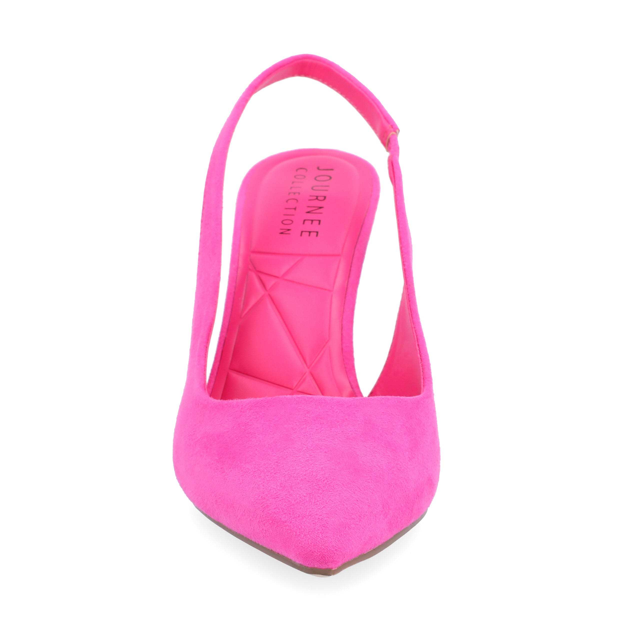 Tie your outfit together with the Elenney women's pump from Journee Collection. With a faux leather upper featuring a classy slingback design, this pump, with its sleek pointed toe, effortlessly goes from the office to an evening out. A Tru Comfort Foamâ„¢ footbed offers optimal cushioning, while the high stiletto heel provides a certain elegance.