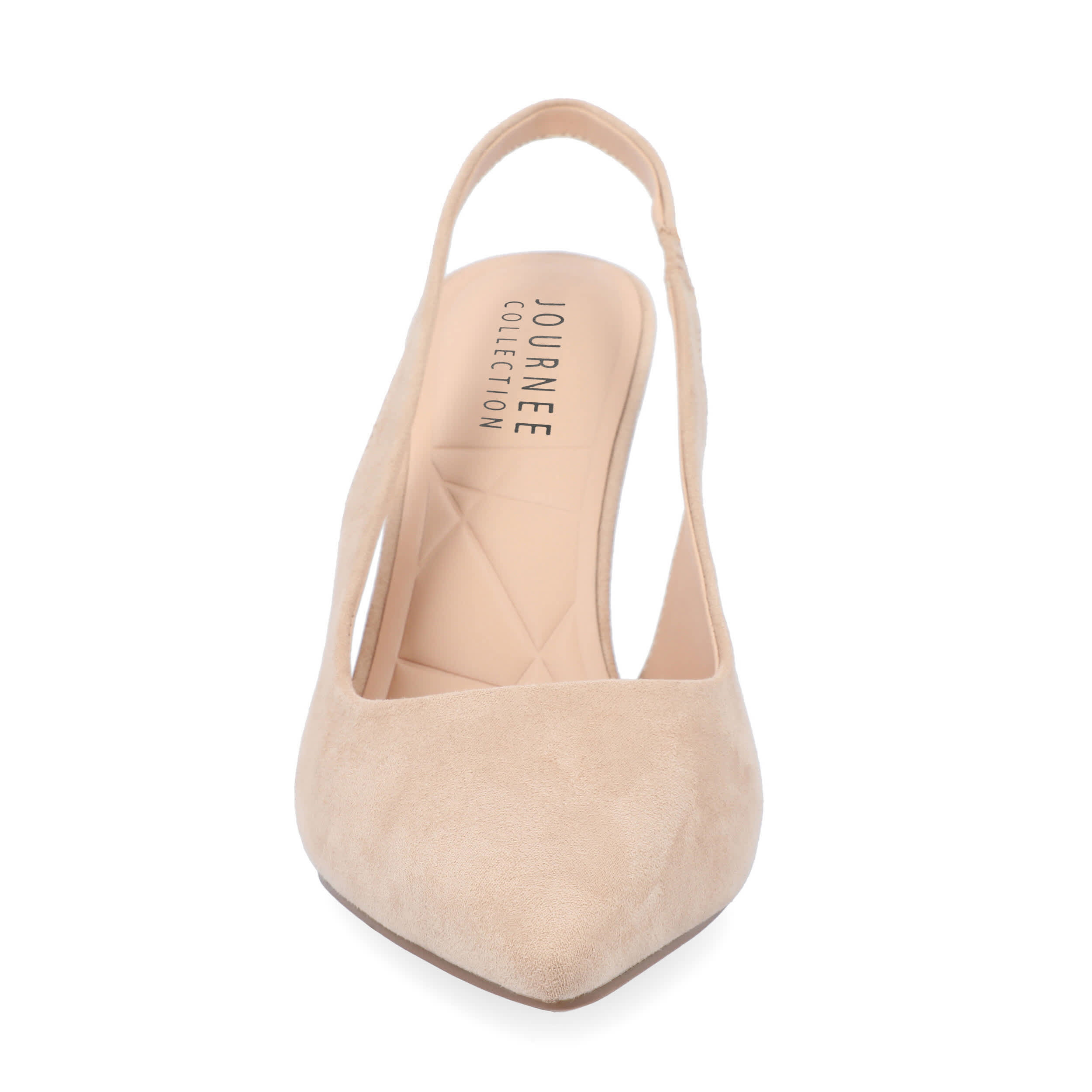Tie your outfit together with the Elenney women's pump from Journee Collection. With a faux leather upper featuring a classy slingback design, this pump, with its sleek pointed toe, effortlessly goes from the office to an evening out. A Tru Comfort Foamâ„¢ footbed offers optimal cushioning, while the high stiletto heel provides a certain elegance.