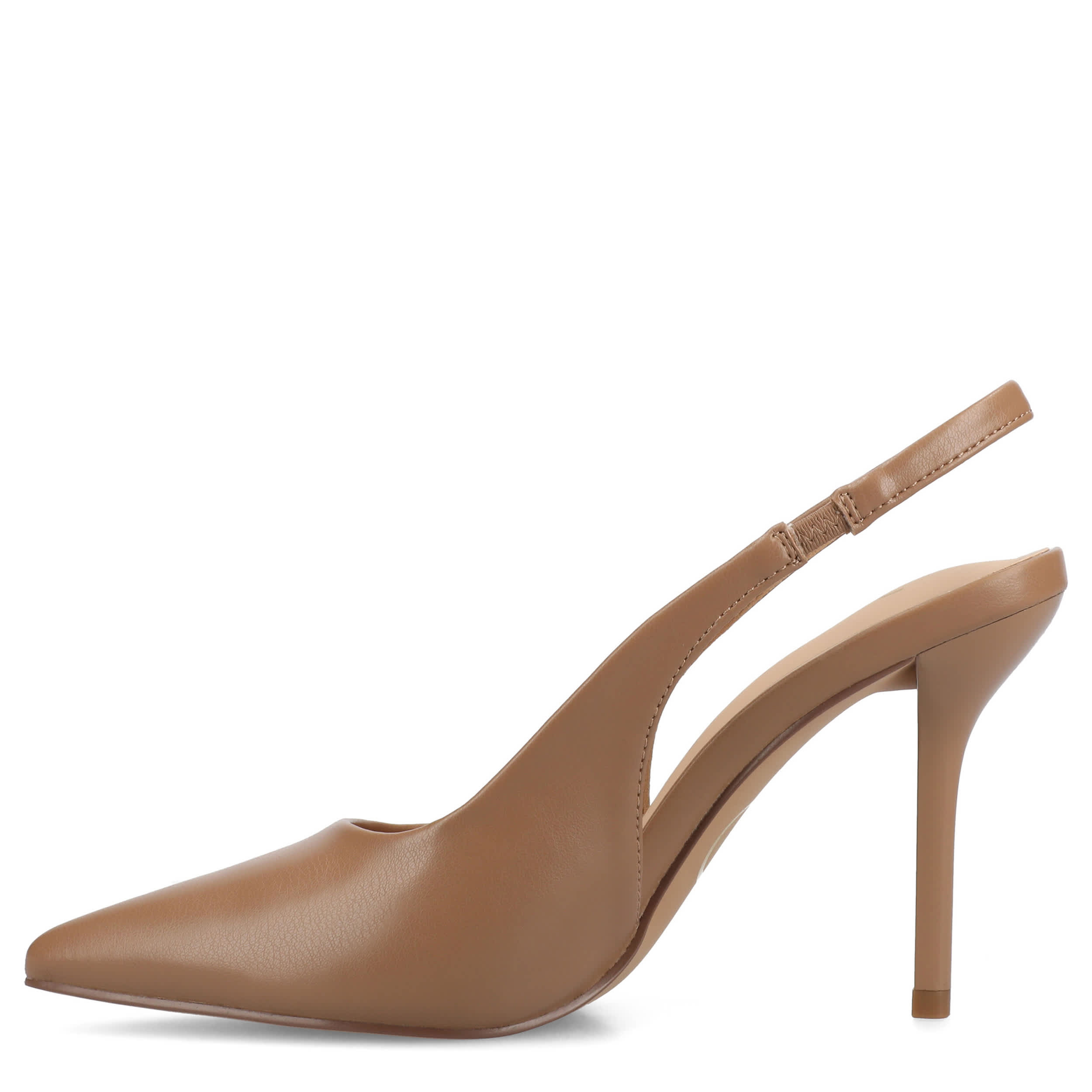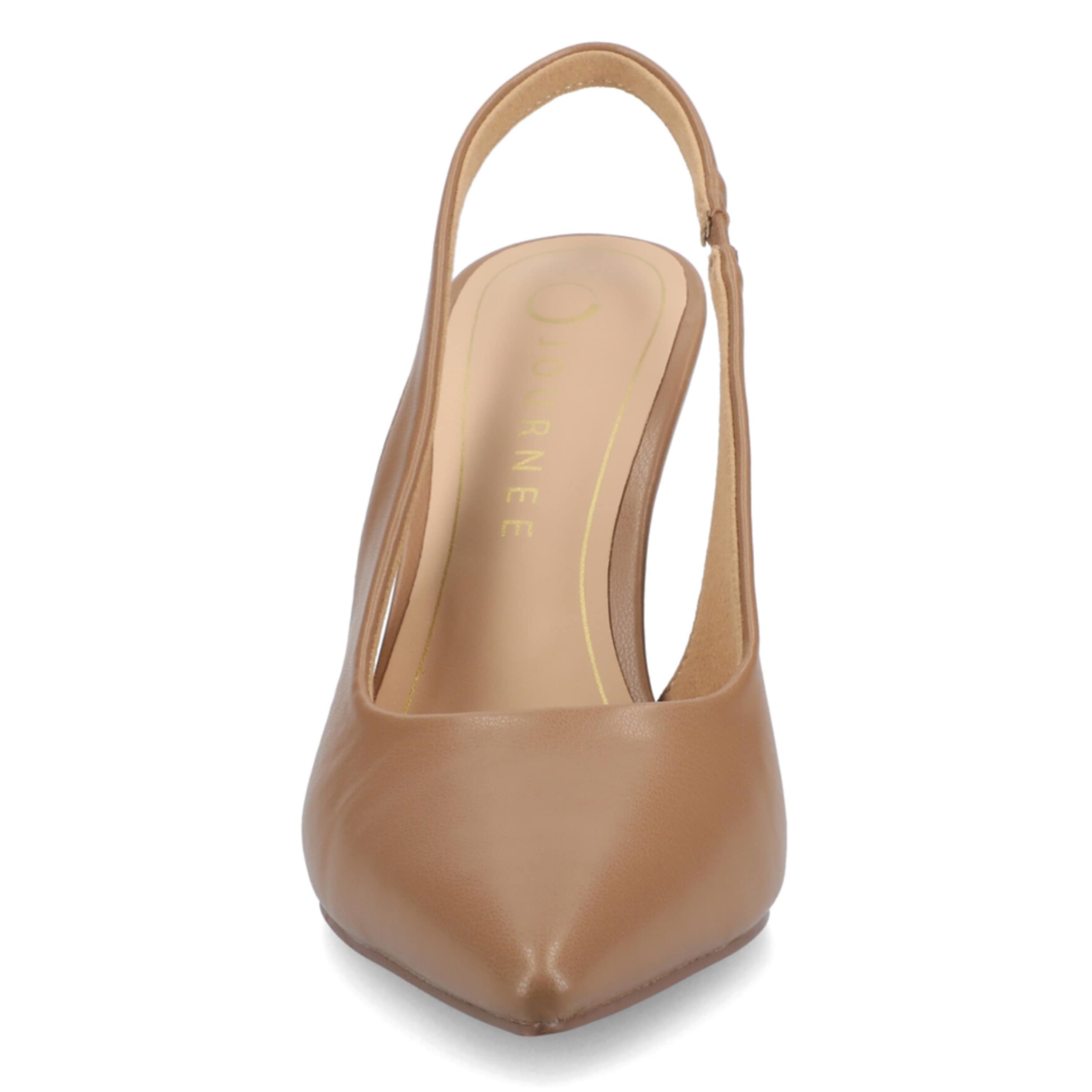 Radiate confidence from head to toe in the Journee Collection Elenney pump. Featuring a faux leather upper with a sleek pointed toe, this shoe has an elastic slingback strap for easy entry. The padded insole soothes your foot, while the high stiletto heel raises your look to the next level.