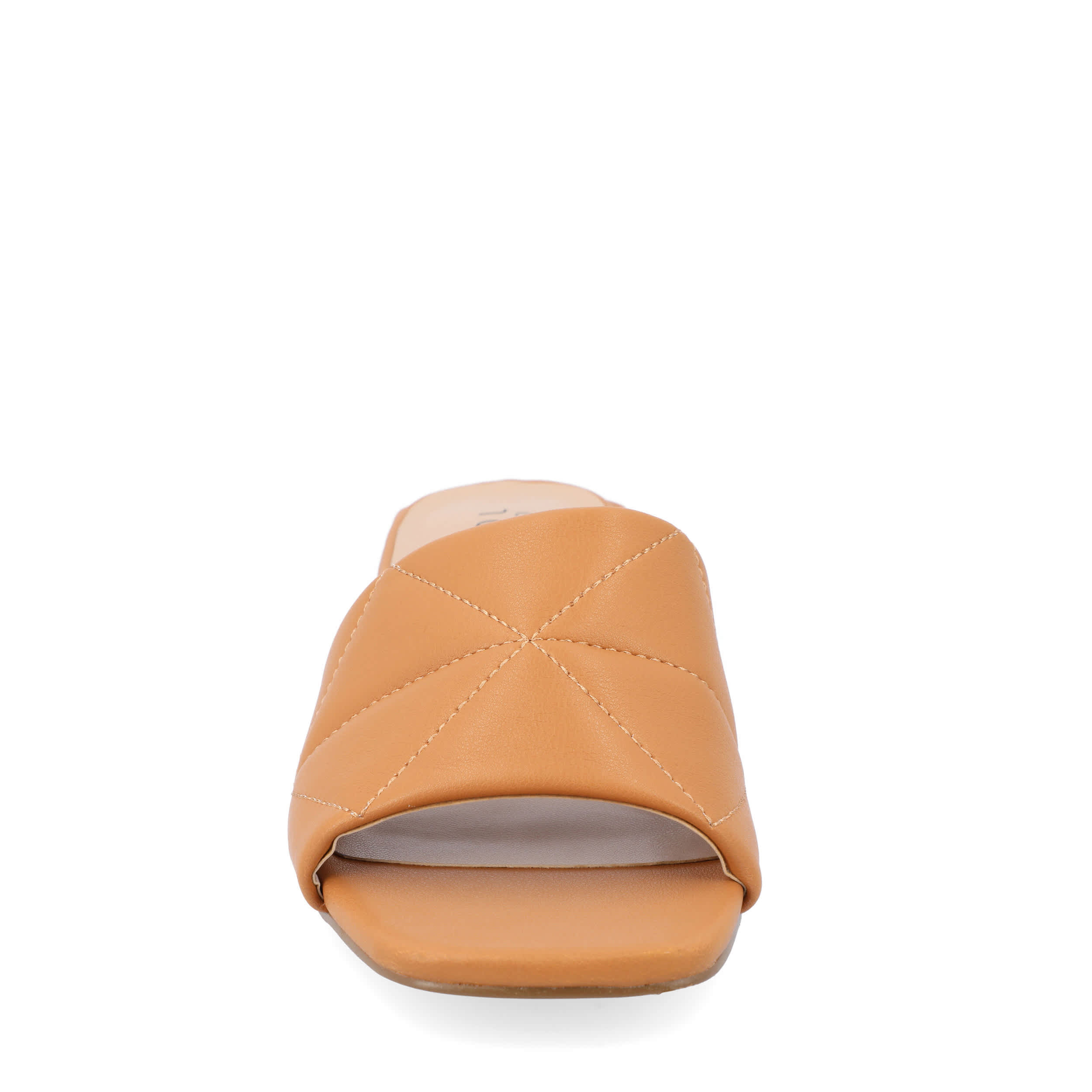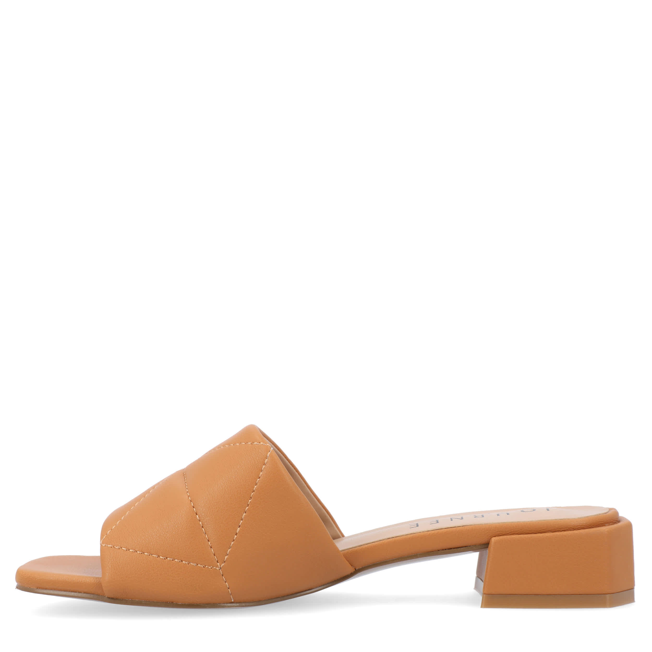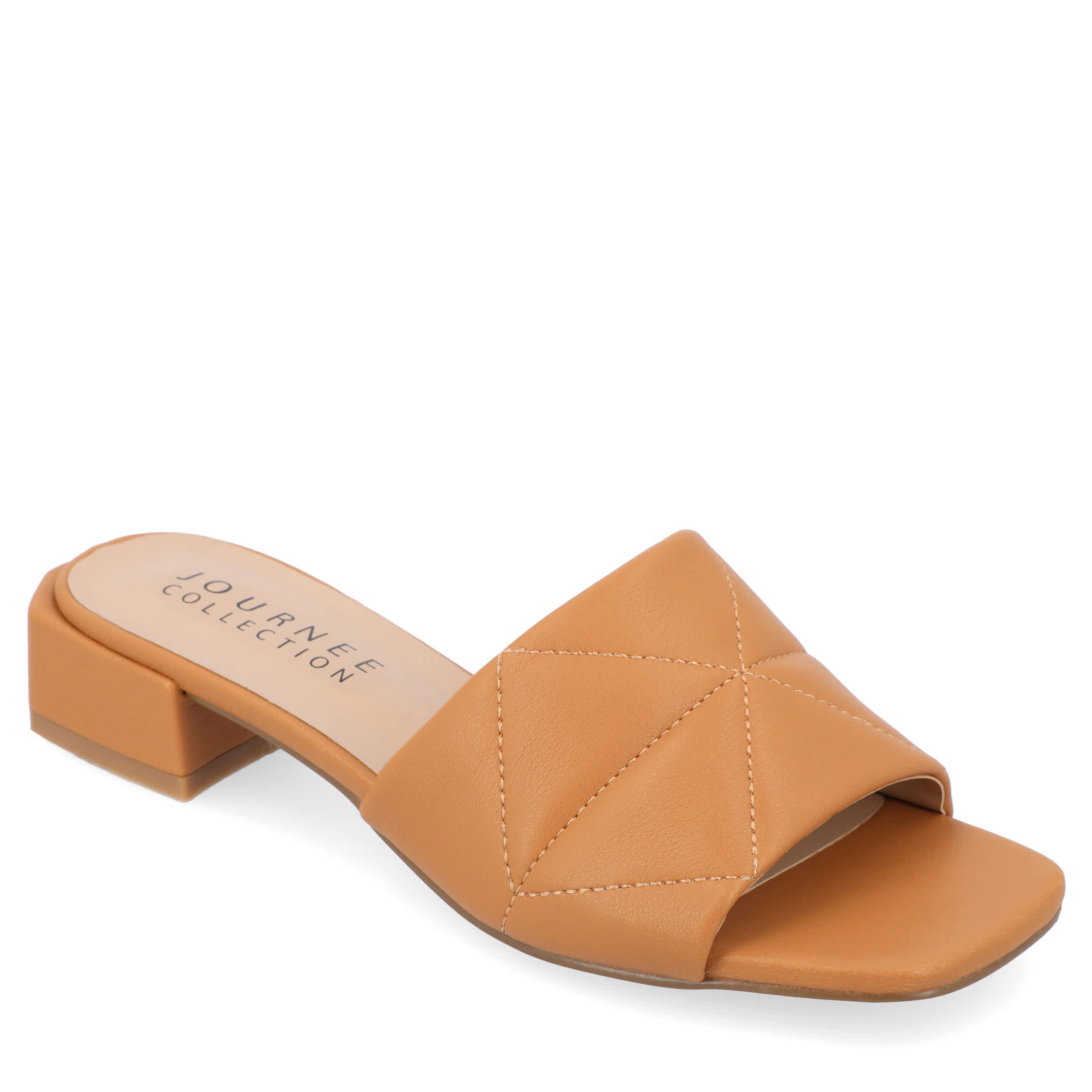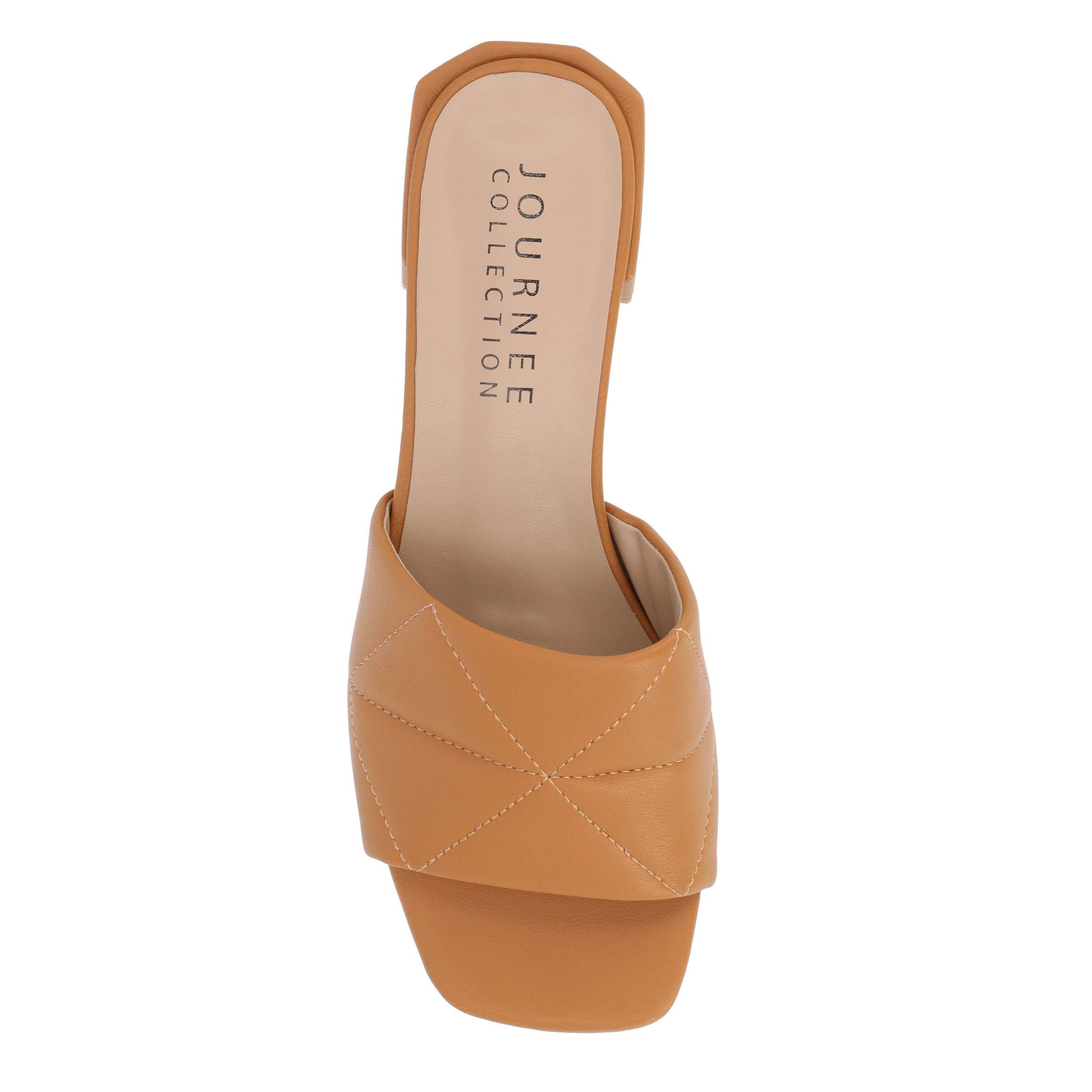 Look and feel your best in the Elidia women's slip-on sandal from Journee Collection. With a faux leather upper featuring a quilted band detail and a flattering open square-toe design, this sandal effortlessly goes from day to night. A padded footbed comforts your feet, while the complementing block heel provides stability.