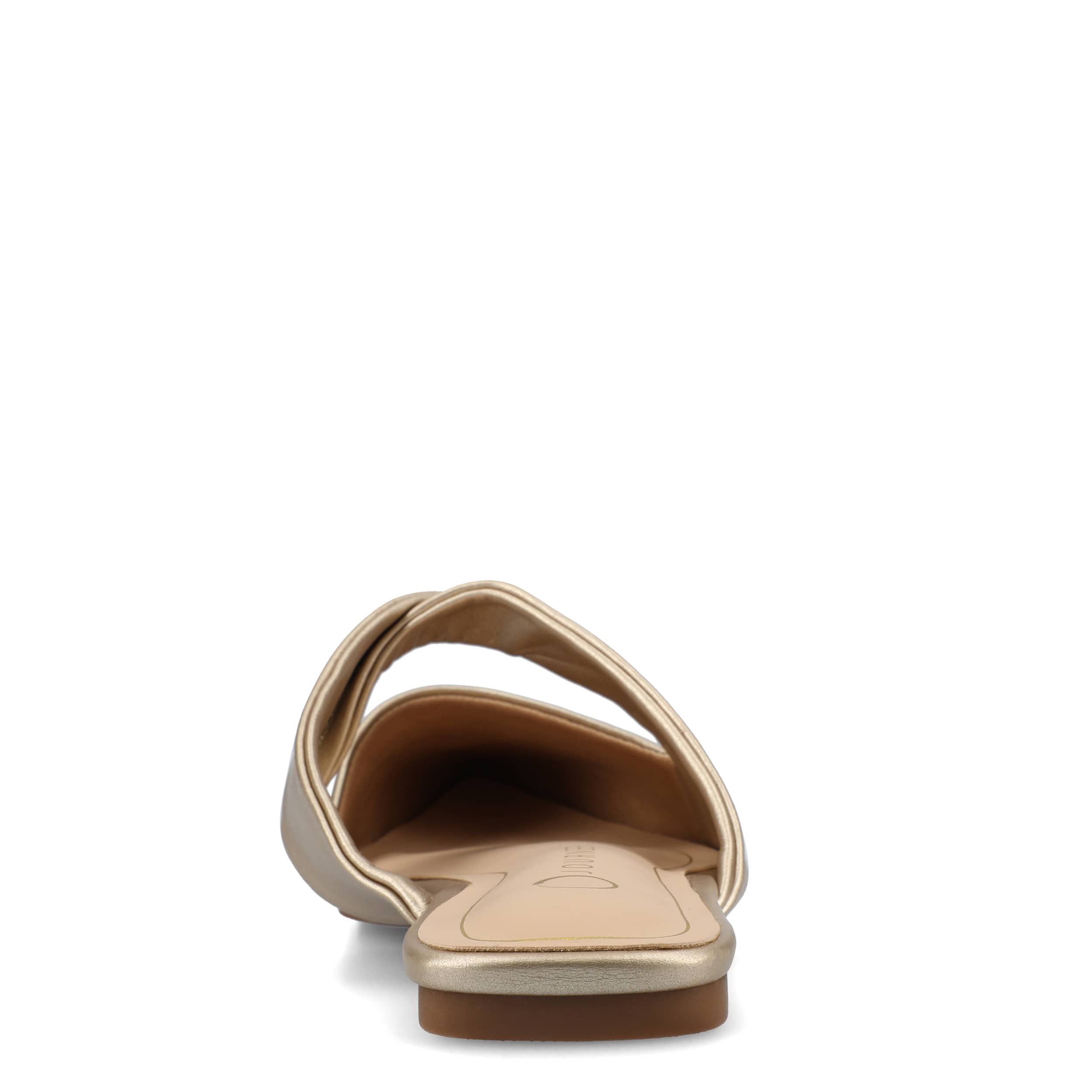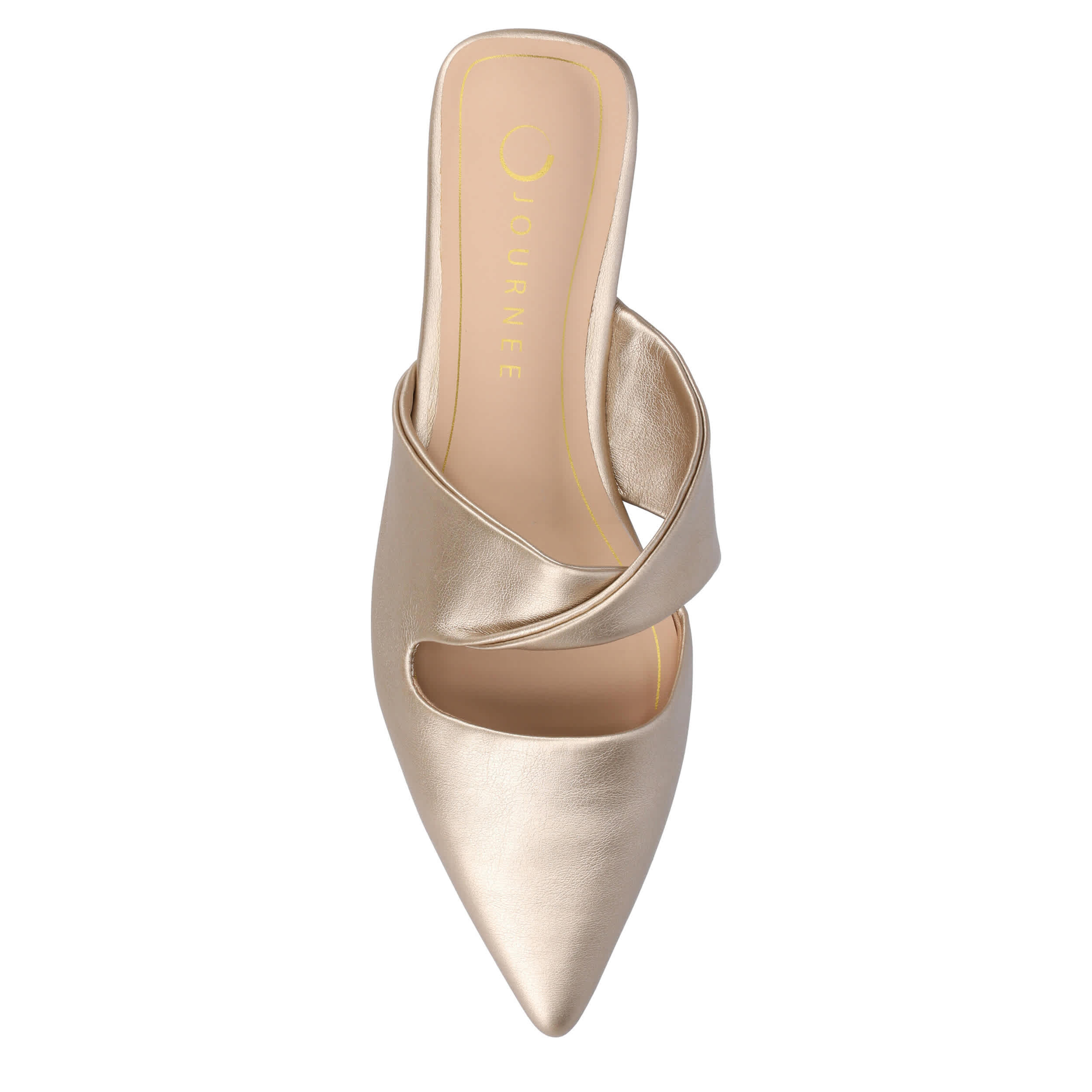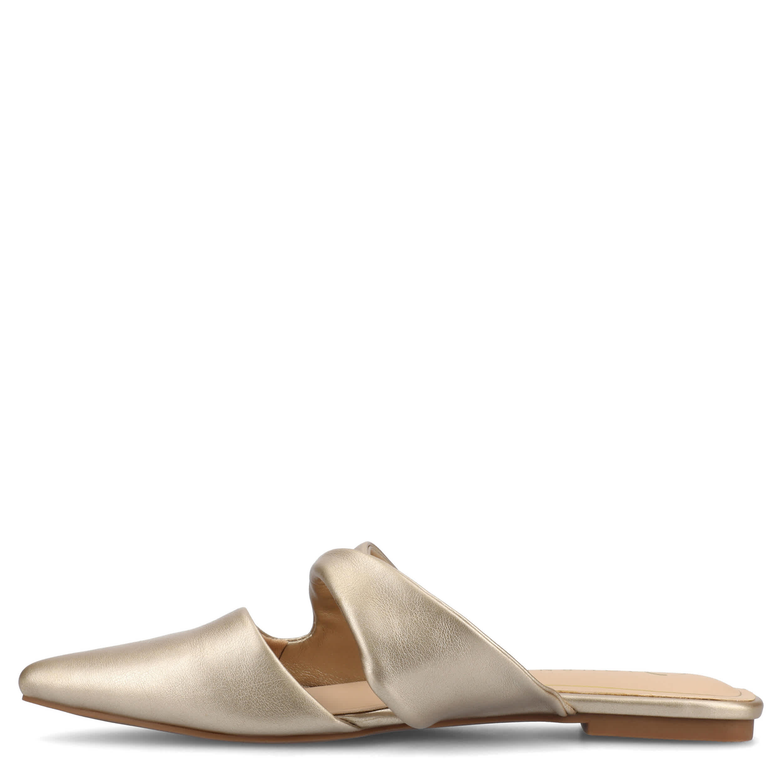 For work or the weekend, the Ennis loafer from Journee Collection has you covered. With a twisted faux leather upper, this slip-on has a pointed toe and open side design for extra feminine flair. The padded insole comforts your foot, while the synthetic outsole offers durability.