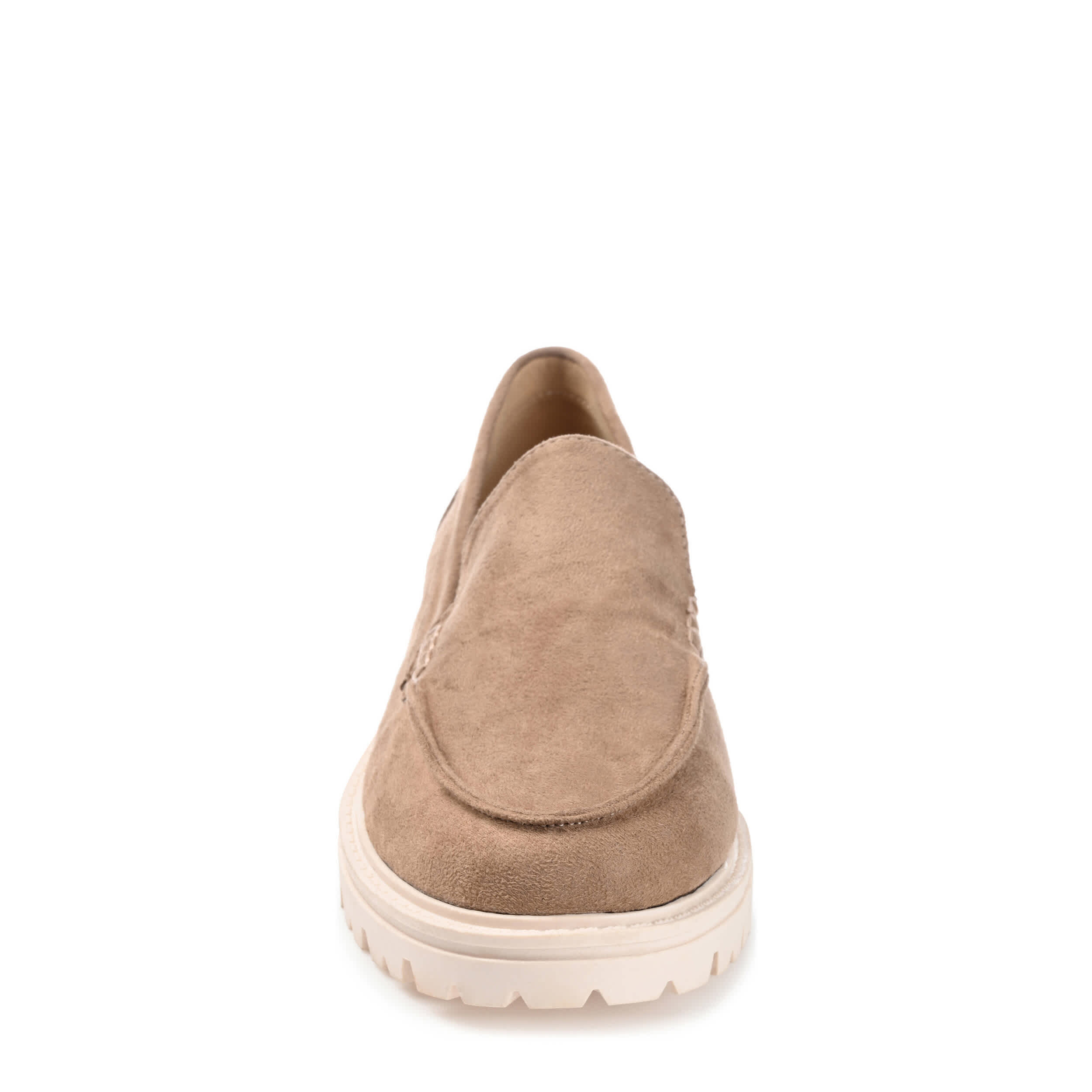 Style an edgy look for the office with the Erika women's loafer from Journee Collection. With a supple vegan leather upper featuring a flattering almond-shaped toe, this modern slip-on loafer, with a 1½" block heel, looks fantastic with dress pants and a blazer. A Tru Comfort Foam™ footbed offers all-day support and cushioning, while the chunky lug outsole provides outstanding grip and traction.