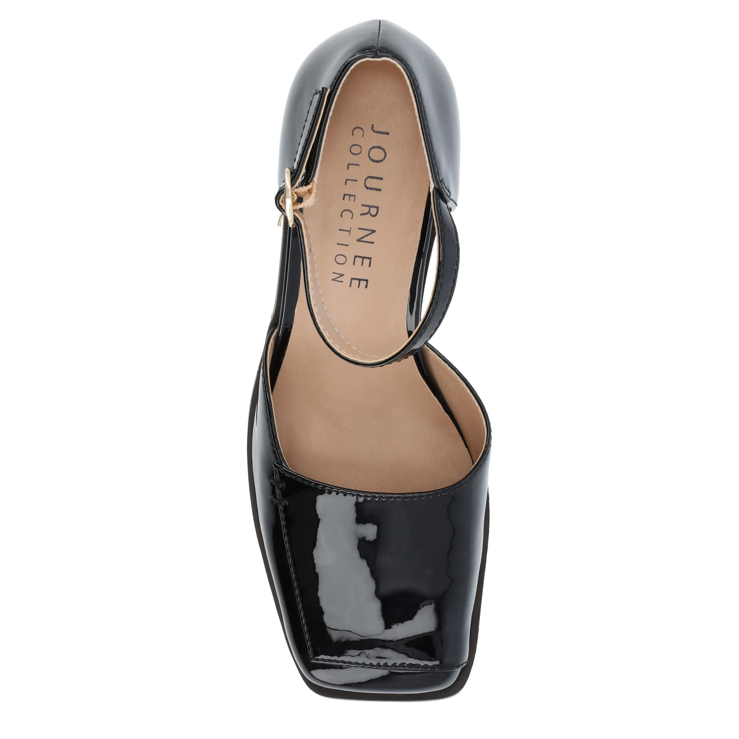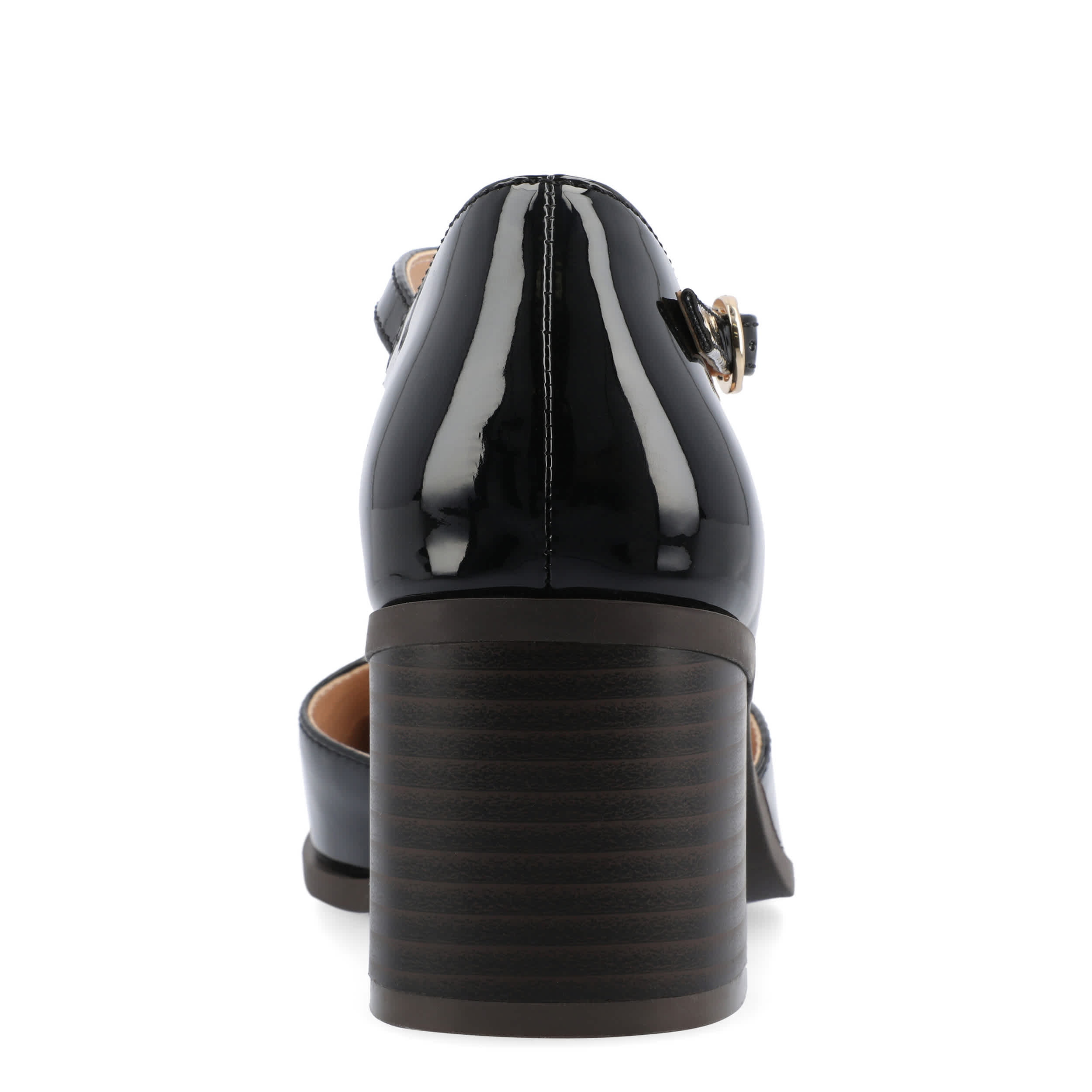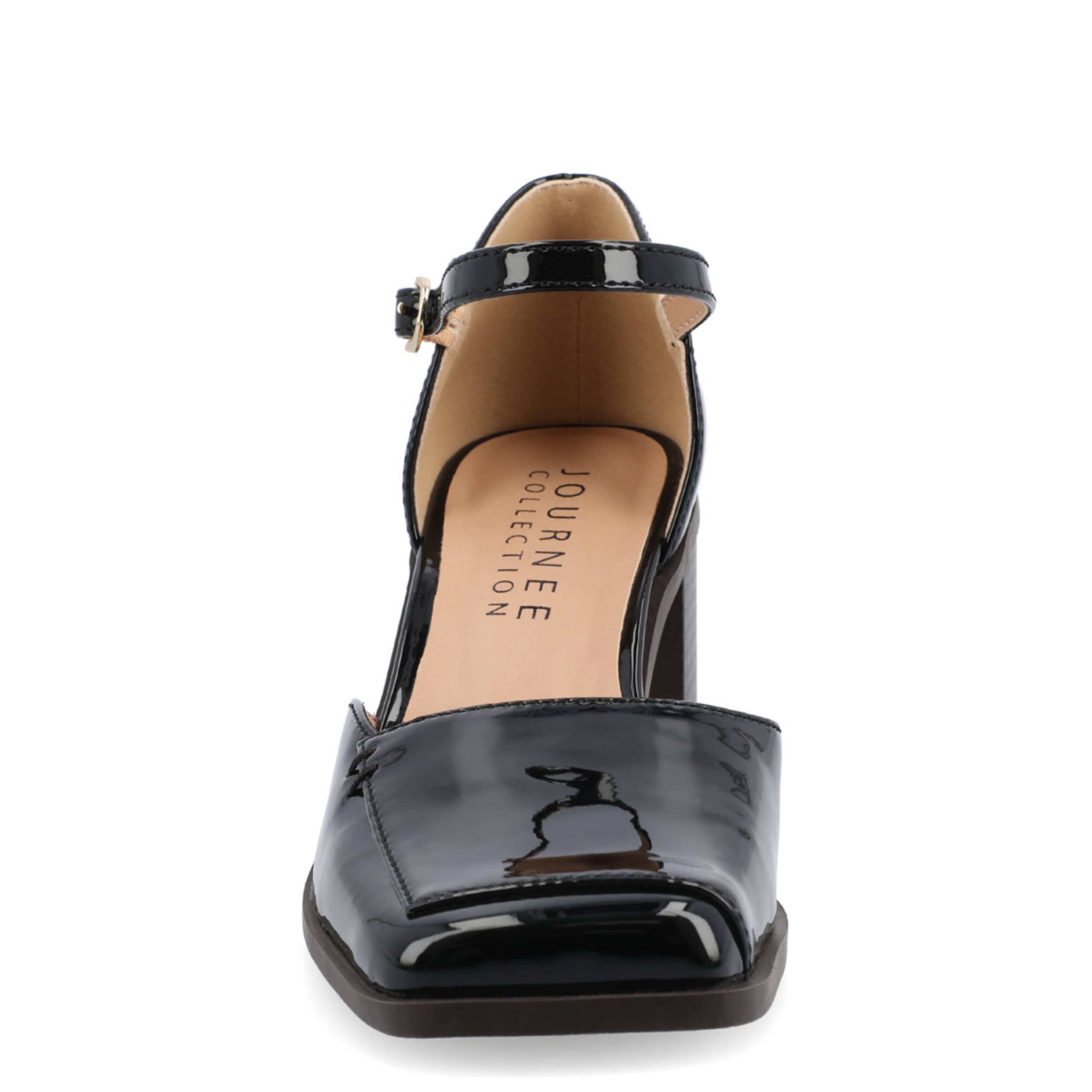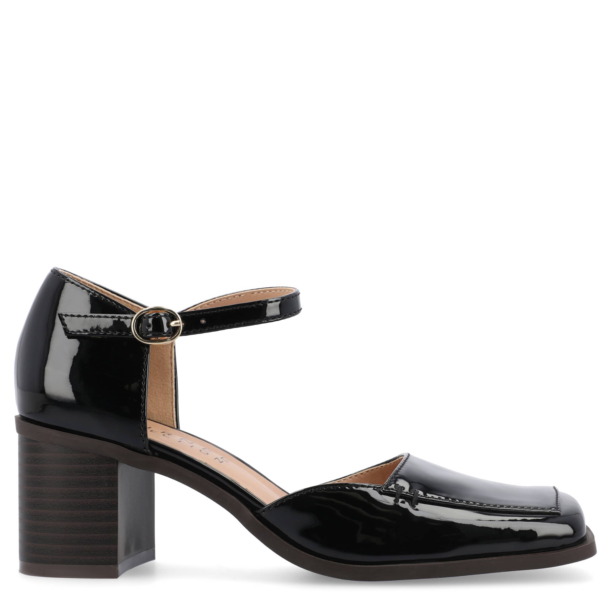 Make the Evangeline pump from Journee Collection your new office go-to. With a glossy patent leather upper, this shoe has a sleek square toe for a chic touch. The padded insole soothes your foot, while the stacked heel gives a decent lift.