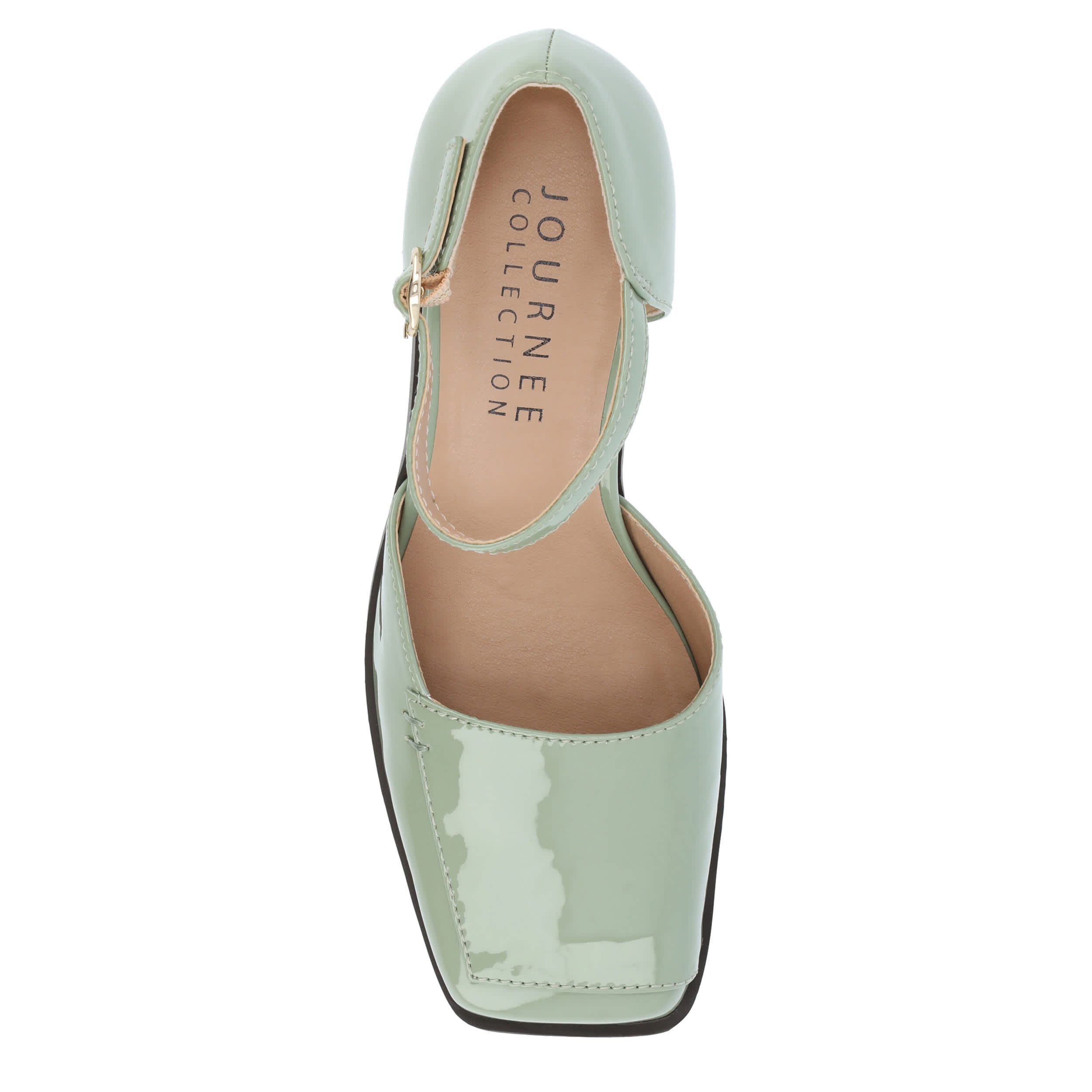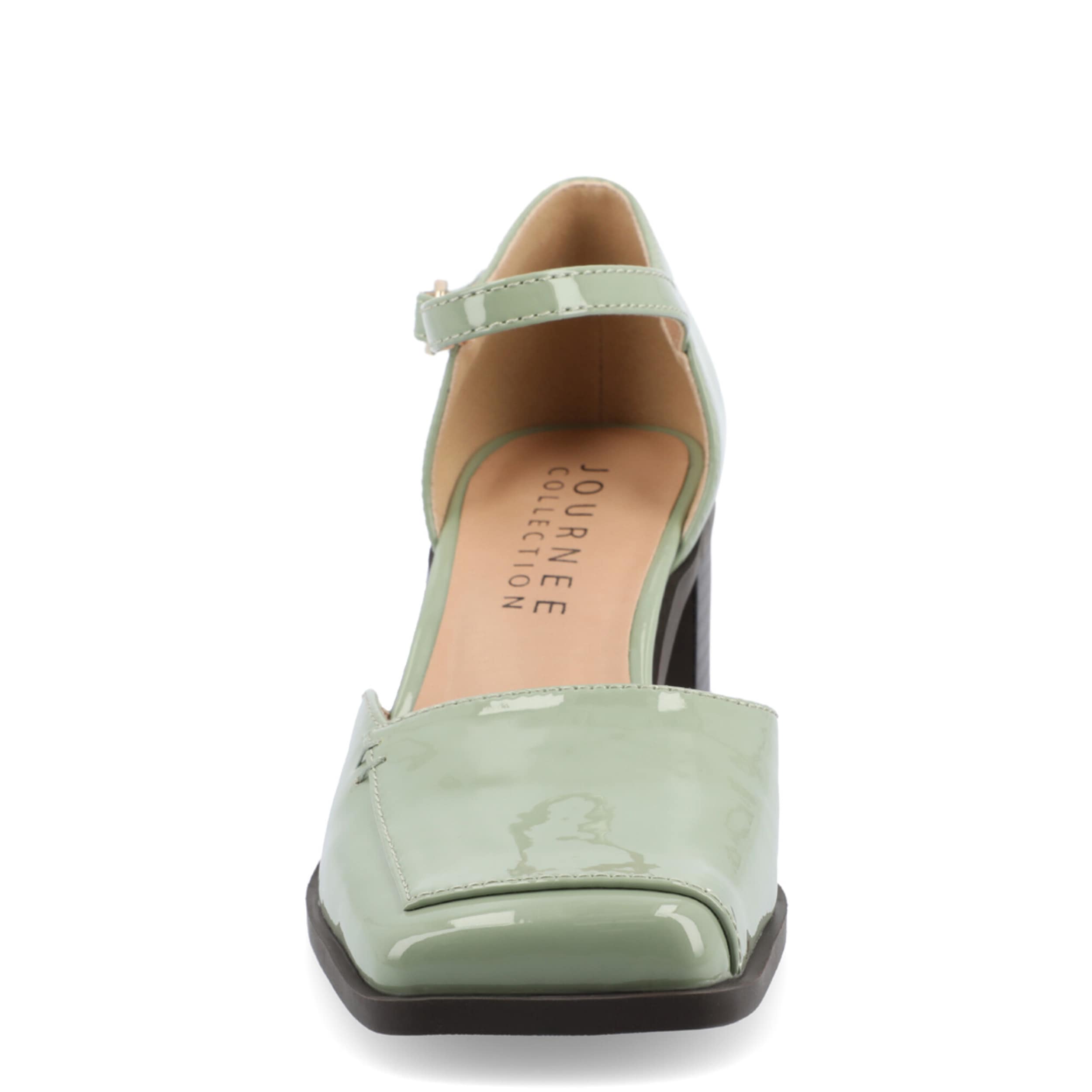 Make the Evangeline pump from Journee Collection your new office go-to. With a glossy patent leather upper, this shoe has a sleek square toe for a chic touch. The padded insole soothes your foot, while the stacked heel gives a decent lift.
