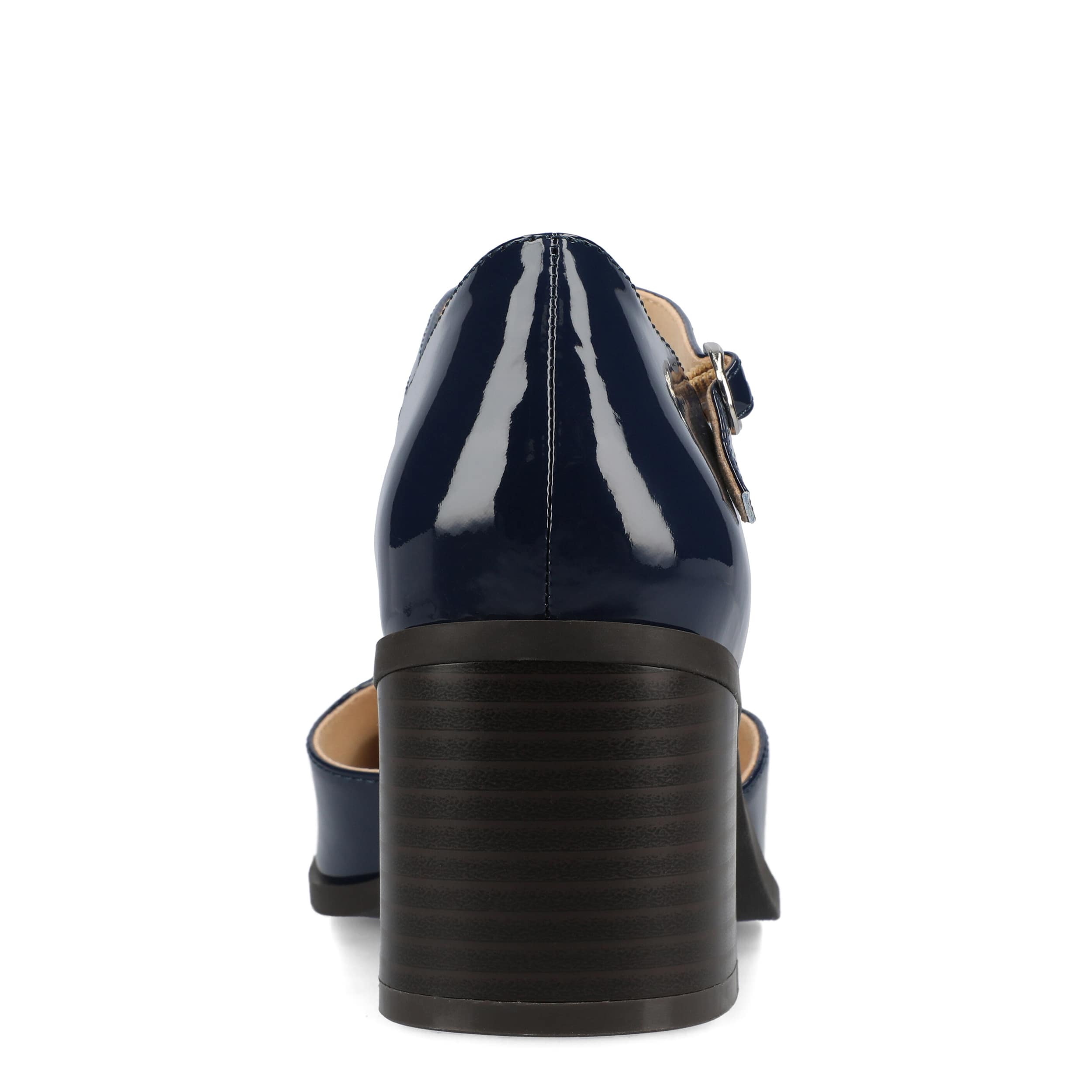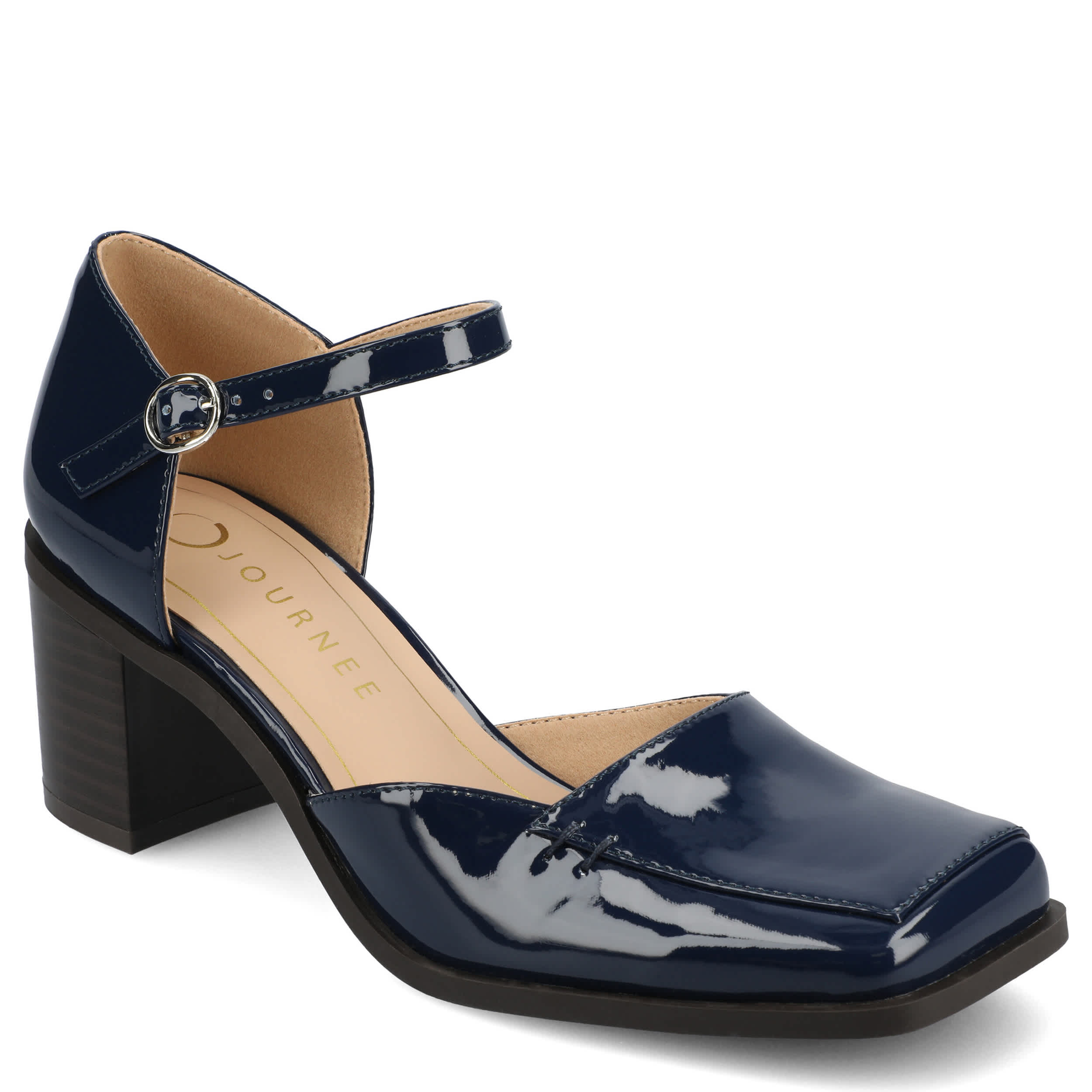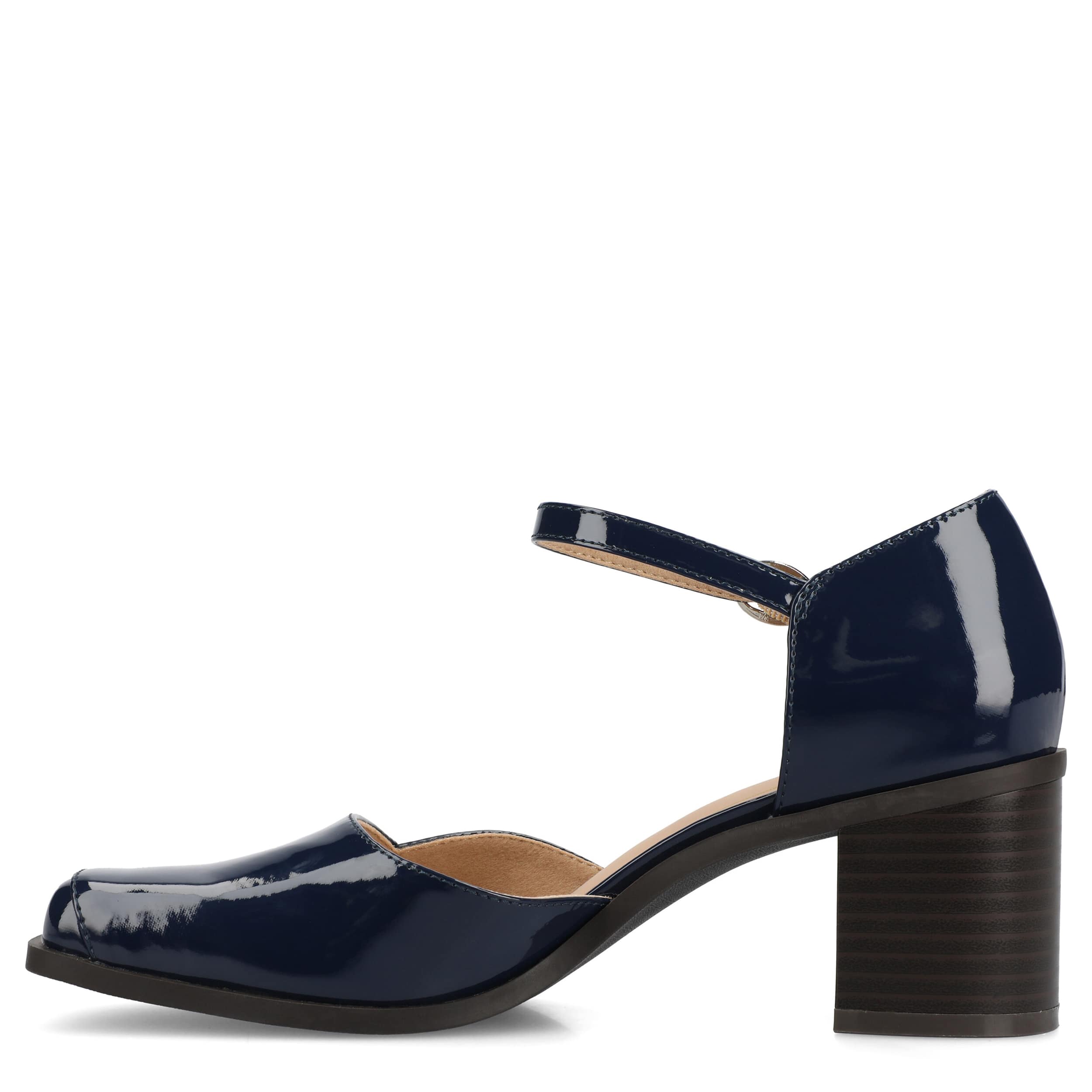 Make the Evangeline pump from Journee Collection your new office go-to. With a glossy patent leather upper, this shoe has a sleek square toe for a chic touch. The padded insole soothes your foot, while the stacked heel gives a decent lift.