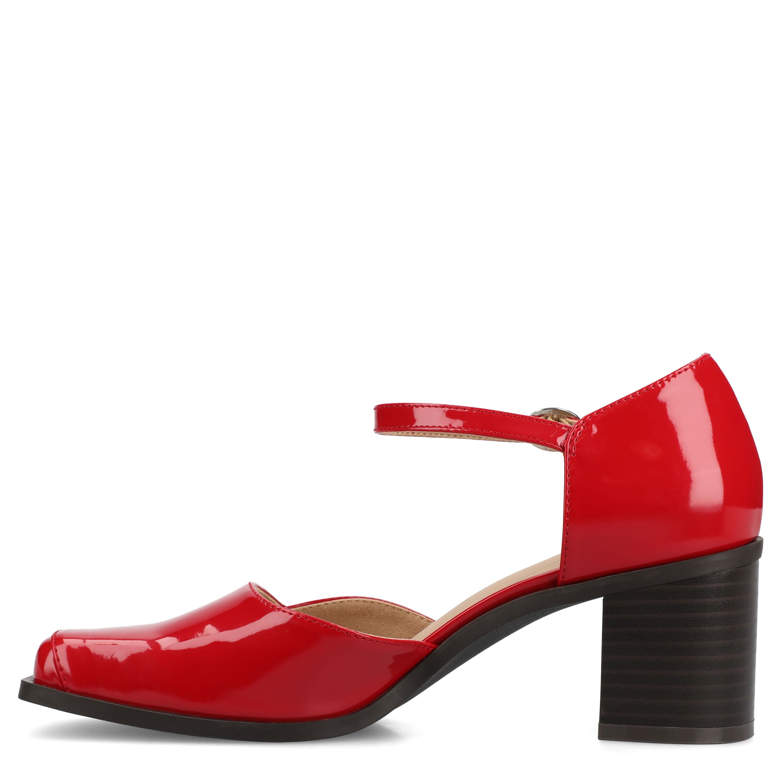 Make the Evangeline pump from Journee Collection your new office go-to. With a glossy patent leather upper, this shoe has a sleek square toe for a chic touch. The padded insole soothes your foot, while the stacked heel gives a decent lift.