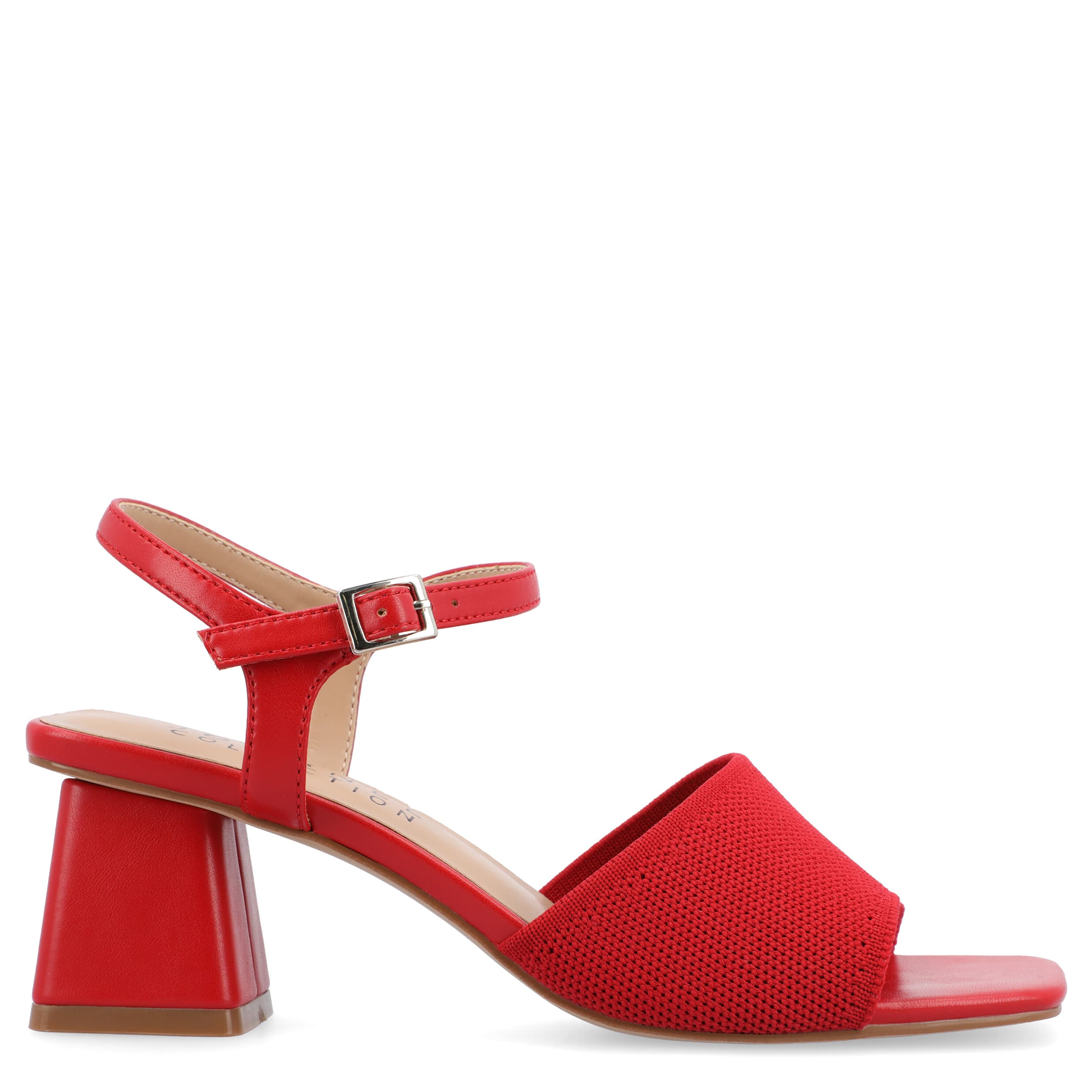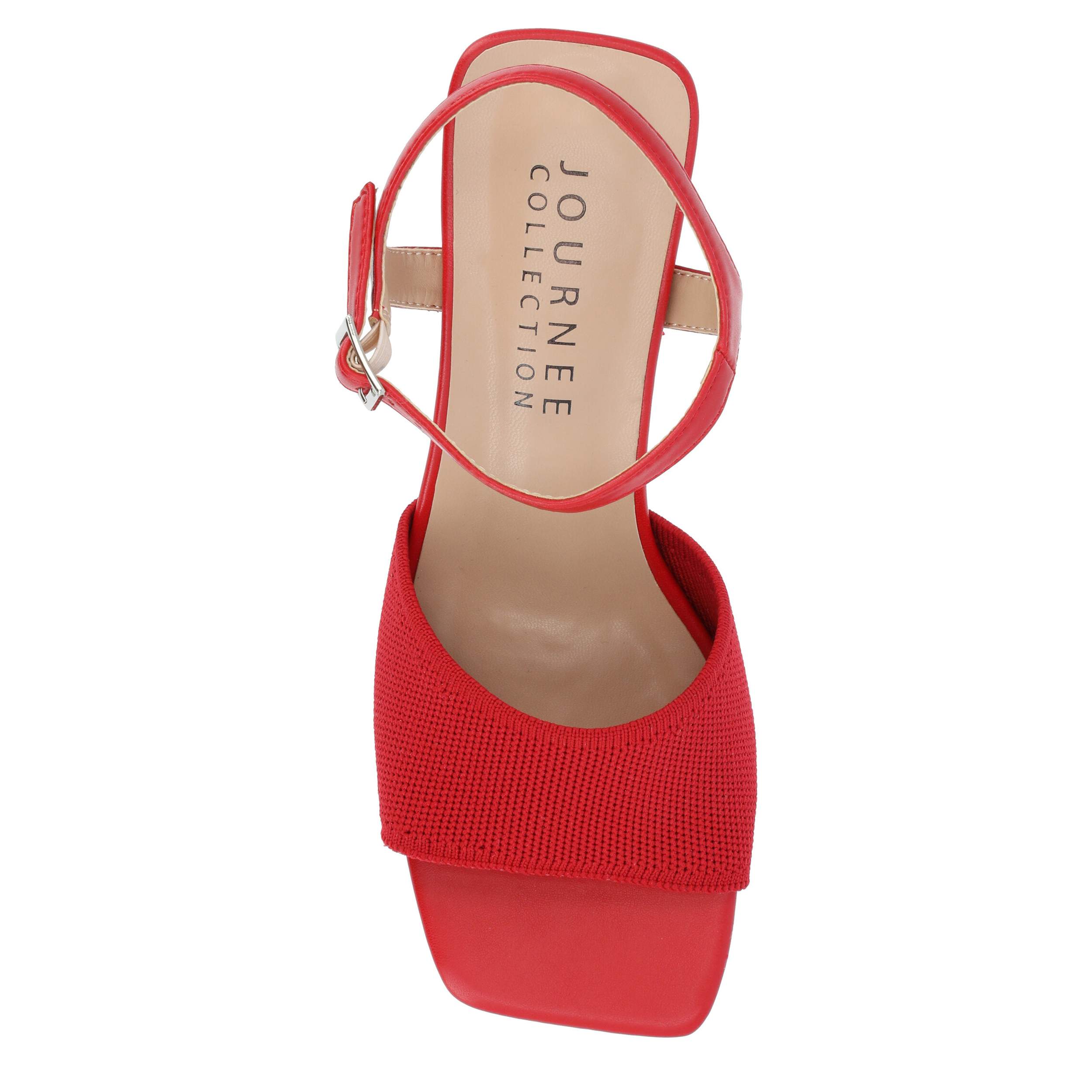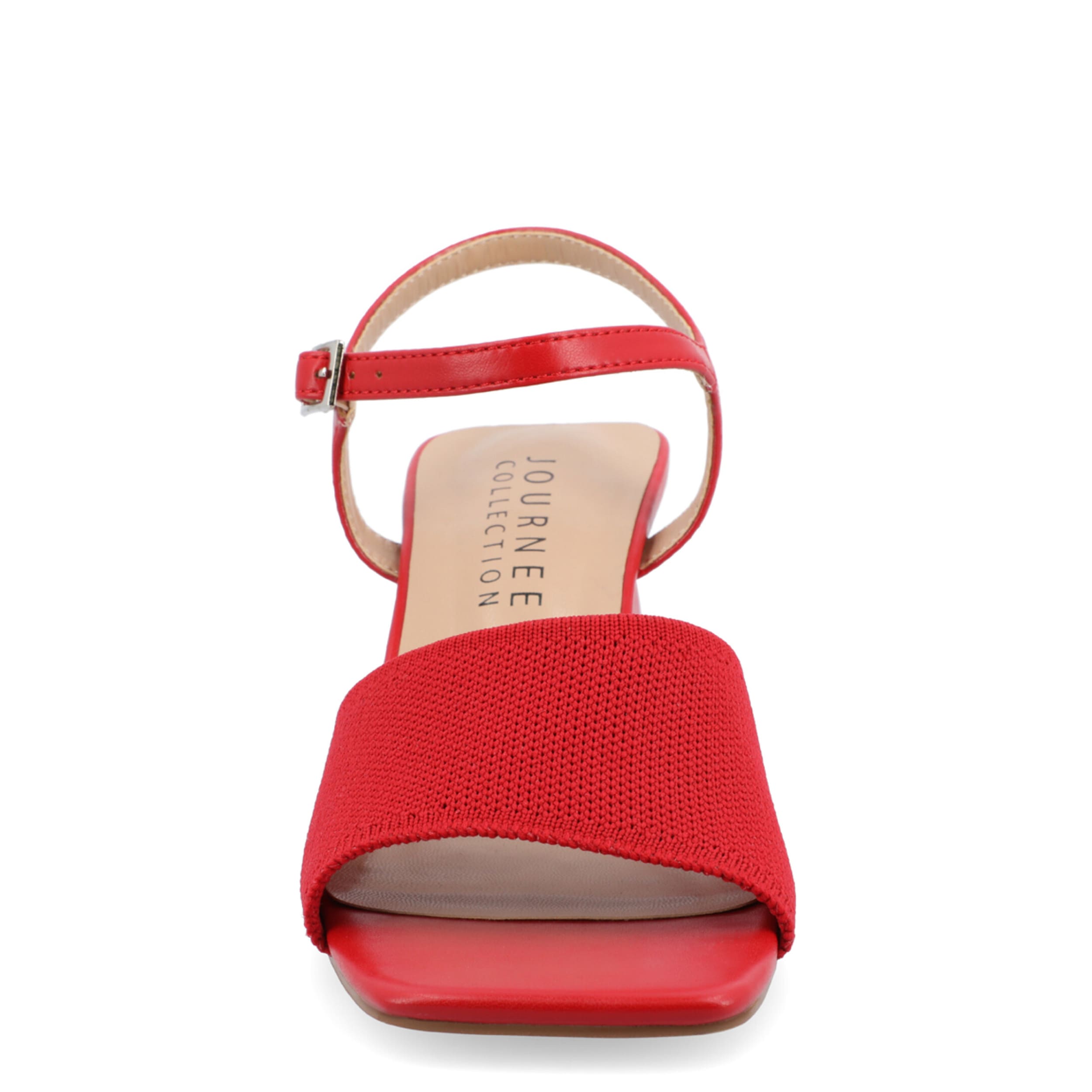 Be fashion forward with the Evylinn sandal from Journee Collection. With a fabric upper, this shoe has a square toe and sleek silhouette for extra style. The Tru Comfort Foamâ„¢ insole soothes your foot, while the block heel offers a nice elevation.