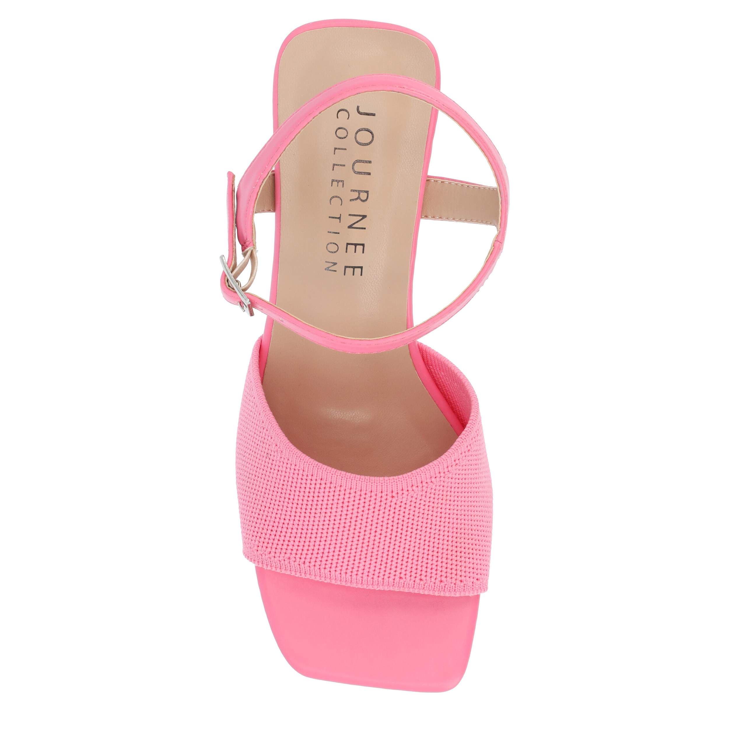Be fashion forward with the Evylinn sandal from Journee Collection. With a fabric upper, this shoe has a square toe and sleek silhouette for extra style. The Tru Comfort Foamâ„¢ insole soothes your foot, while the block heel offers a nice elevation.