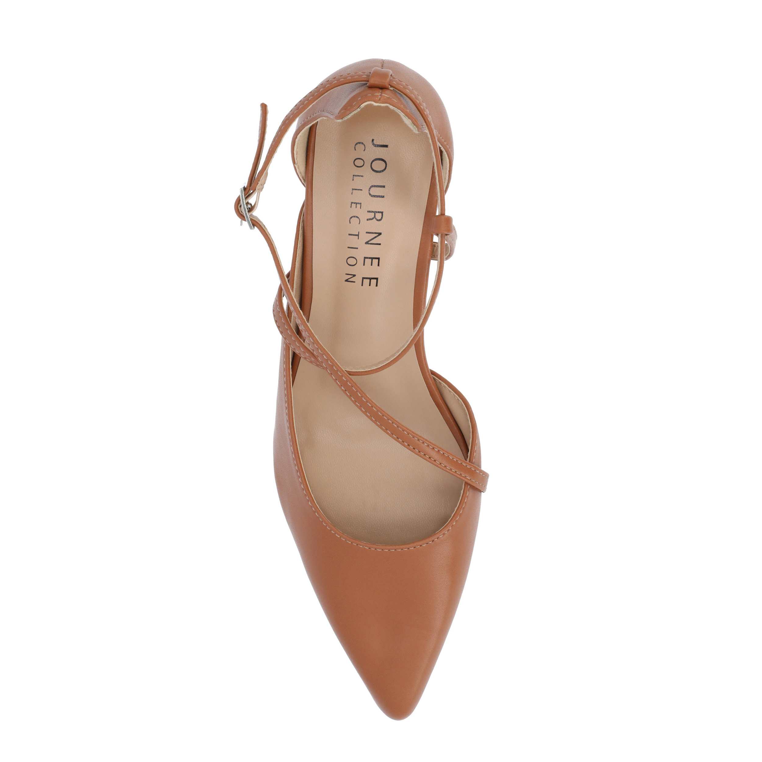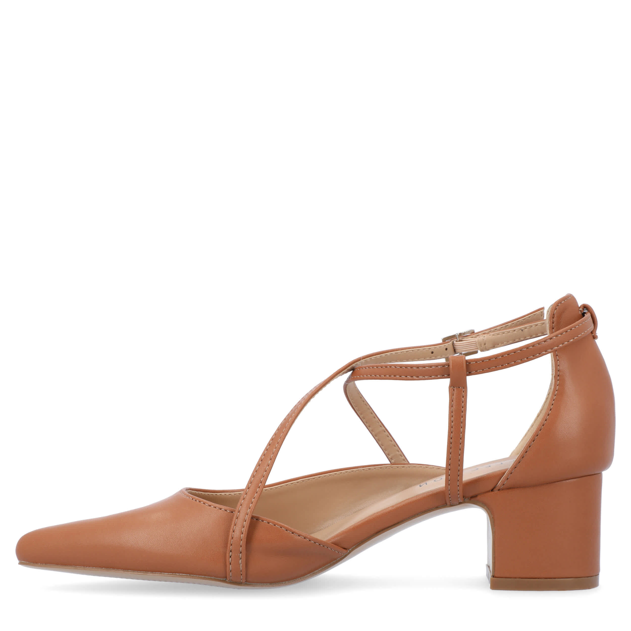 Dress to impress with the Galvinn women's pump from Journee Collection. With a faux leather upper featuring a D'Orsay design and an adjustable ankle strap for a perfect fit, this pointy-toe pump beautifully accentuates all your favorite outfits. A padded footbed comforts your feet, while the covered block heel offers stability for lasting wear.