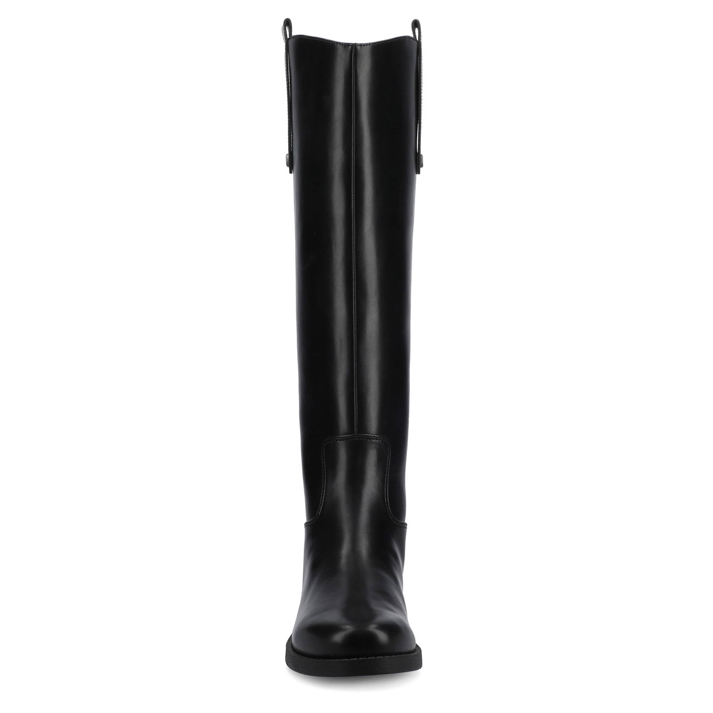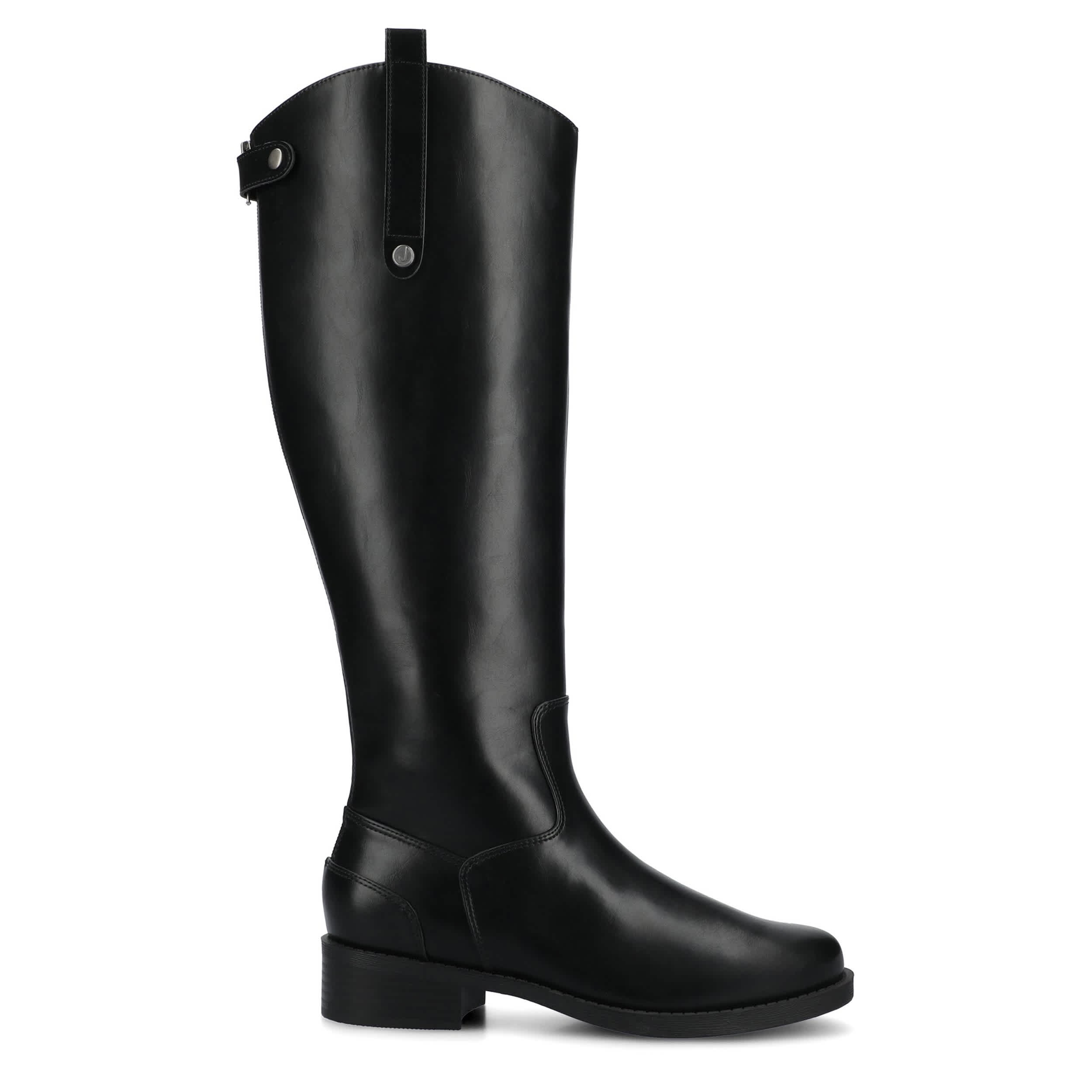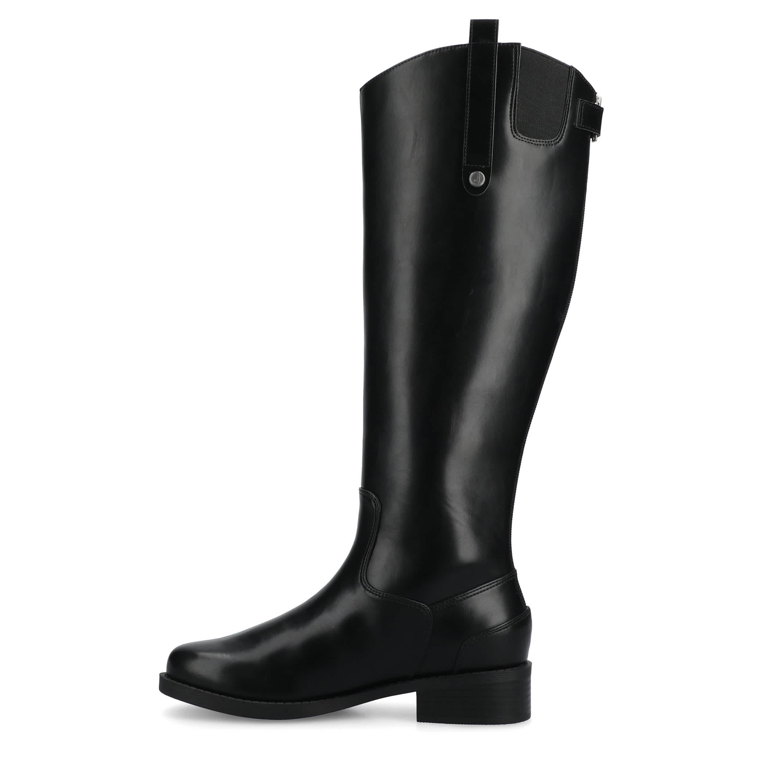 Flow through your autumn events in the Journee Collection Gema tall boot. With a faux leather upper featuring a dual pull tabs for easy entry, this riding boot is sure to become a fall favorite. Walk easy on the Journee Comfort System insole and low heel.