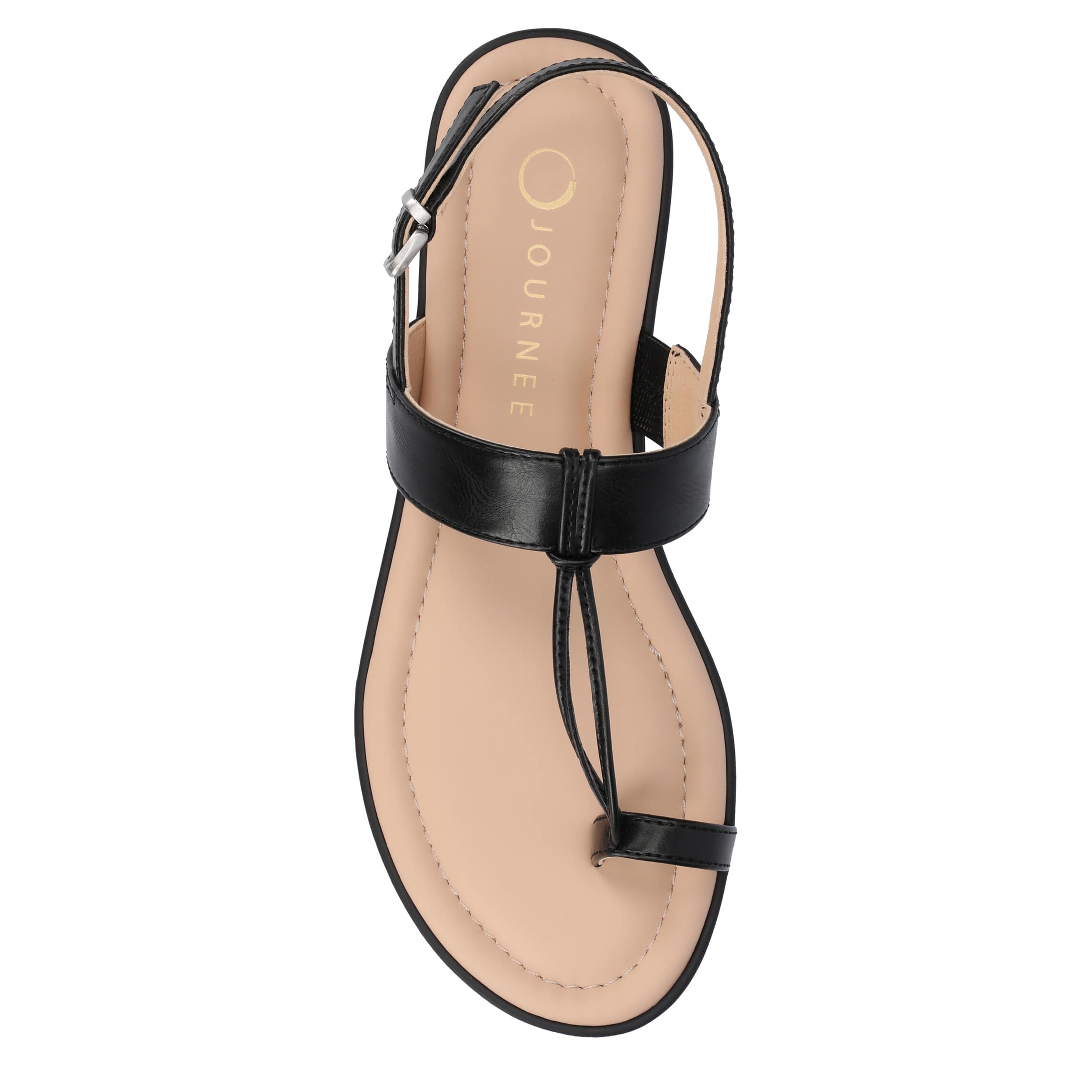 Make getting ready a breeze with the Journee Collection Gerra sandal. Featuring a faux leather upper, this classy T-strap sandal has a toe loop for a sophisticated touch. The insole ensures cushy comfort, perfect for walking around town.