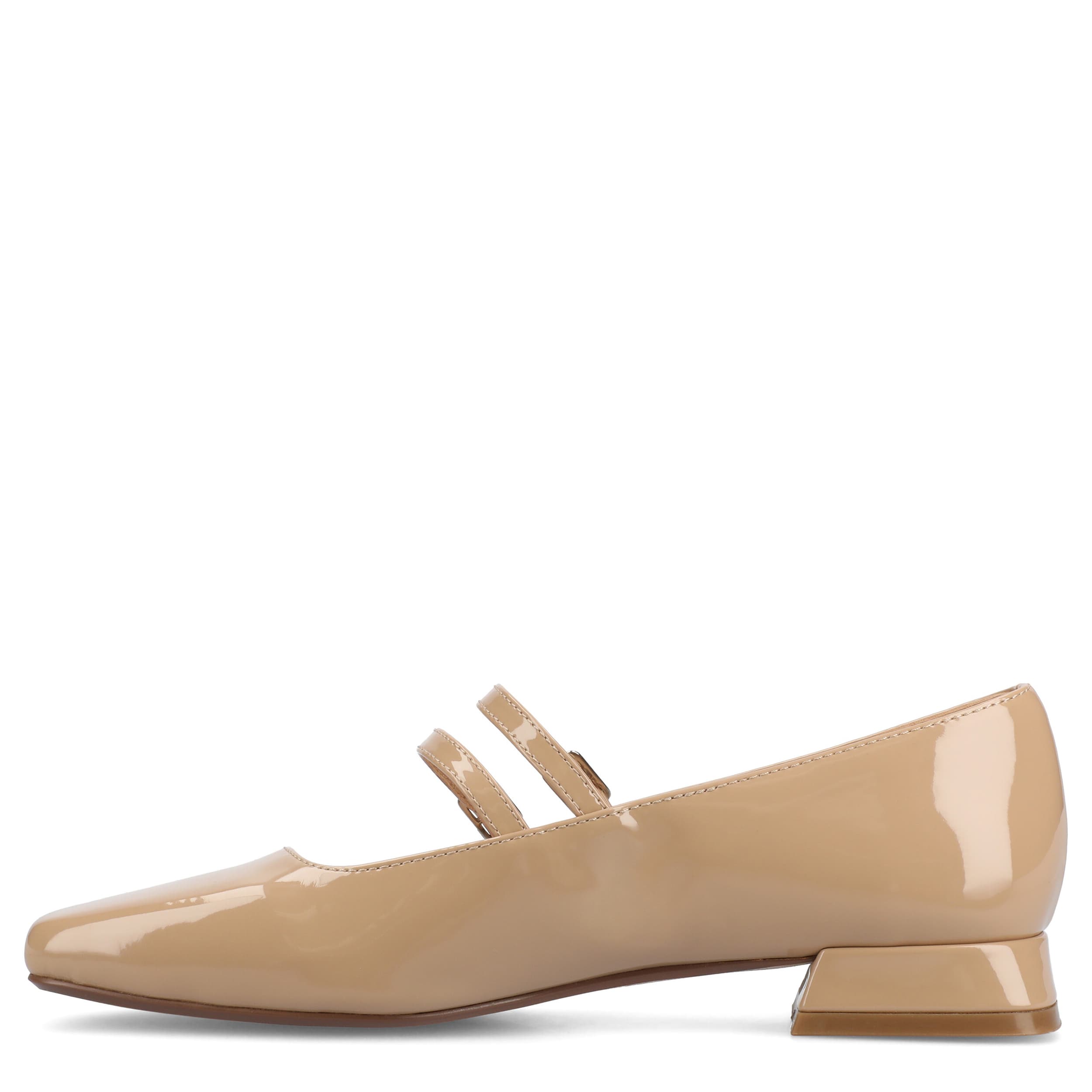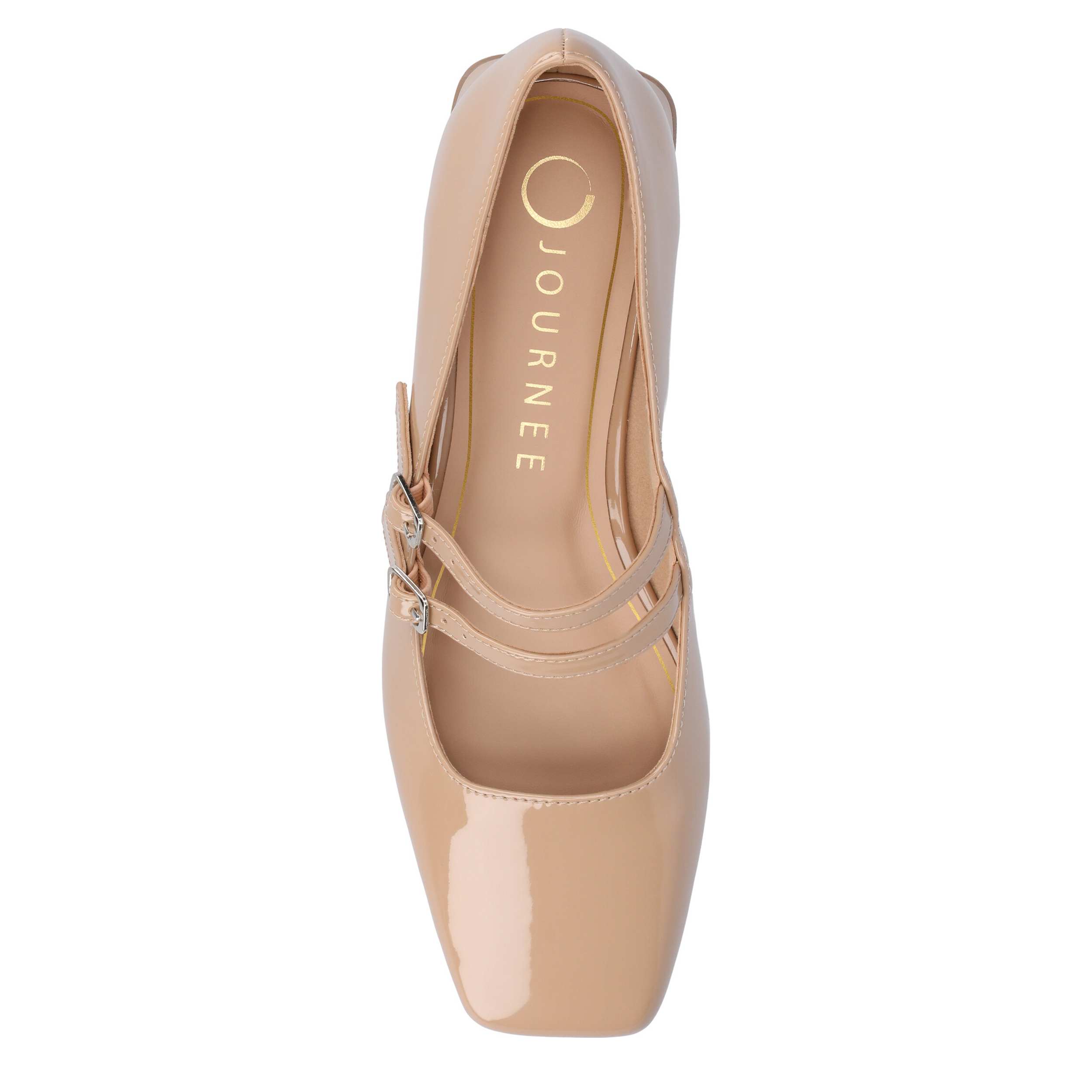 Classic can be a trend in the Gredah flat from Journee Collection. Featuring a glossy patent leather upper with adjustable buckle straps, this Mary Jane flat has a chic retro feel. The insole soothes your foot, while the low heel adds a subtle lift.