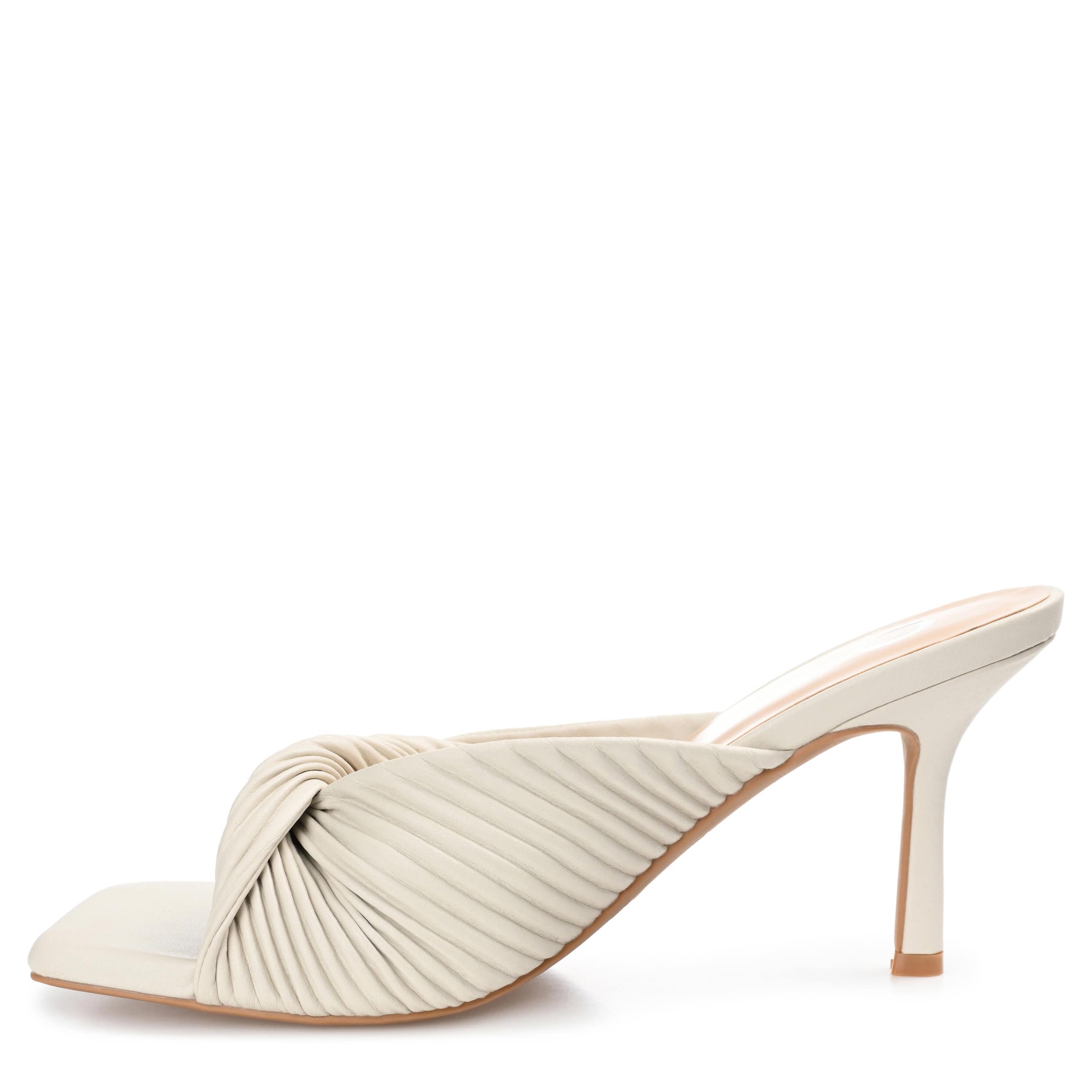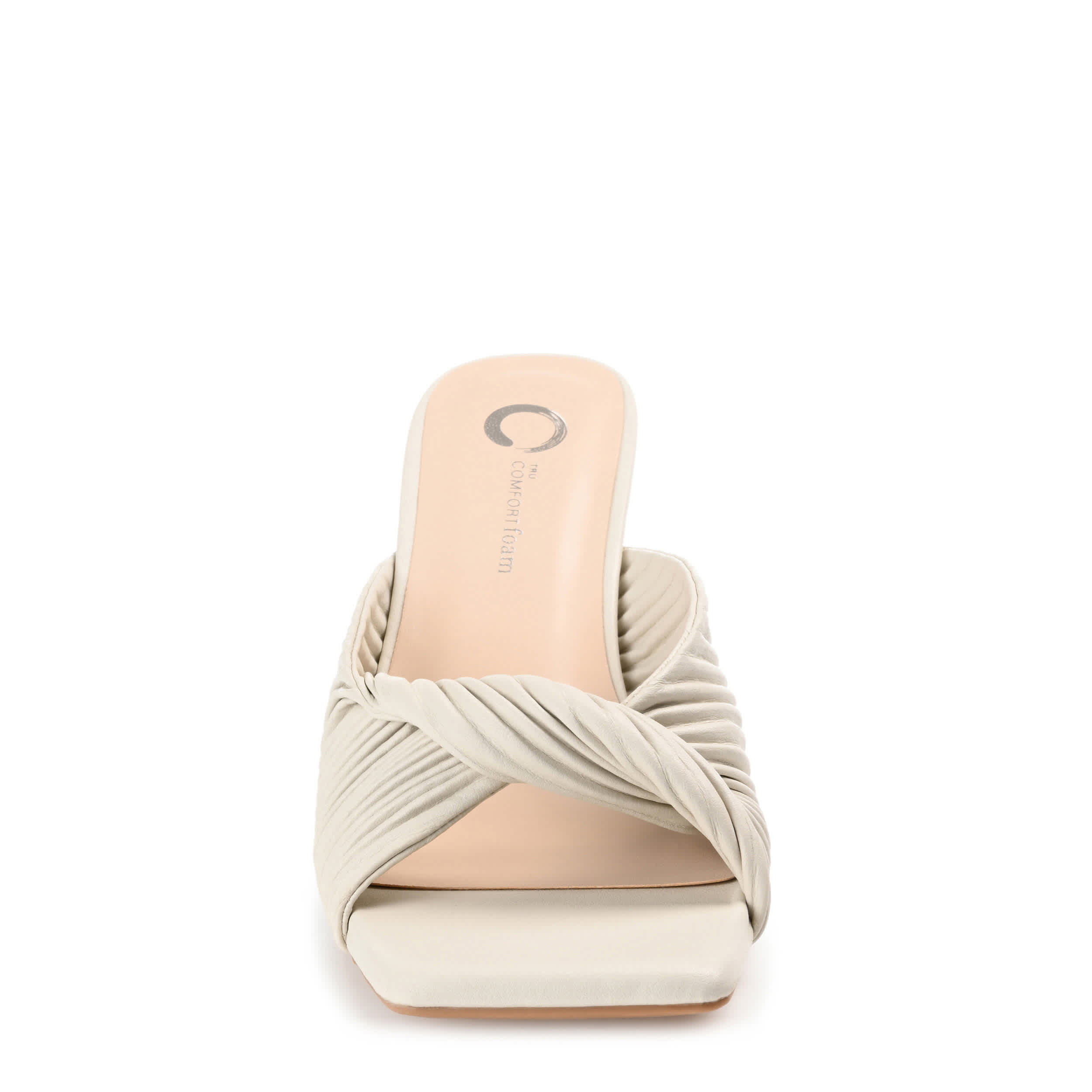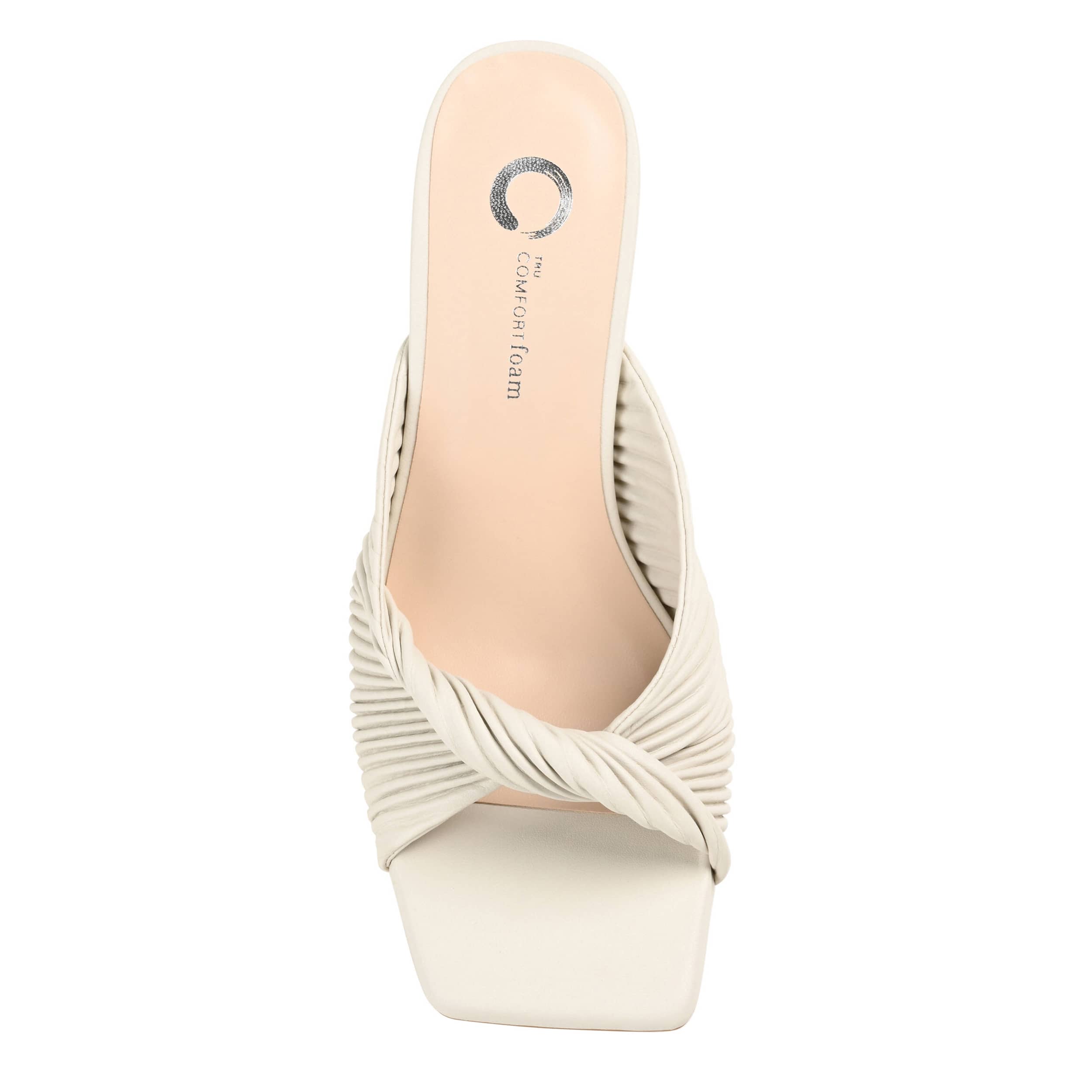 Add a sophisticated touch to your summer style with the Greer sandal from Journee Collection. With a pleated & twisted vegan leather upper, this peep-toed pump sports a chic silhouette, perfect for casual or formal occasions. The Tru Comfort Foamâ„¢ insole cushions your steps, while the stiletto heel gives a classy lift.