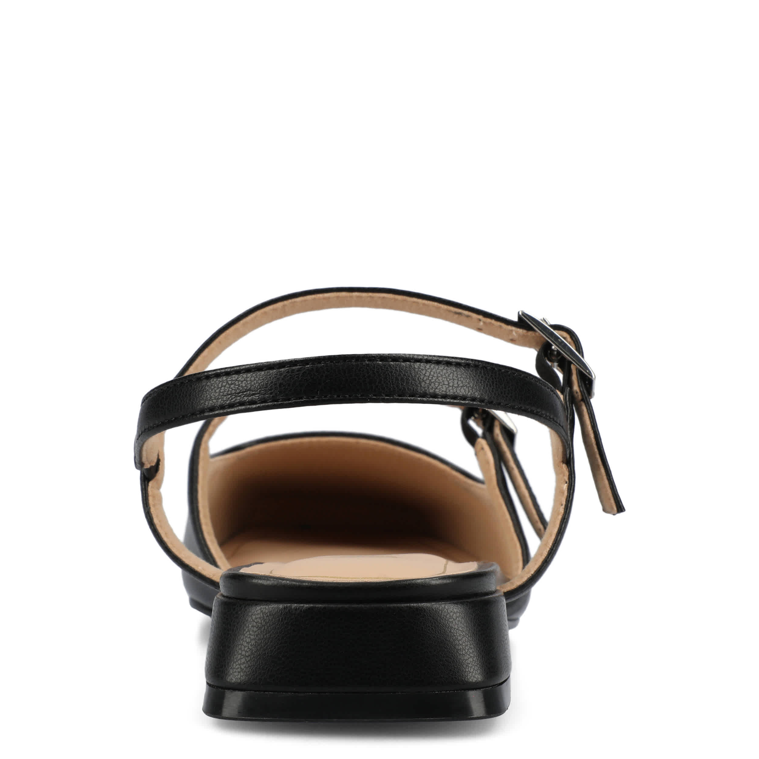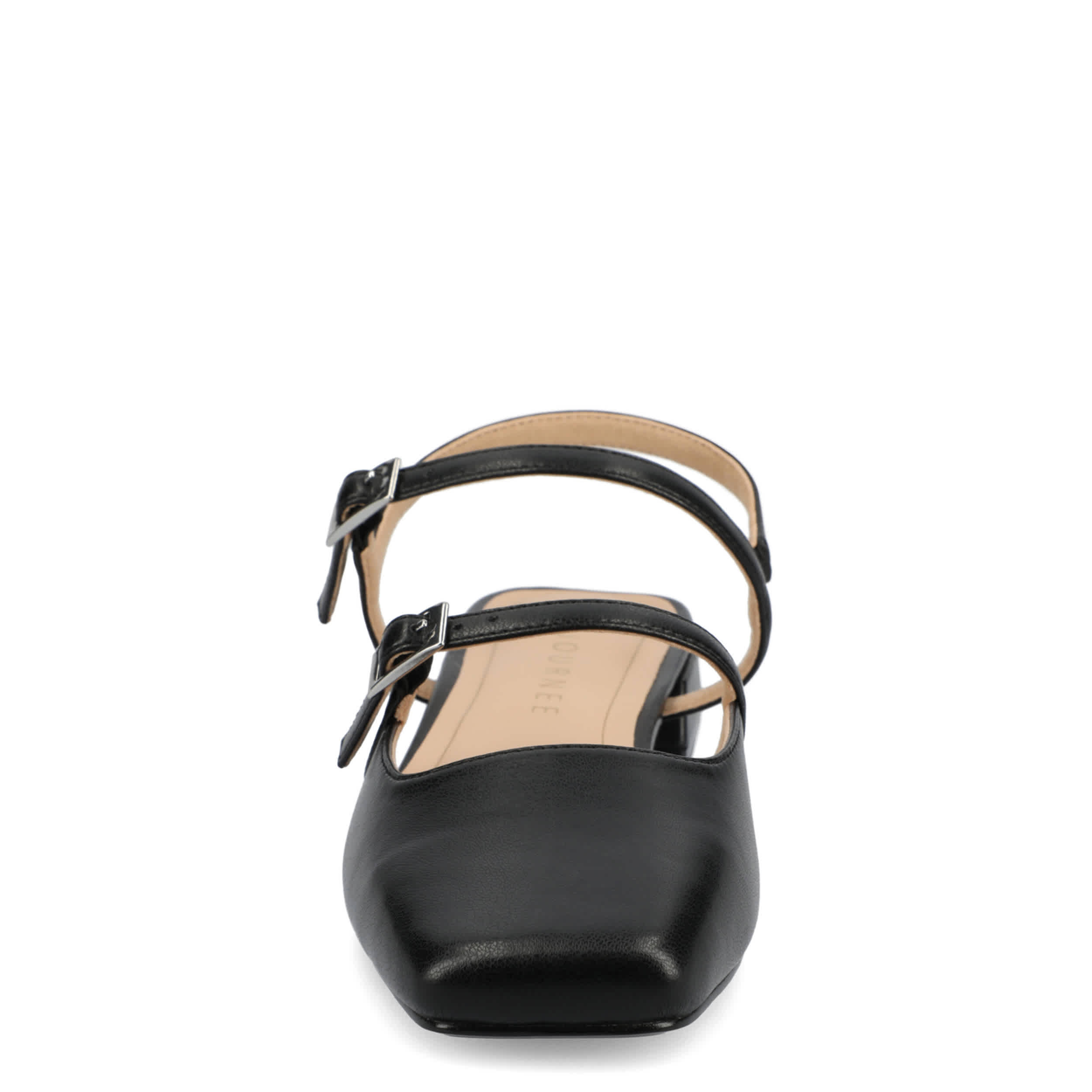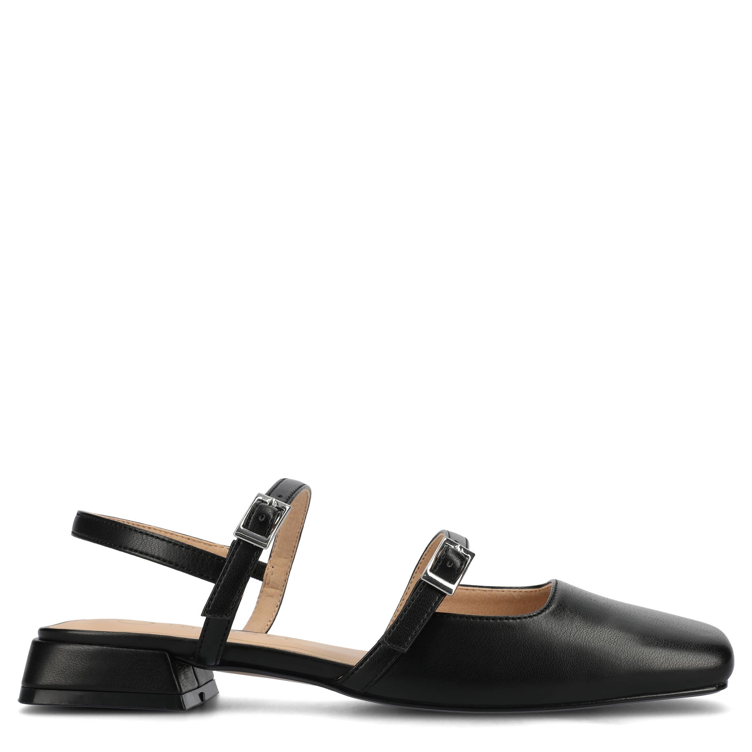Seamless style and comfort with the Journee Collection Gretchenn pump. Featuring a faux leather upper with an elastic slingback strap, this Mary Jane flat is fashionably different for work or the weekend. The insole offers all-day comfort, while the heel gives a subtle lift.