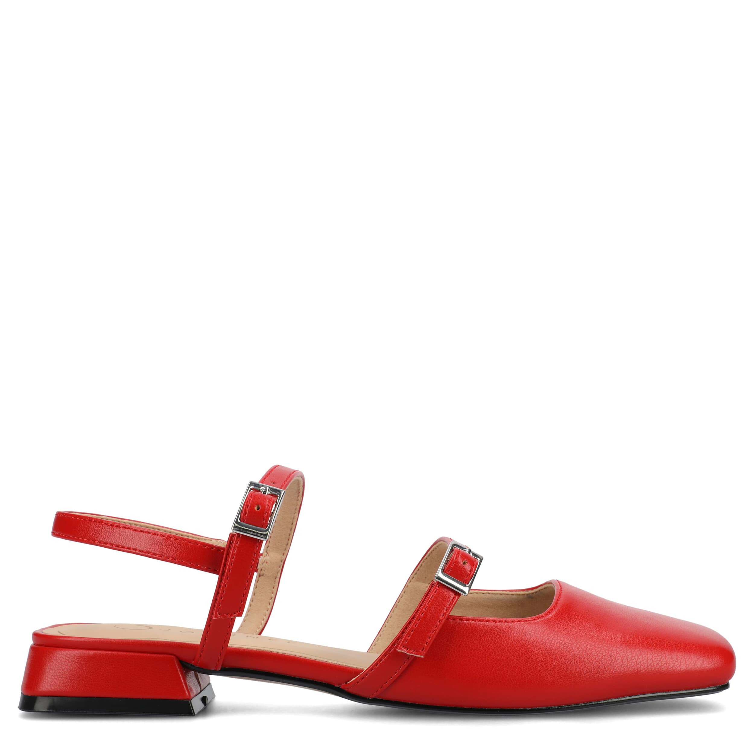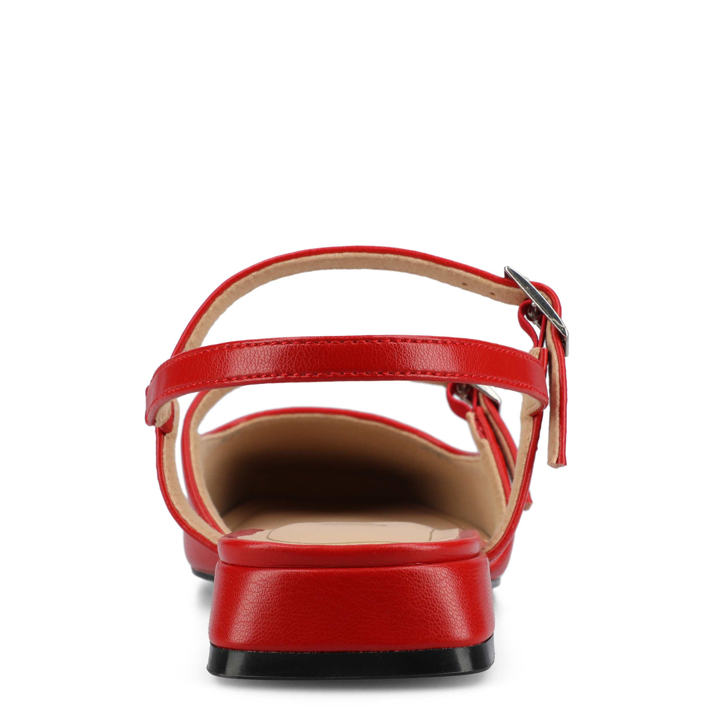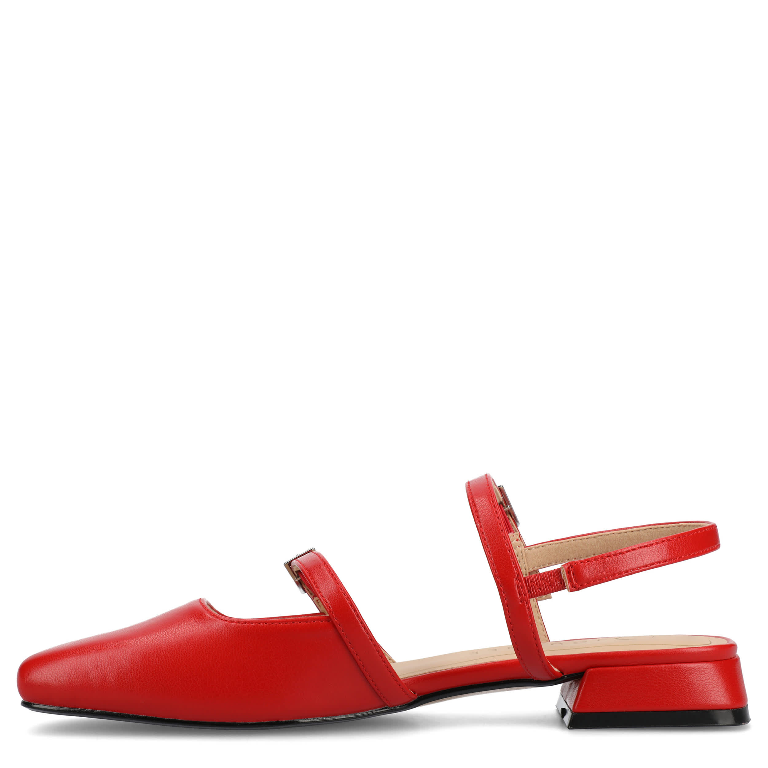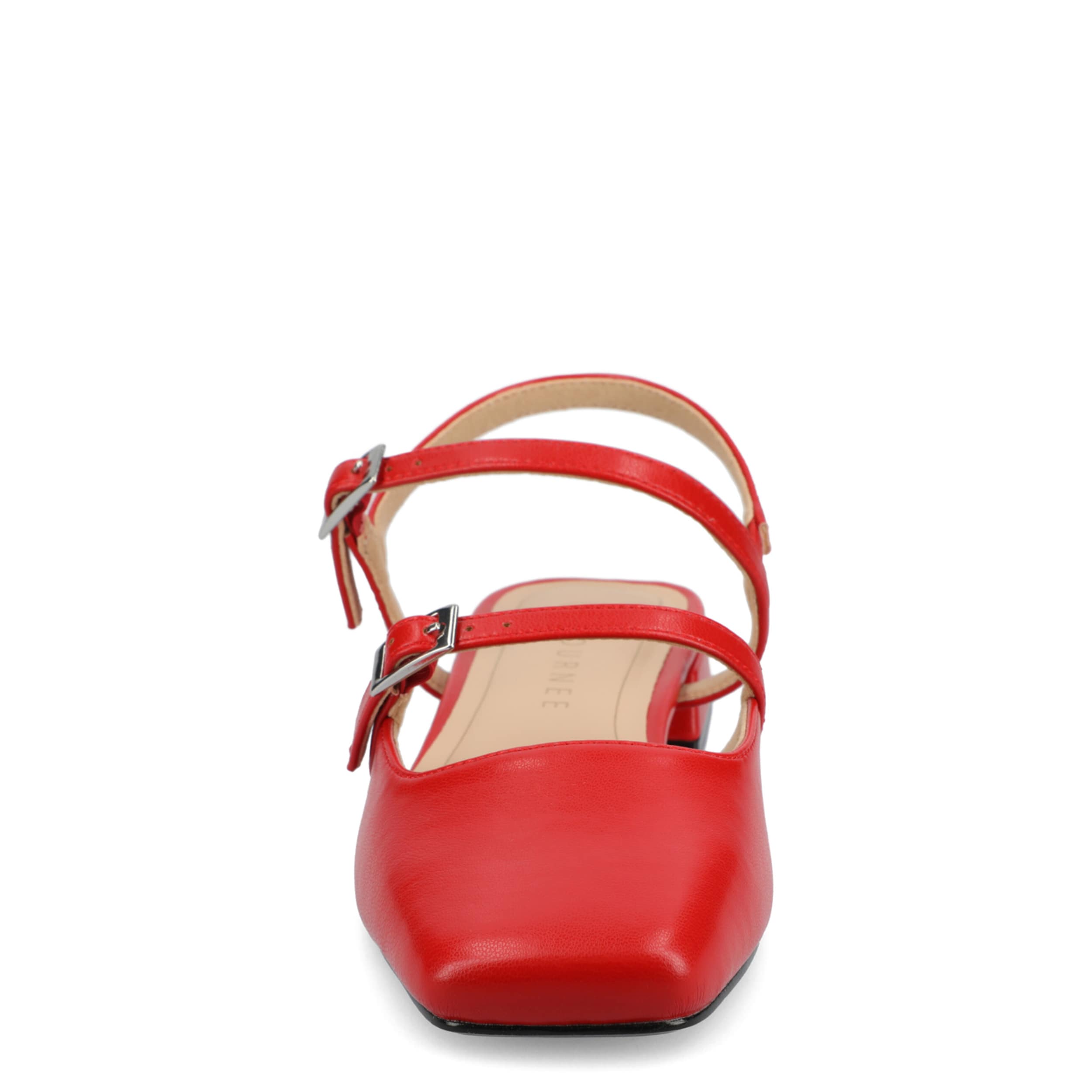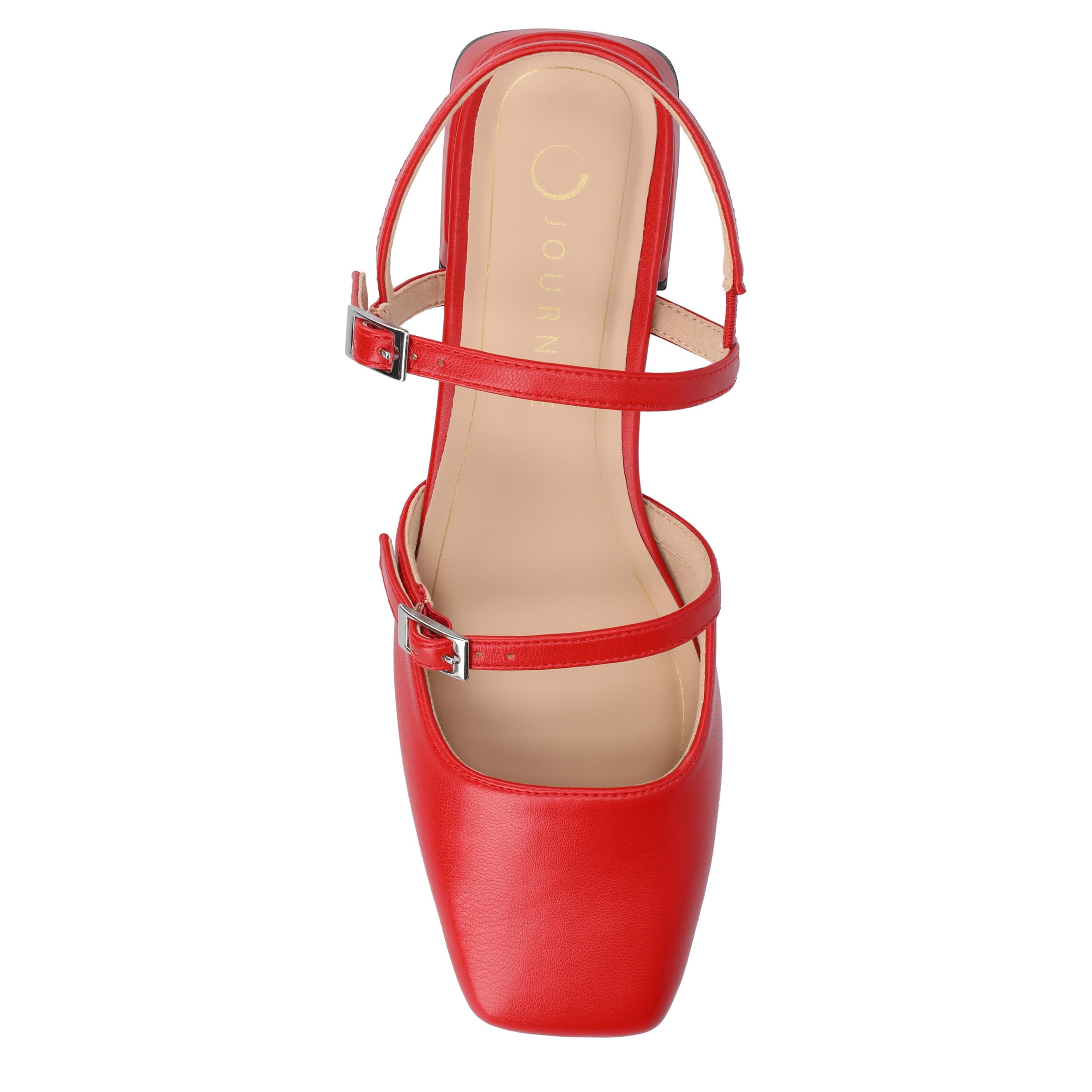 Seamless style and comfort with the Journee Collection Gretchenn pump. Featuring a faux leather upper with an elastic slingback strap, this Mary Jane flat is fashionably different for work or the weekend. The insole offers all-day comfort, while the heel gives a subtle lift.
