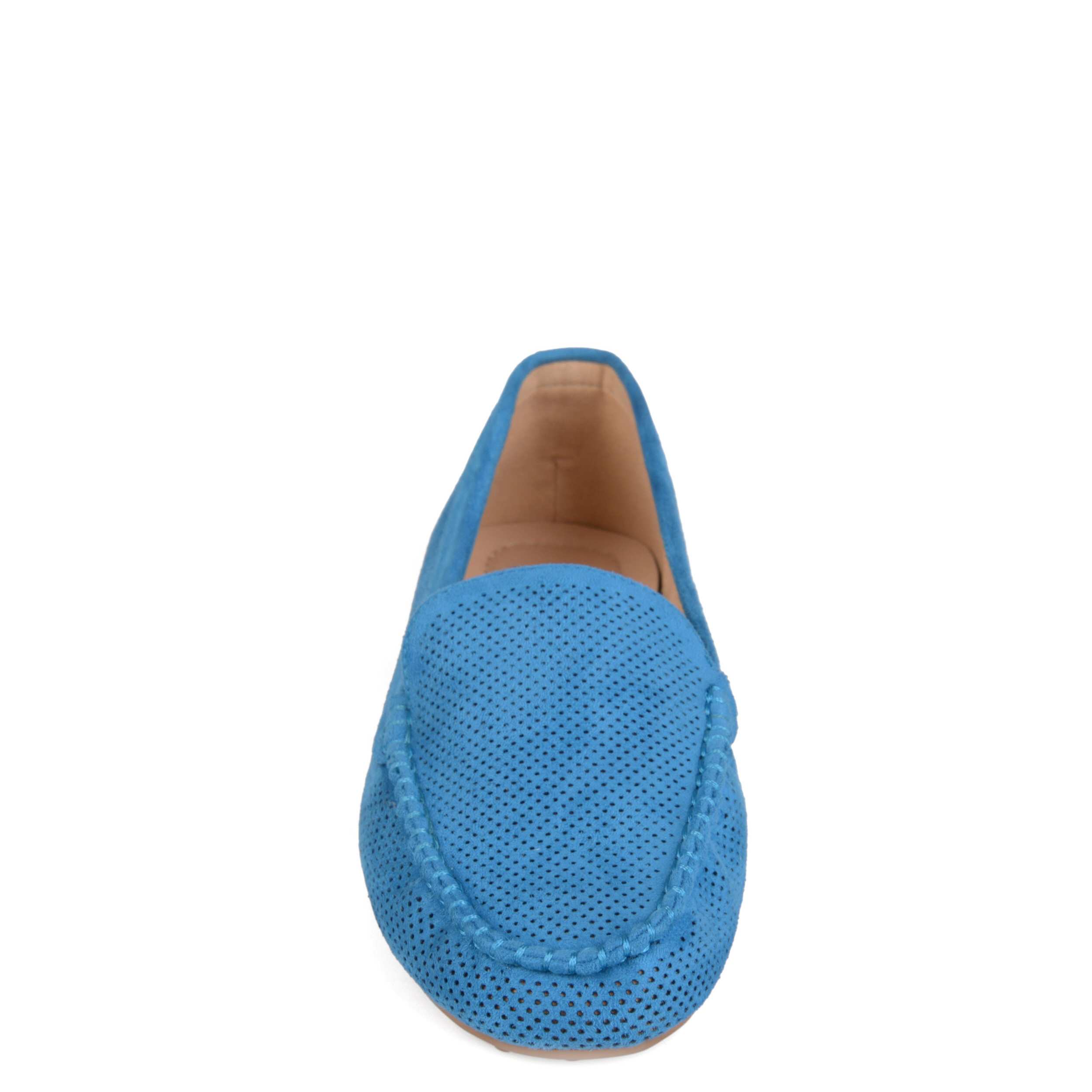 Update your casual footwear with the Halsey women's loafers from the Journee Collection. Slip on these driving-style moccasins which feature a laser cut pinhole detailing that enables airflow with a rubber traction sole for skid-free walking.