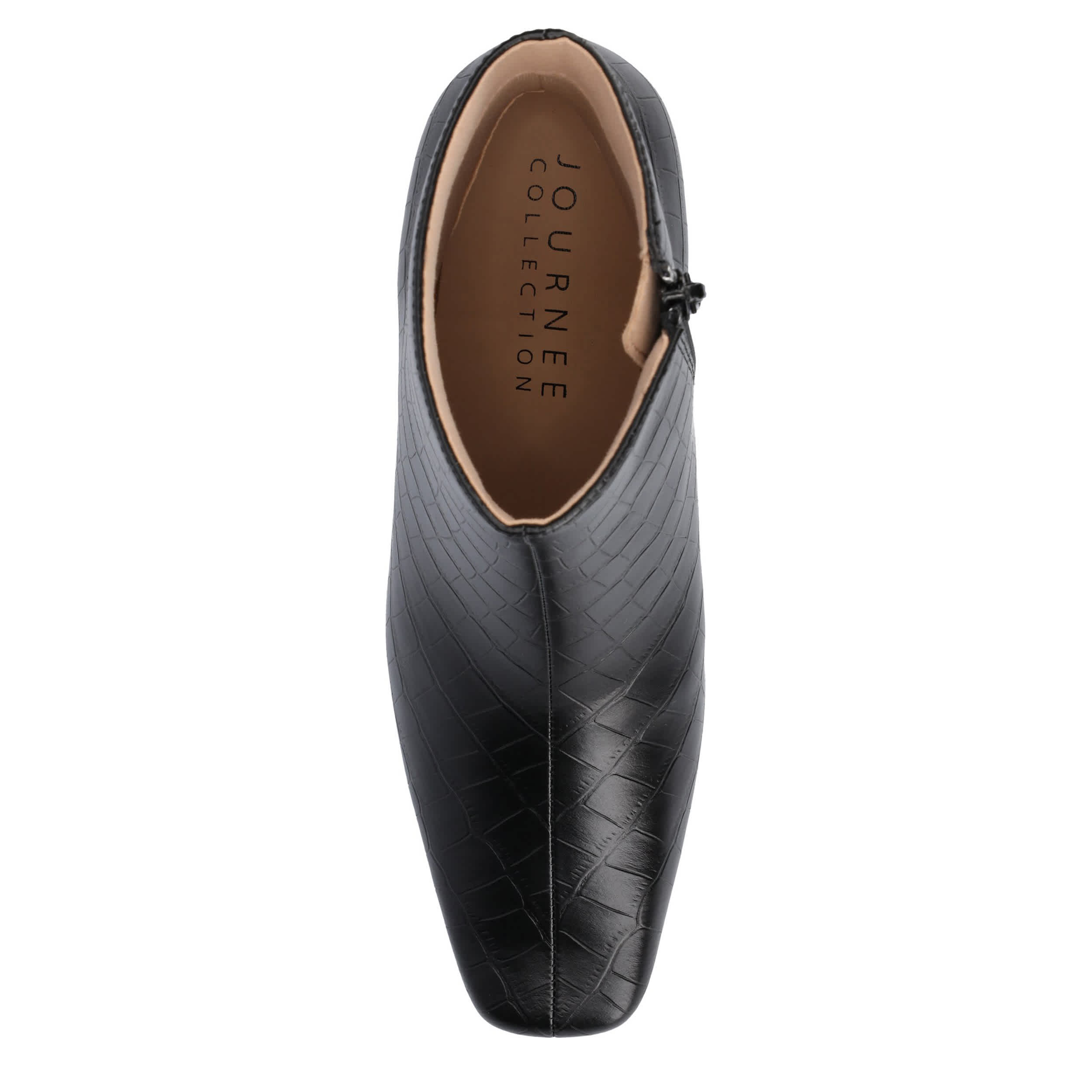 Out cool onlookers in the Haylinn Wide women's ankle boot from Journee Collection. With a vegan leather upper featuring a stylish square toe and croc print, this bootie is definitely a fashion hightlight. The Memory Foam footbed cushions while the stable heel provides more than enough lift.