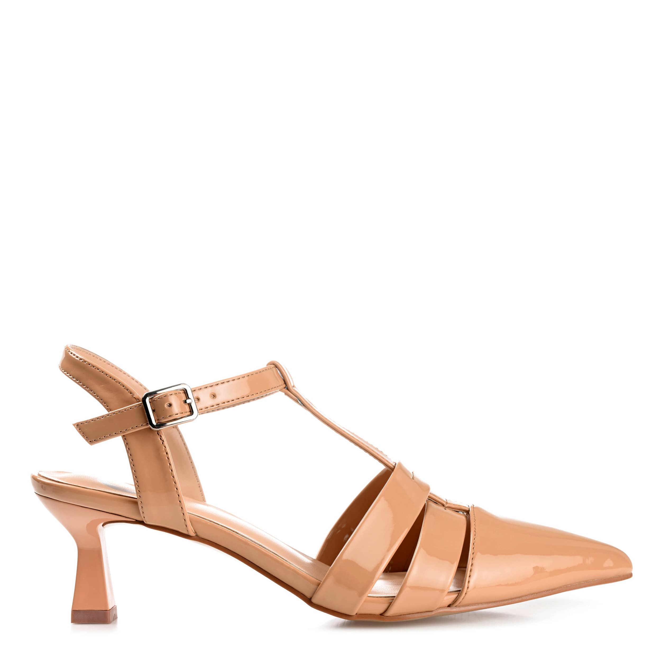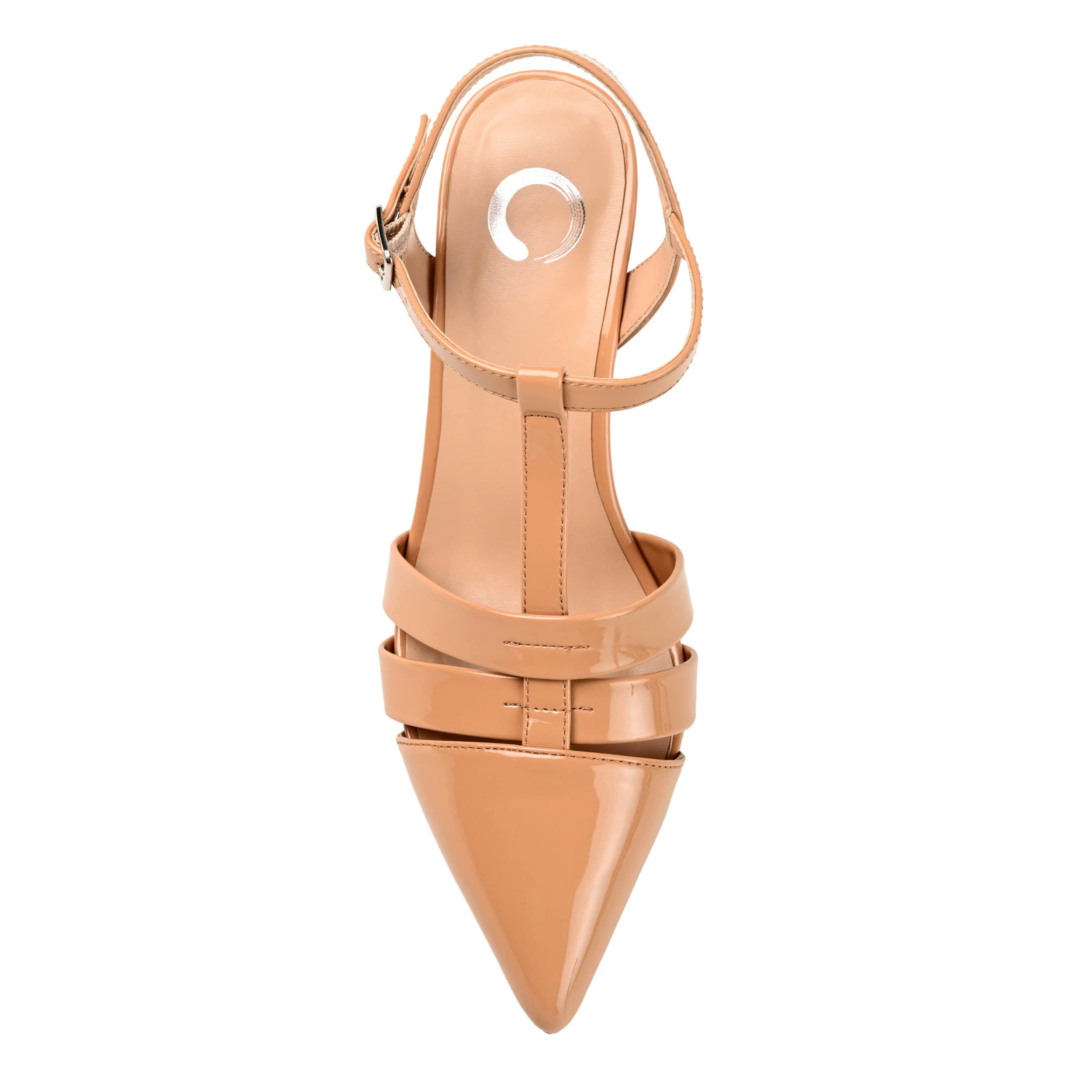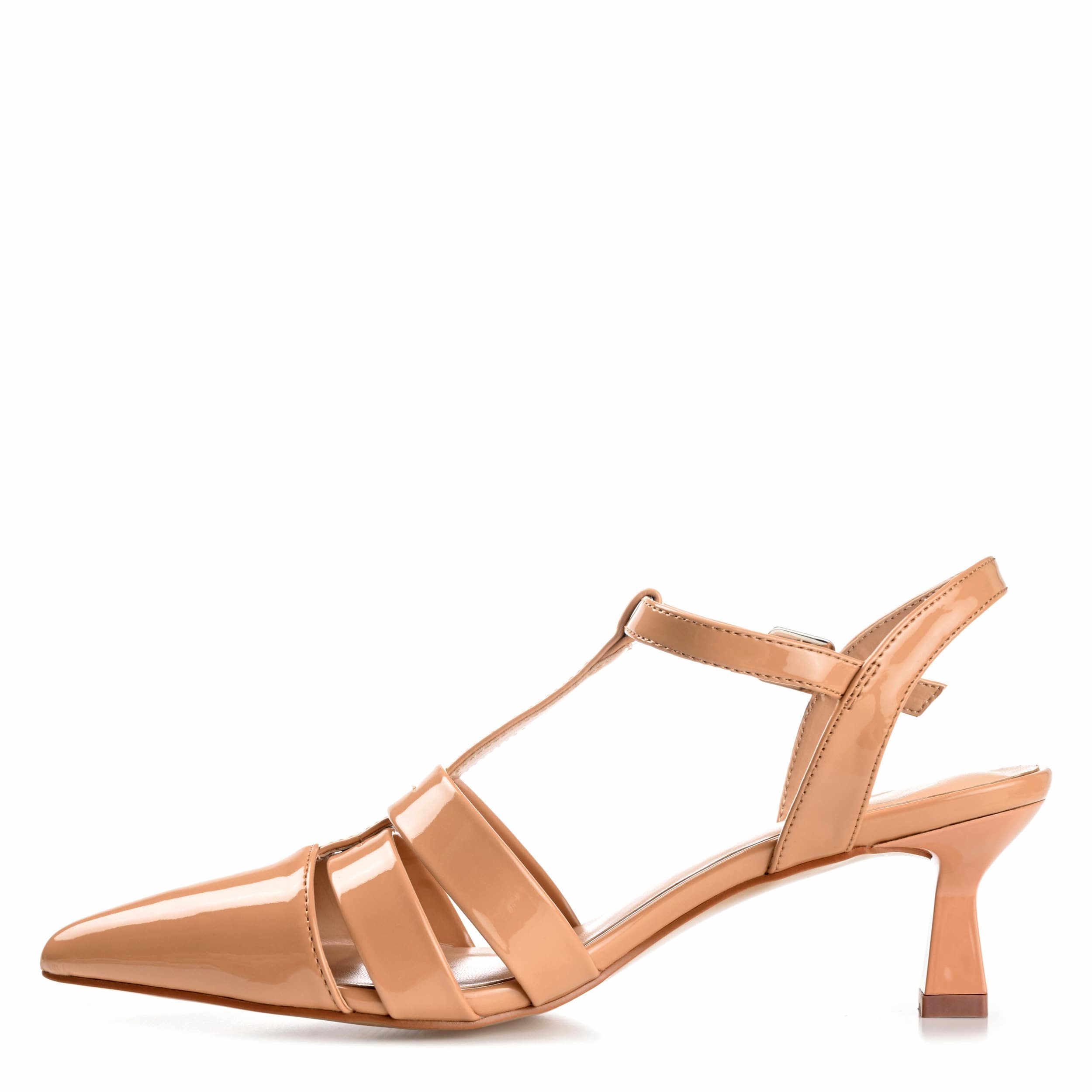 Dress to impress with the Jazlynn women's pump from Journee Collection. With a vegan patent leather upper featuring caged details and a woven t-strap design with an adjustable buckle for a perfect fit, this pointy-toe pump lends a fashionable touch to all your glamorous holiday looks. A padded footbed cushions your feet, while the 2" kitten heel offers a subtle lift.