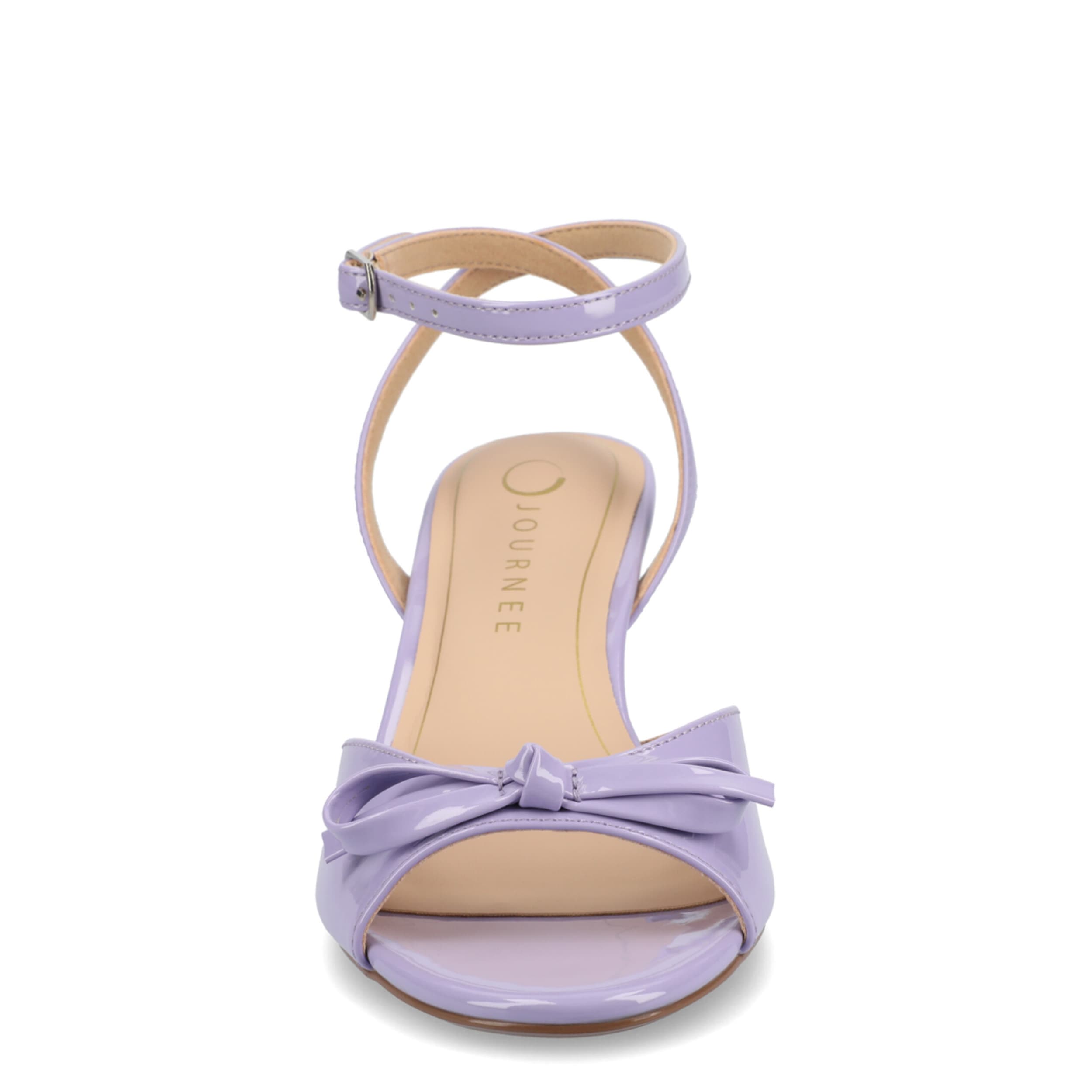 Charmingly feminine, the Jennifer women's sandal from Journee Collection is a must for your spring collection. With a patent leather upper featuring a dainty toe band and bow accent, this ankle strap sandal pairs perfectly with a cute dress or skirt. The padded footbed enhances the comfort, while the 2" kitten heel adds a slight lift.
