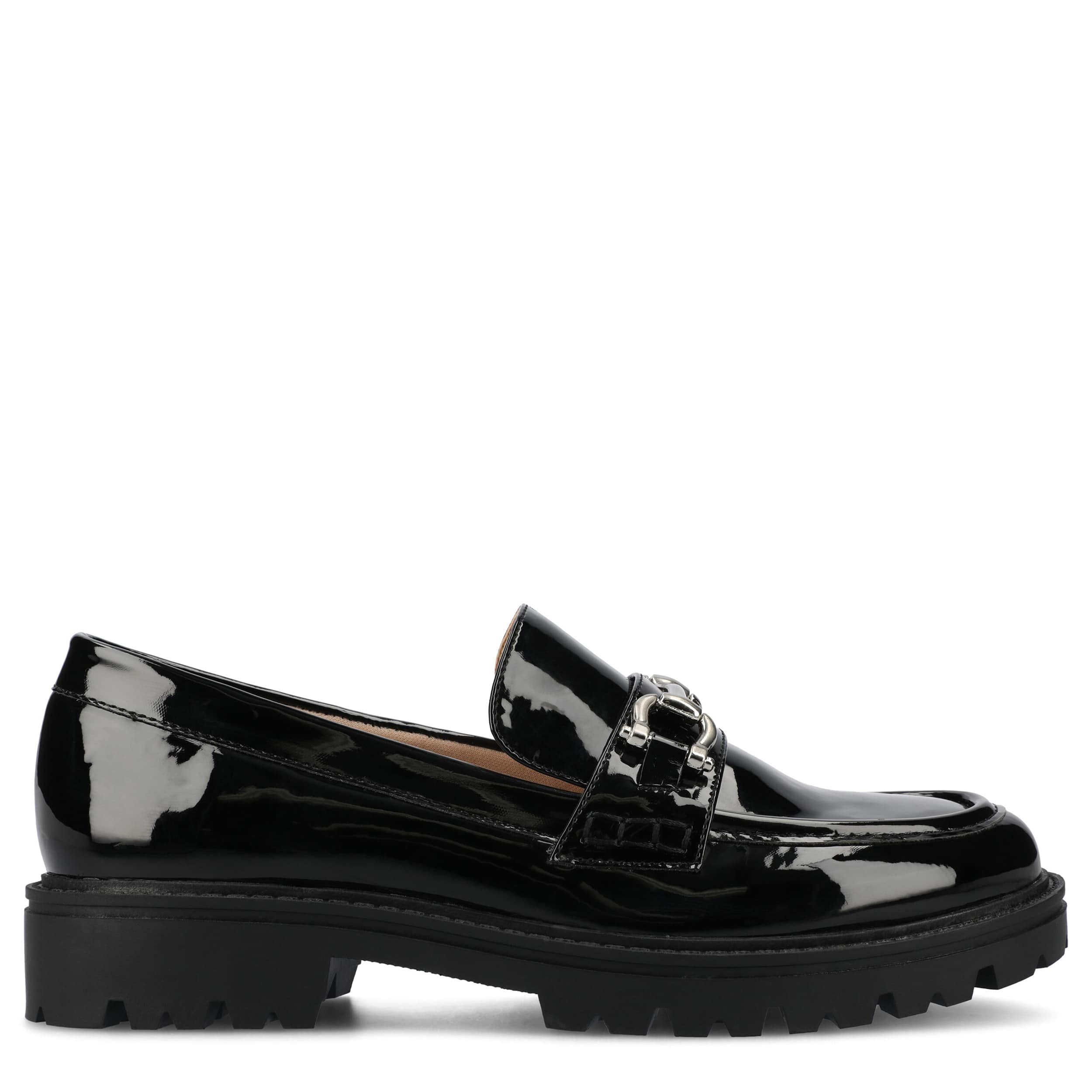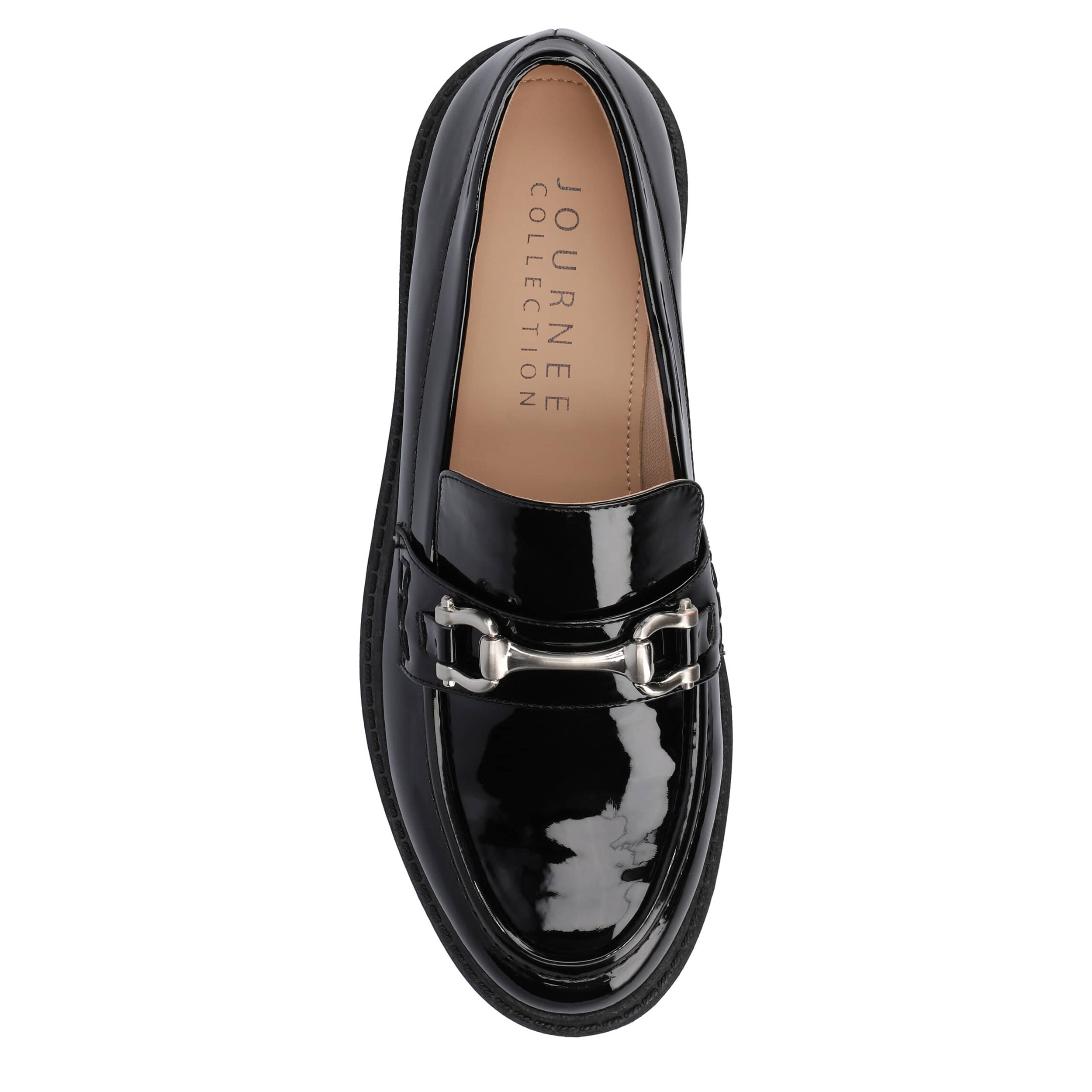 Keep up the fun past work hours in the Jessamey women's loafer from Journee Collection. Featuring a glossy patent leather upper with horsebit hardware for extra style, these loafers are versatile for amazing fall pairings. The Tru Comfort Foamâ„¢ footbed cushions while the chunky traction outsole adds stable lift.