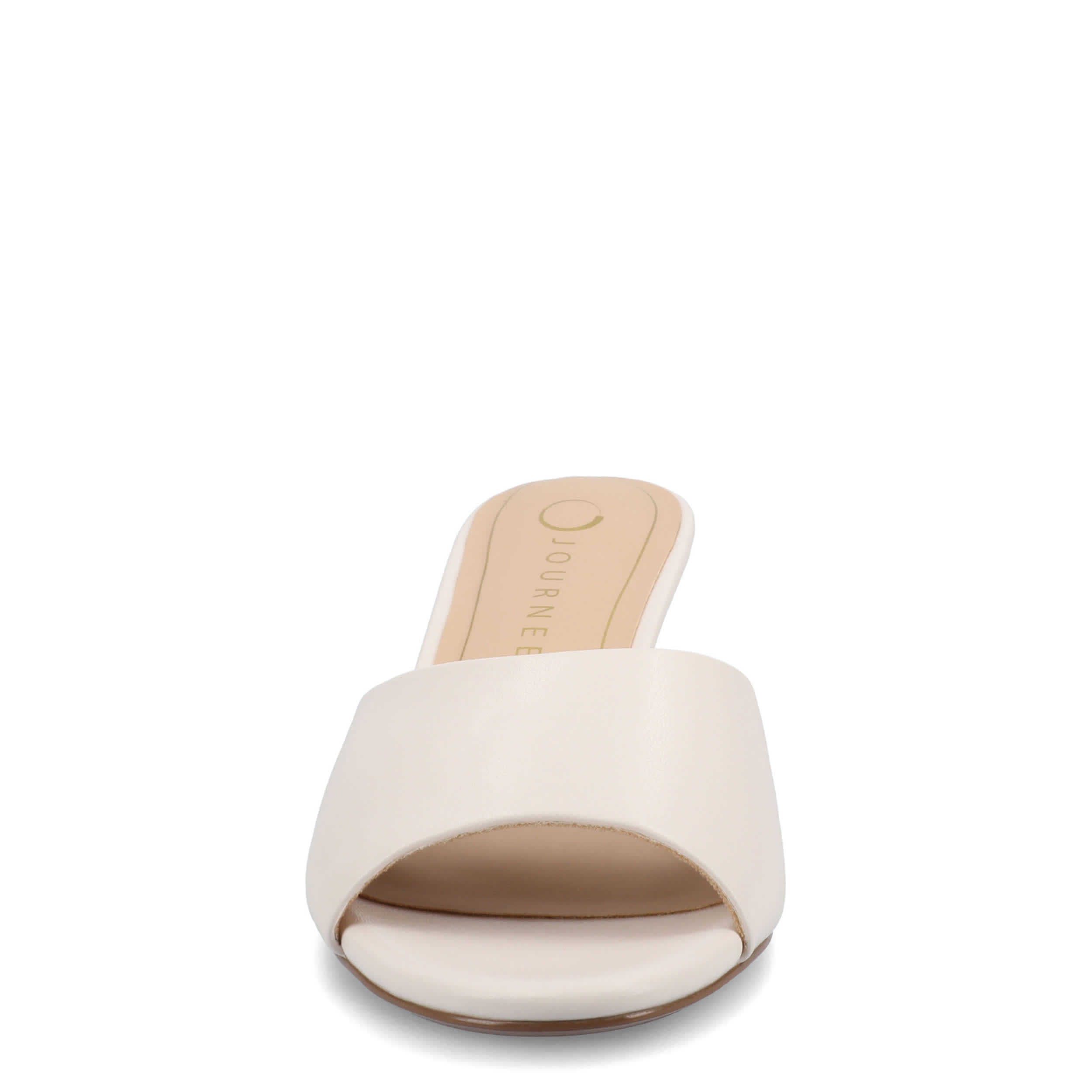 Look effortlessly elegant in the Jeylah sandal from Journee Collection. Featuring a faux leather upper in a minimalist design, this shoe is chic enough to upgrade any look. The insole comforts your steps, while the low heel gives a nice lift.