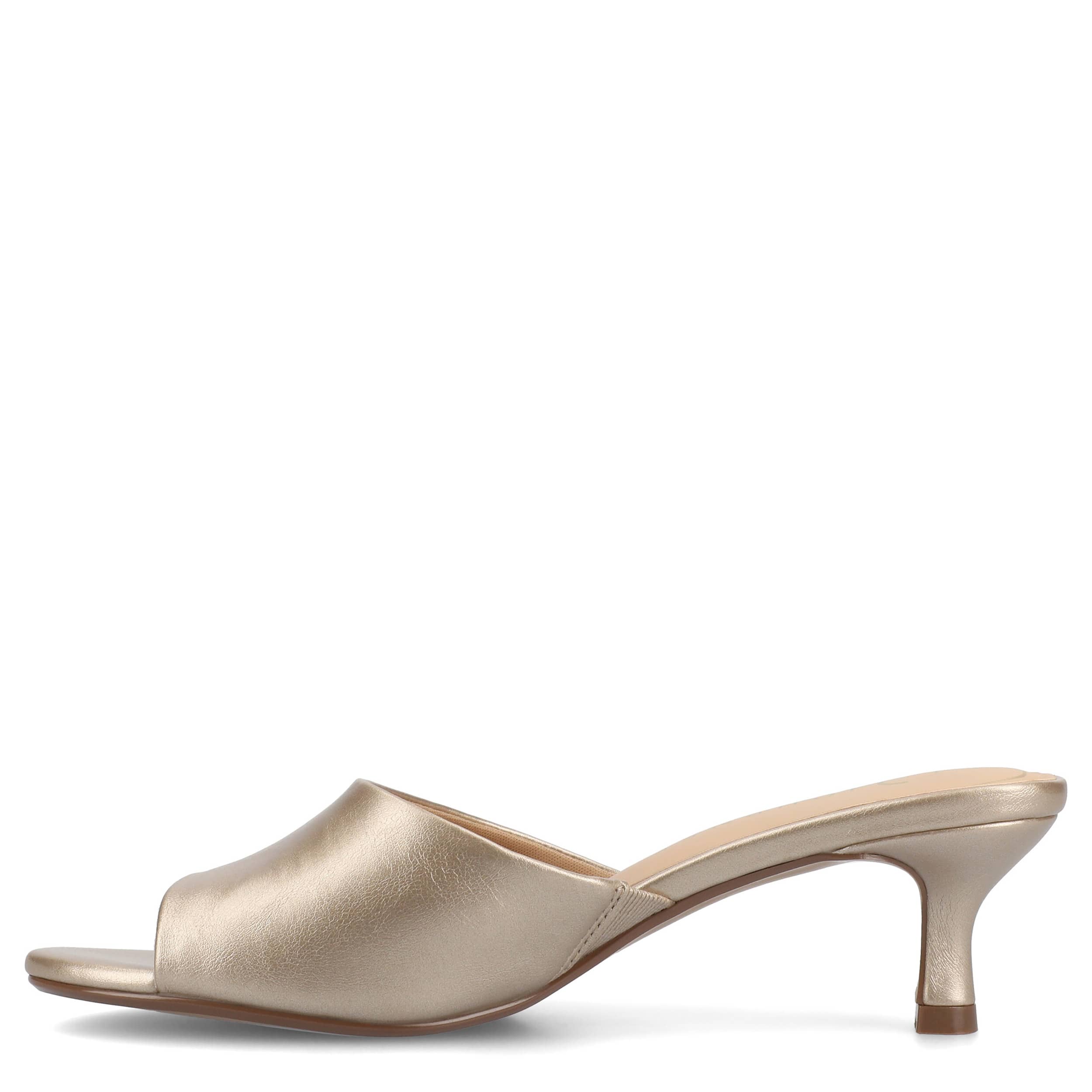 Look effortlessly elegant in the Jeylah sandal from Journee Collection. Featuring a faux leather upper in a minimalist design, this shoe is chic enough to upgrade any look. The insole comforts your steps, while the low heel gives a nice lift.
