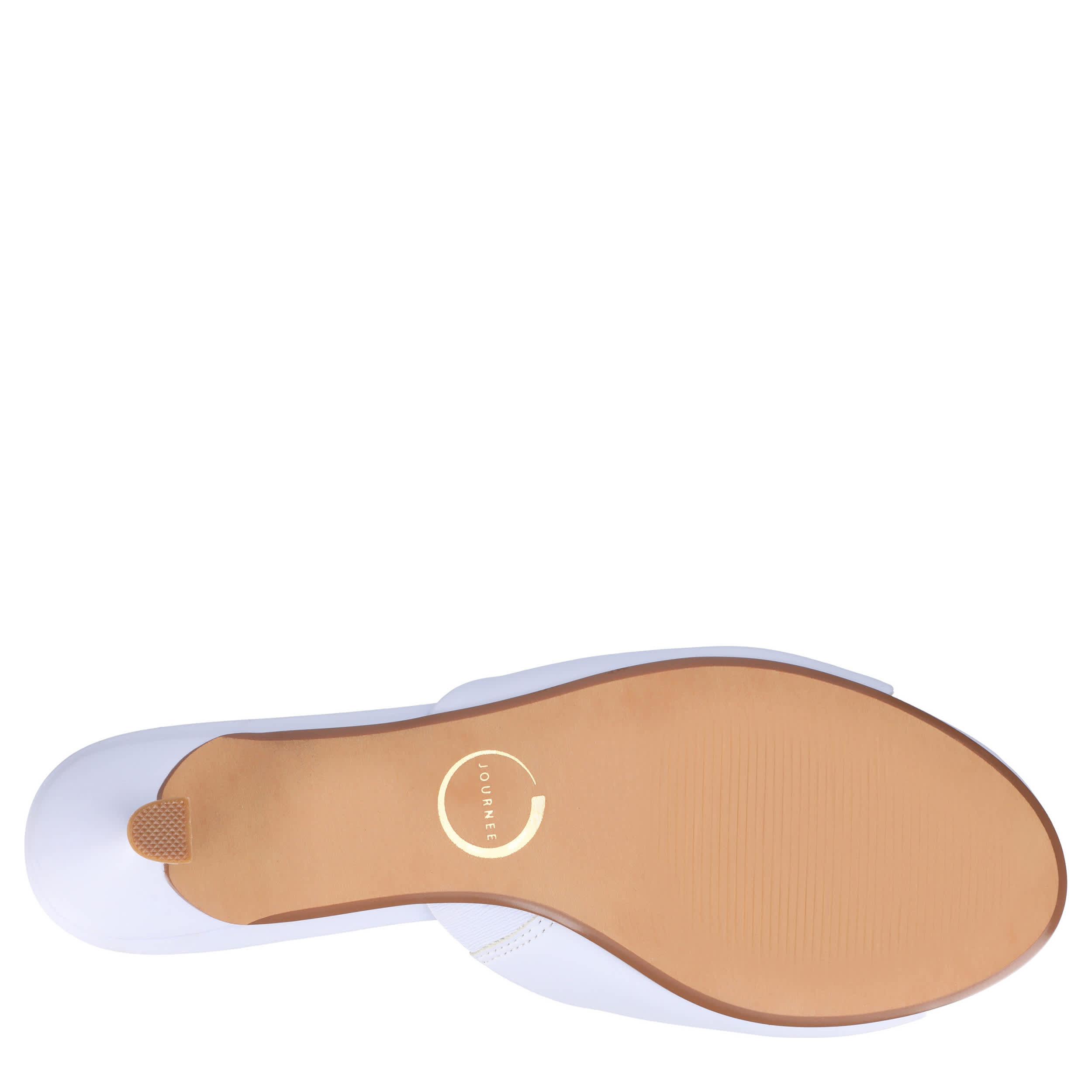 Look effortlessly elegant in the Jeylah sandal from Journee Collection. Featuring a faux leather upper in a minimalist design, this shoe is chic enough to upgrade any look. The insole comforts your steps, while the low heel gives a nice lift.