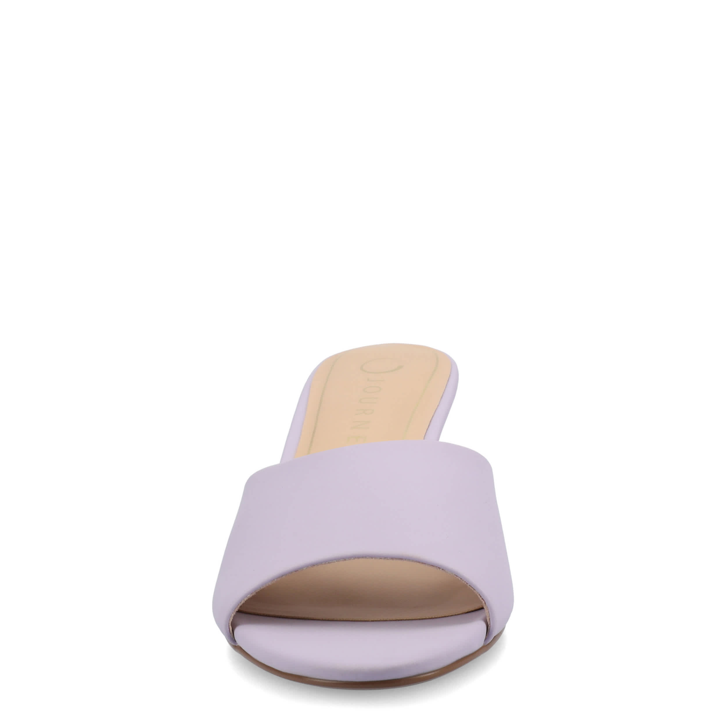Look effortlessly elegant in the Jeylah sandal from Journee Collection. Featuring a faux leather upper in a minimalist design, this shoe is chic enough to upgrade any look. The insole comforts your steps, while the low heel gives a nice lift.