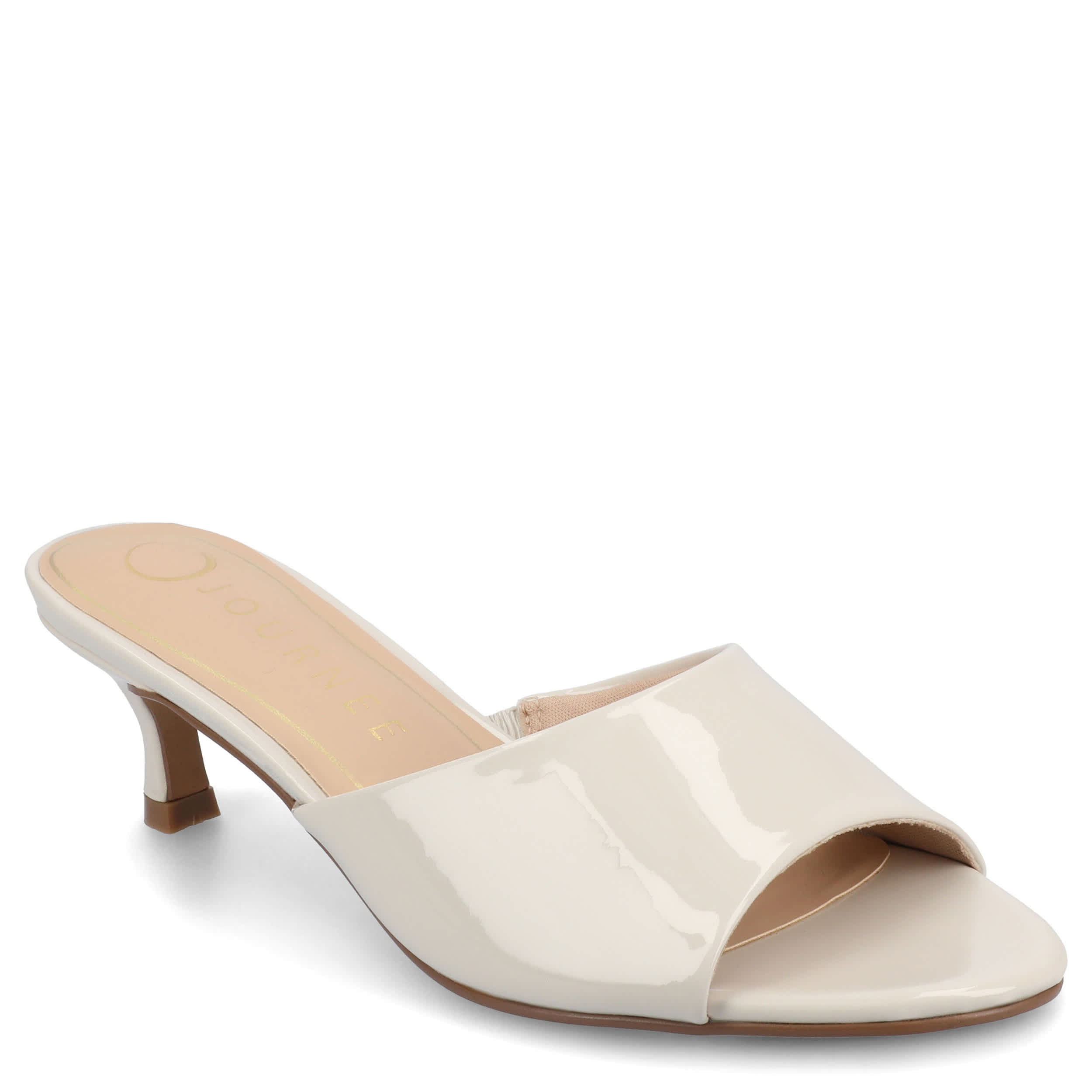 Look effortlessly elegant in the Jeylah sandal from Journee Collection. Featuring a glossy patent leather upper in a minimalist design, this shoe is chic enough to upgrade any look. The insole comforts your steps, while the low heel gives a nice lift.