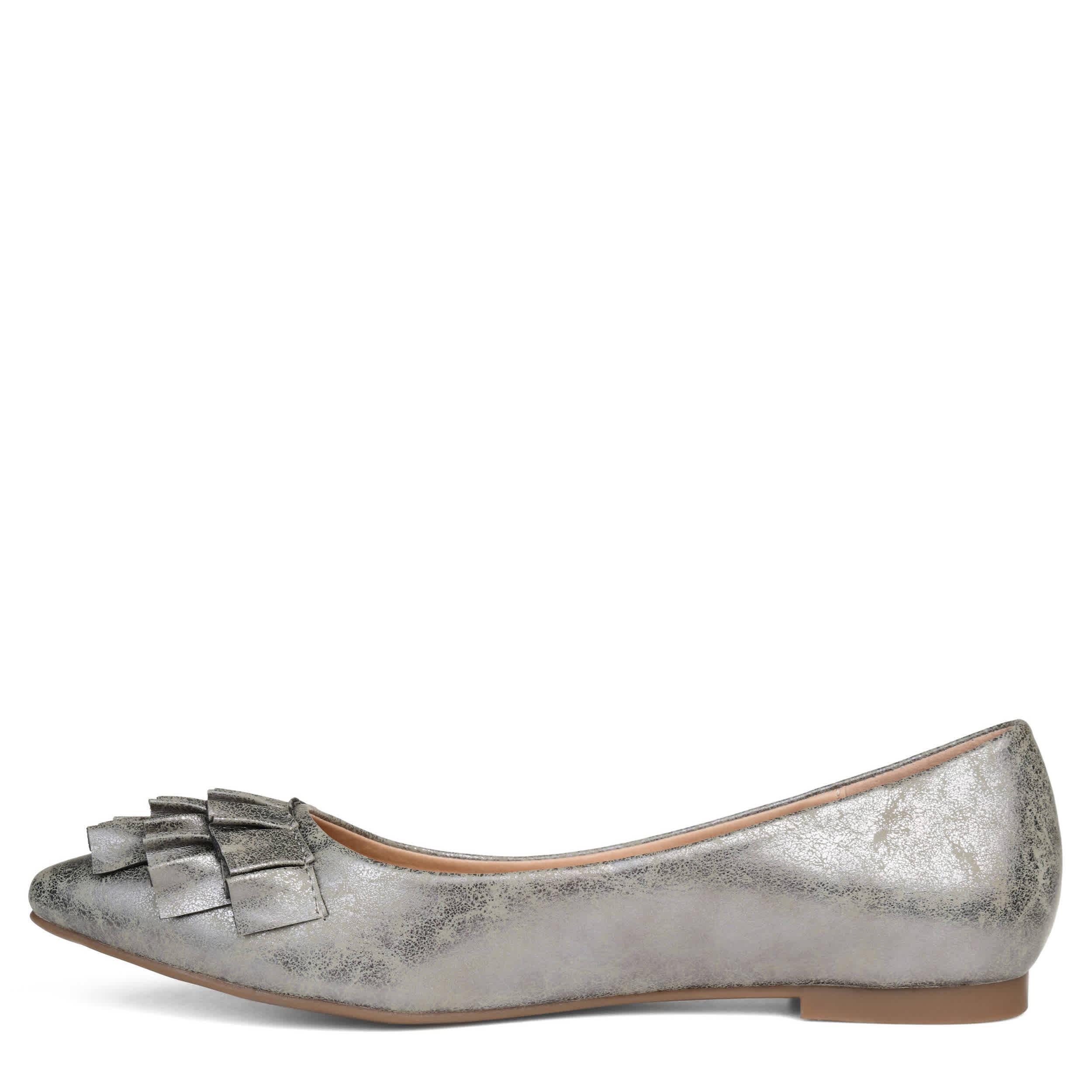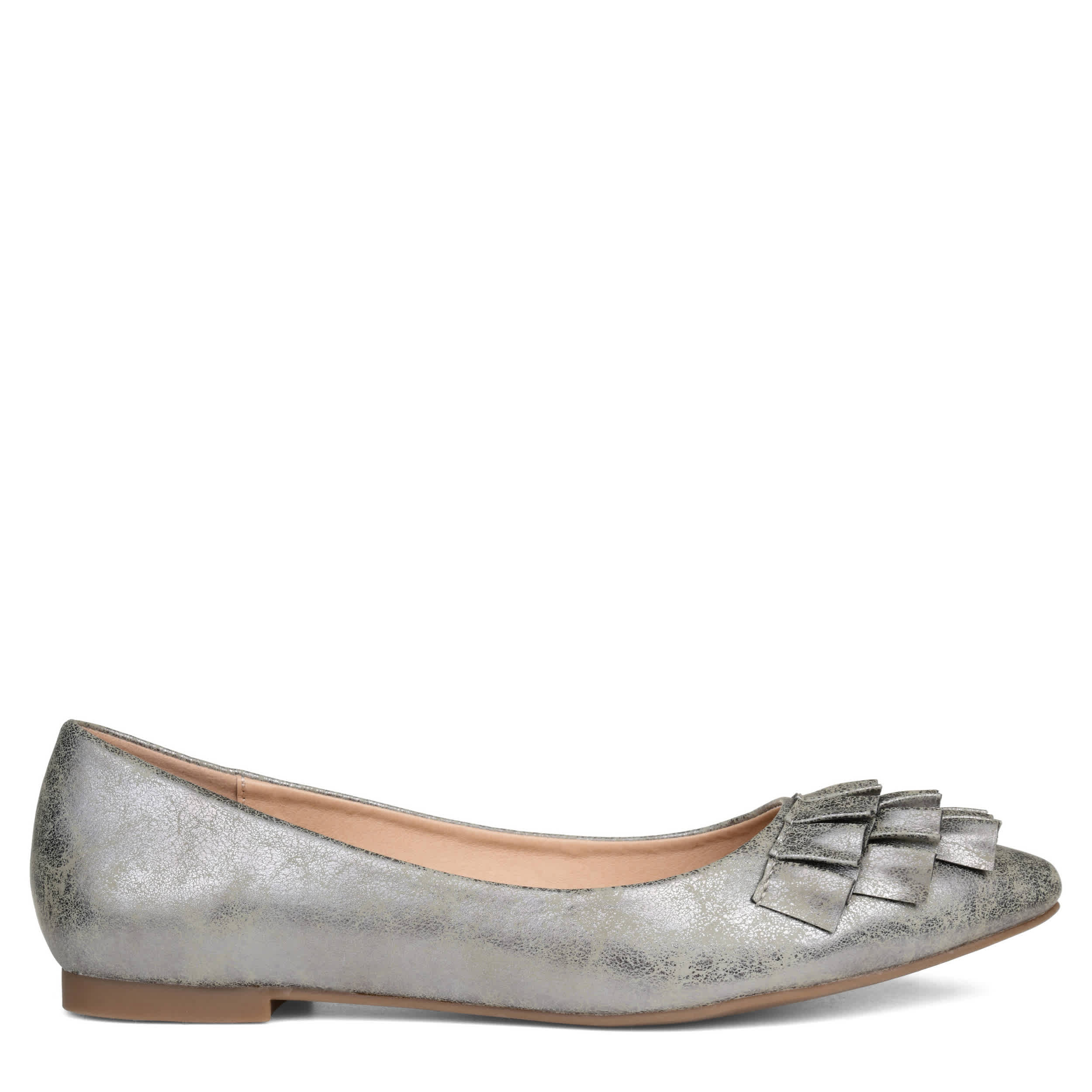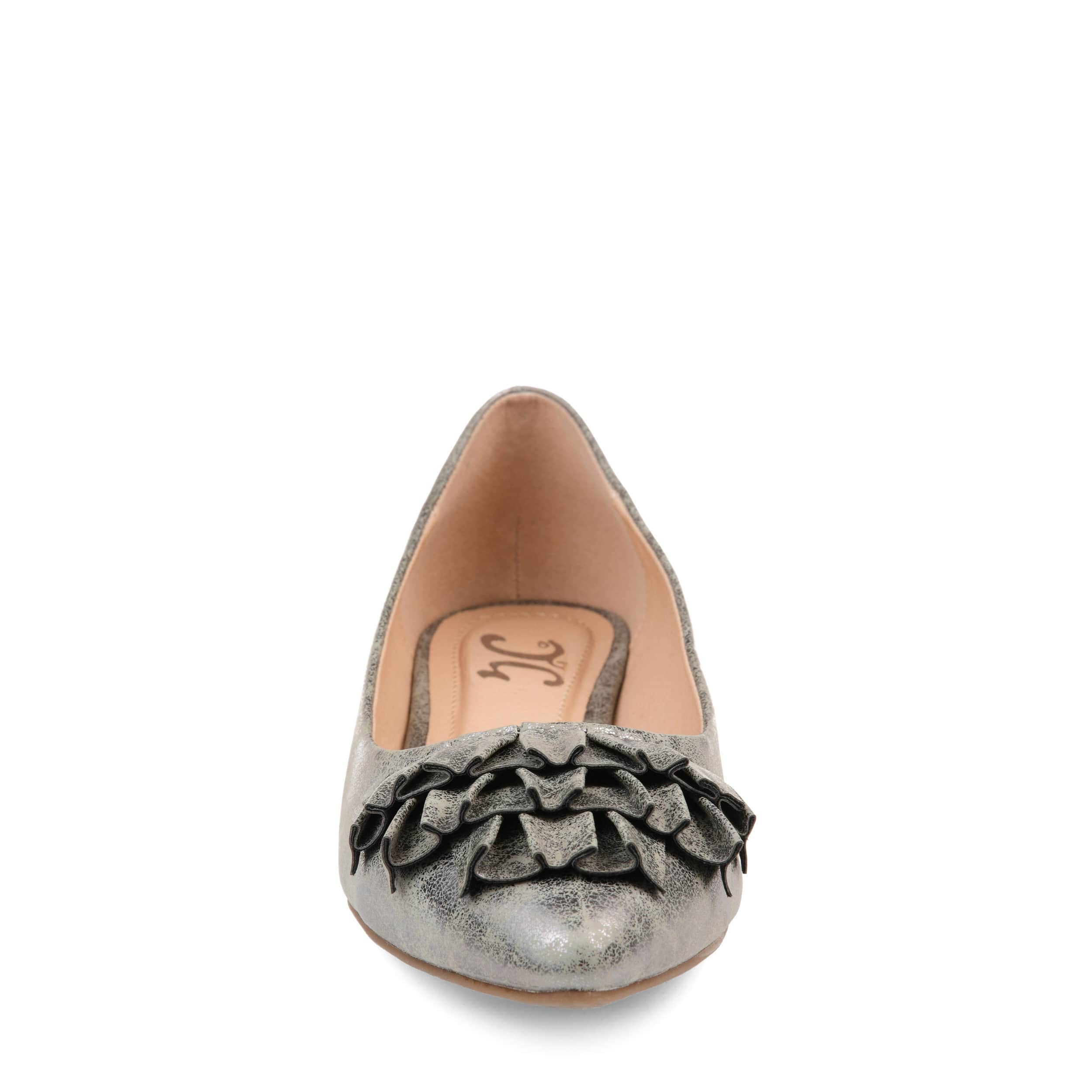 Slip on this Judy flat from Journee Collection and give your look a stylish flair. The synthetic upper has a flaired ruffle detail on the toe for a stylish pop. The lightly cushioned insole helps comfort your foot all day long, making this flat perfect for the office or for dinner.
