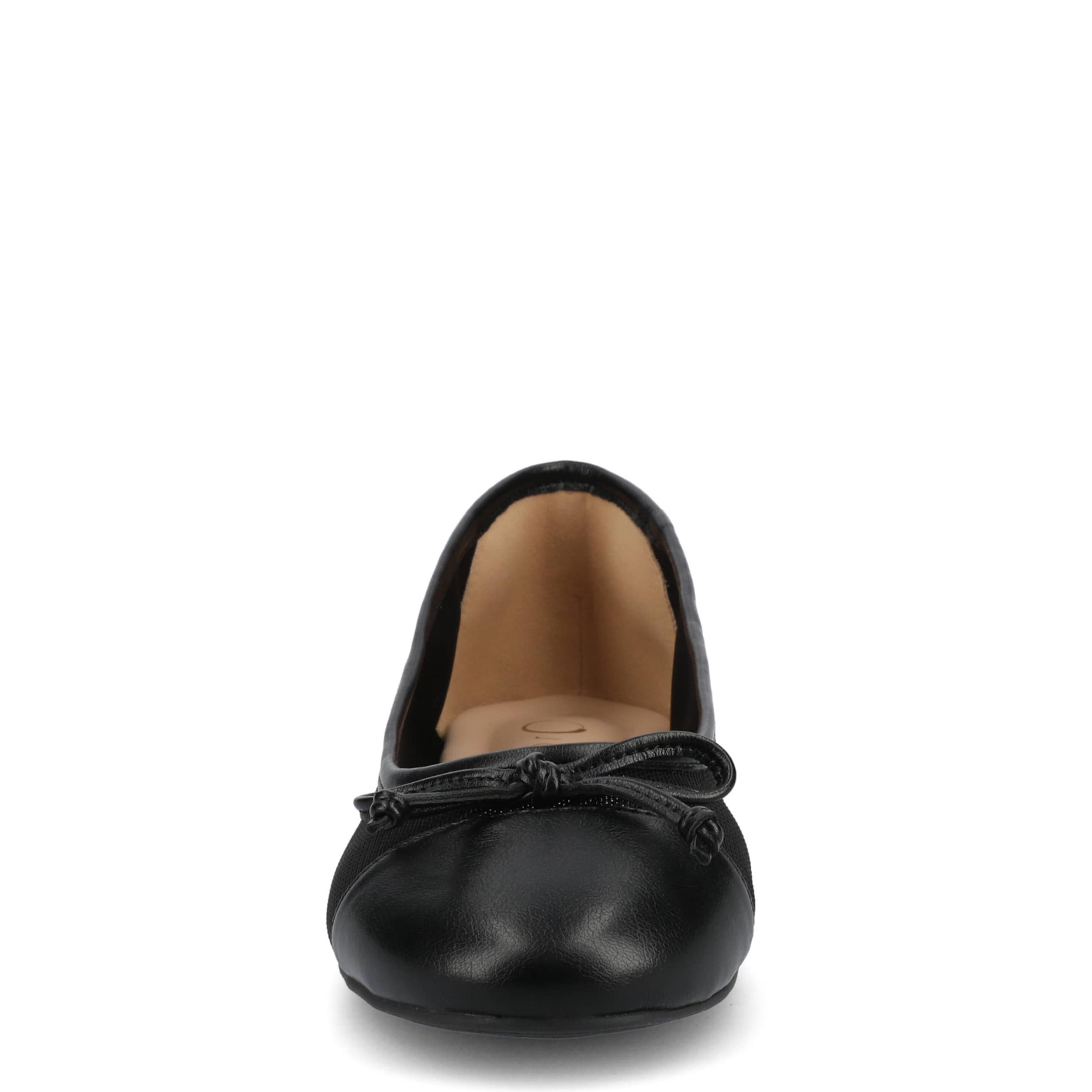 Touch up your look with the Journee Collection Kaiah flat. Featuring a sheer mesh & faux leather upper with a delicate bow detail, this shoe adds an elegant finish to any outfit. The insole offers all-day comfort, while the synthetic outsole ensures lasting wearability.