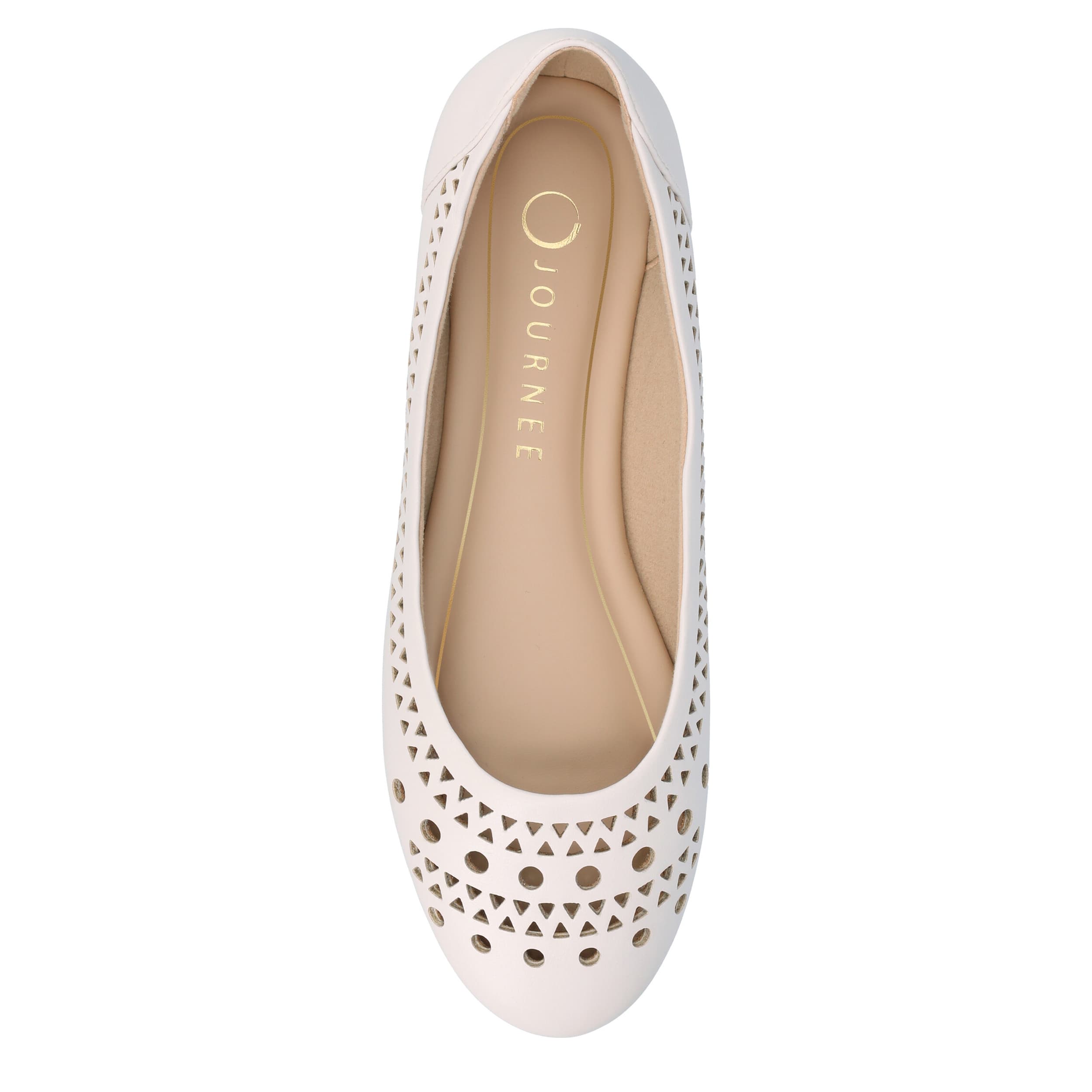 Slip into trendy chopout style with the Kamrah flat from Journee Collection. Featuring a faux leather upper with geometric laser cutouts, this shoe easily polishes up any look. The footbed and synthetic outsole offer all-day support for anything you have planned.