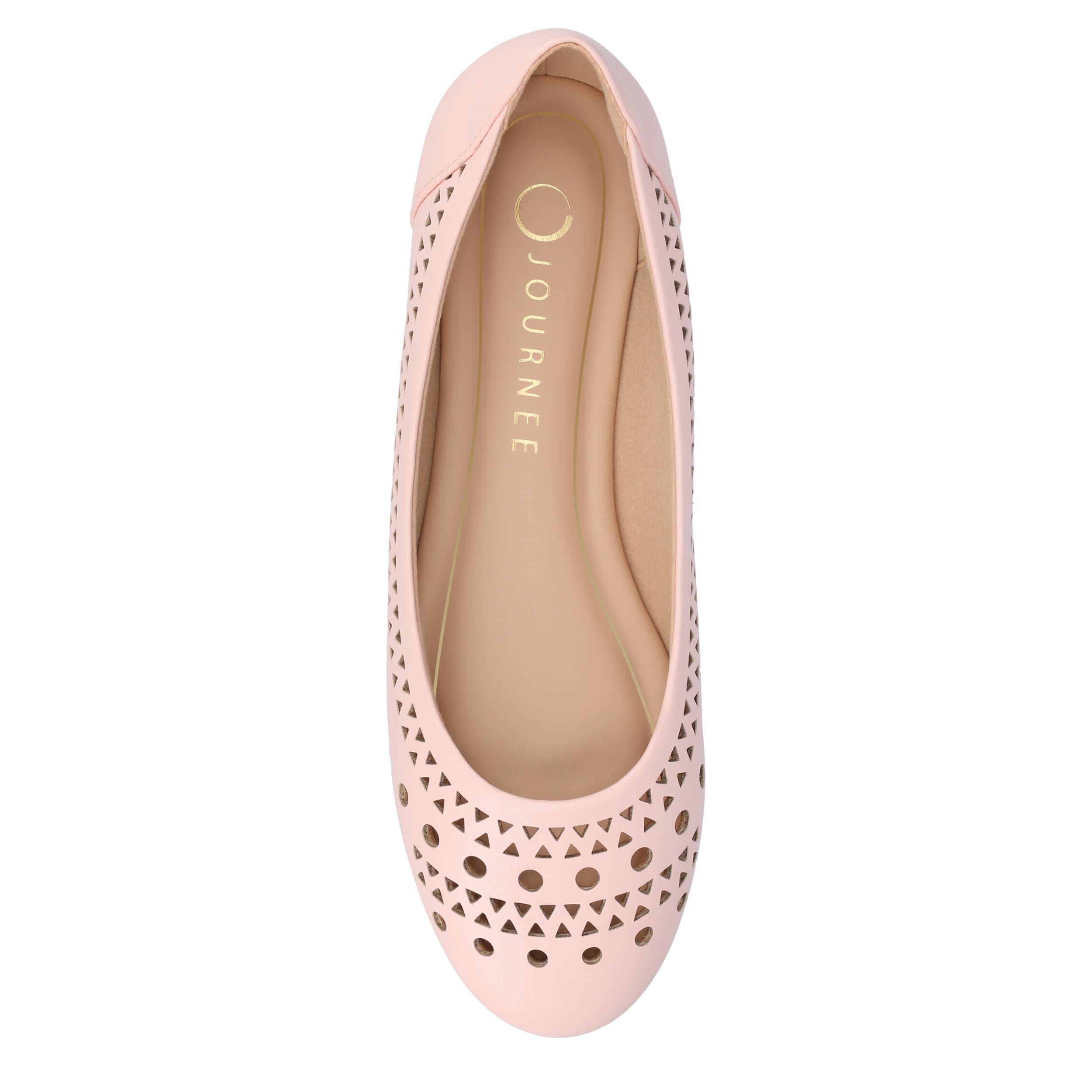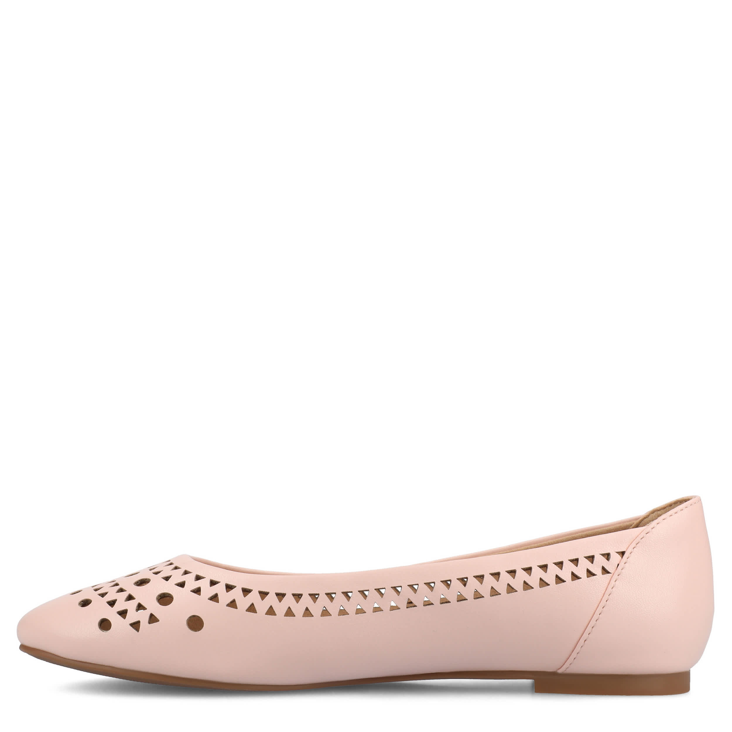 Slip into trendy chopout style with the Kamrah flat from Journee Collection. Featuring a faux leather upper with geometric laser cutouts, this shoe easily polishes up any look. The footbed and synthetic outsole offer all-day support for anything you have planned.