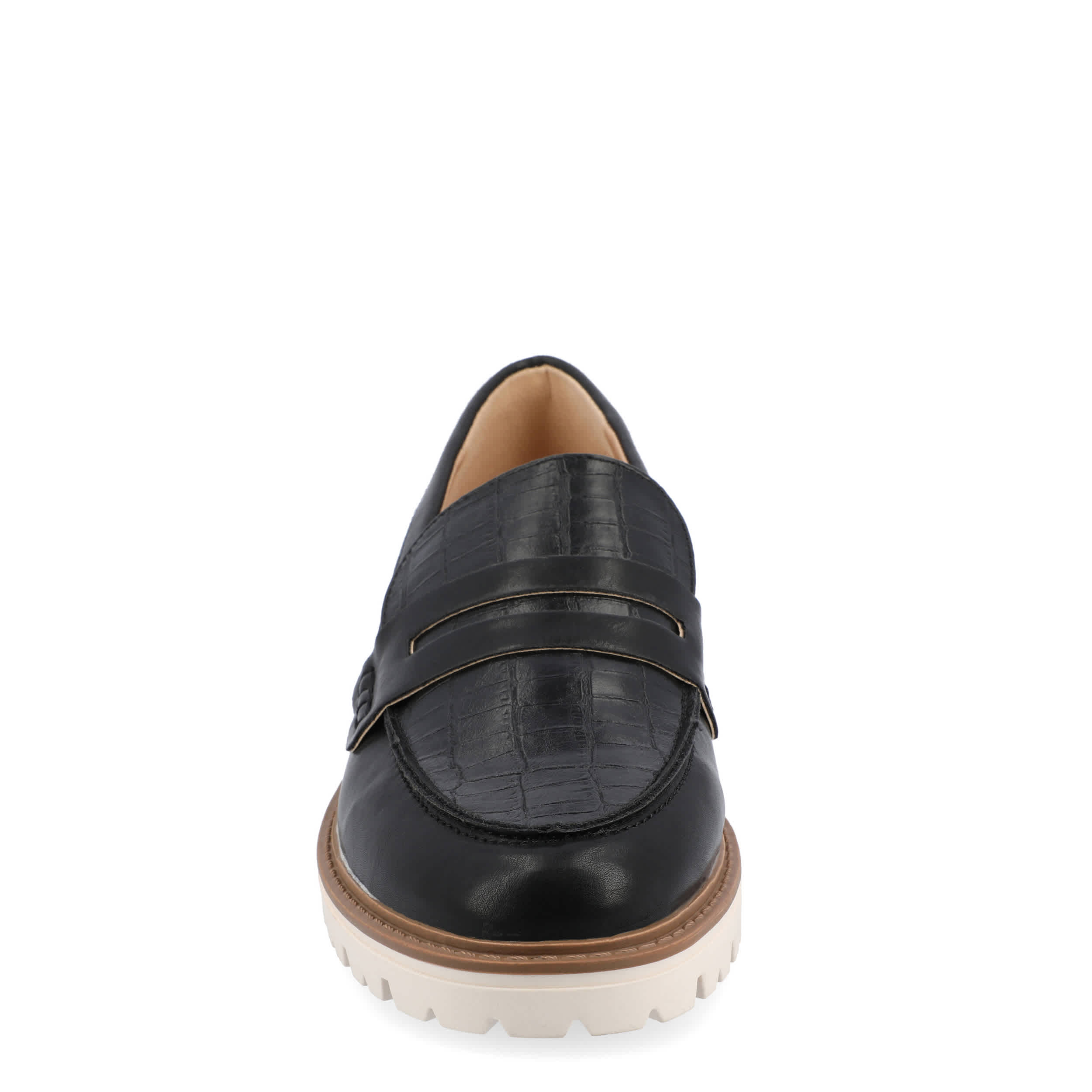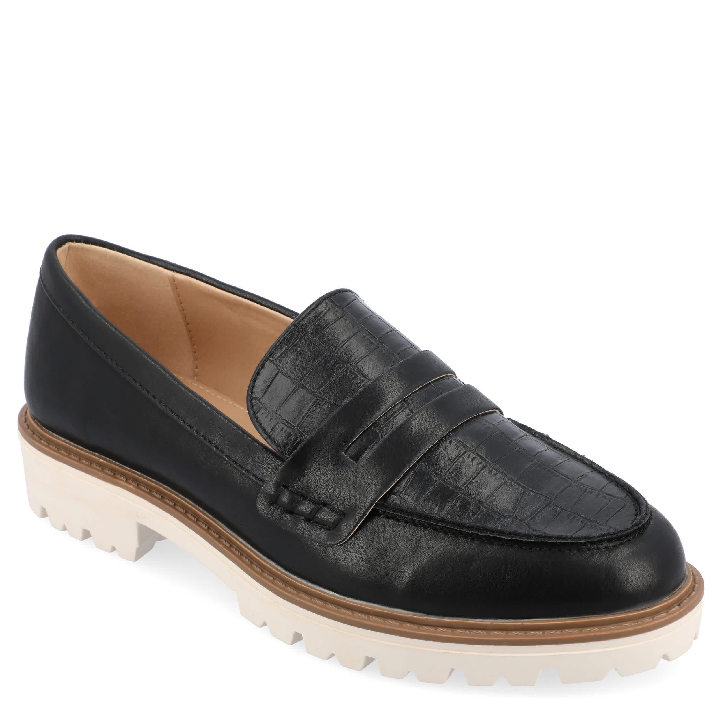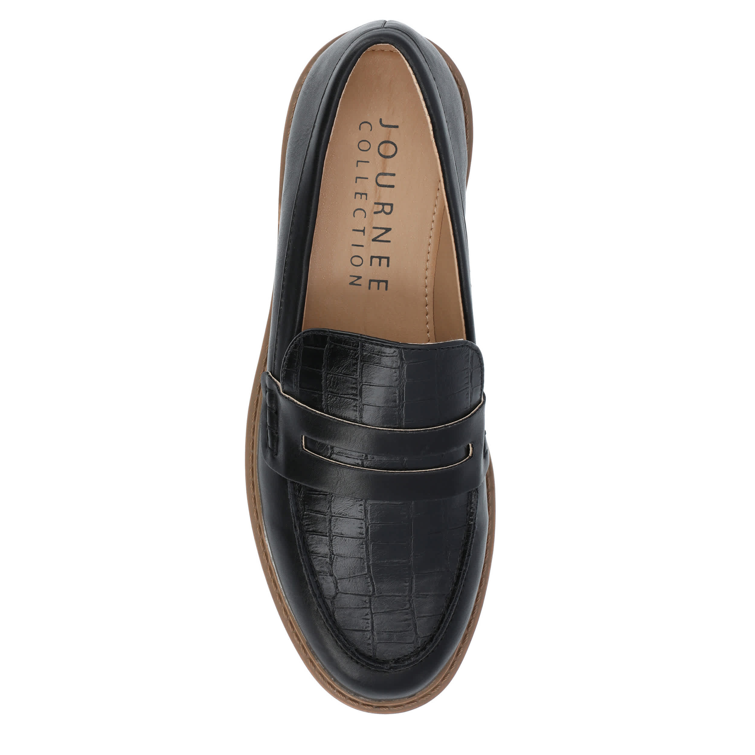 Finish off your ensemble with the Kenly Narrow women's penny loafer from Journee Collection. With a vegan leather upper featuring croc print across the vamp, this loafer brings a little edge to your classy style. The Tru Comfort Foamâ„¢ footbed offers soft cushioning while the chunky traction from the outsole also adds a slight lift.