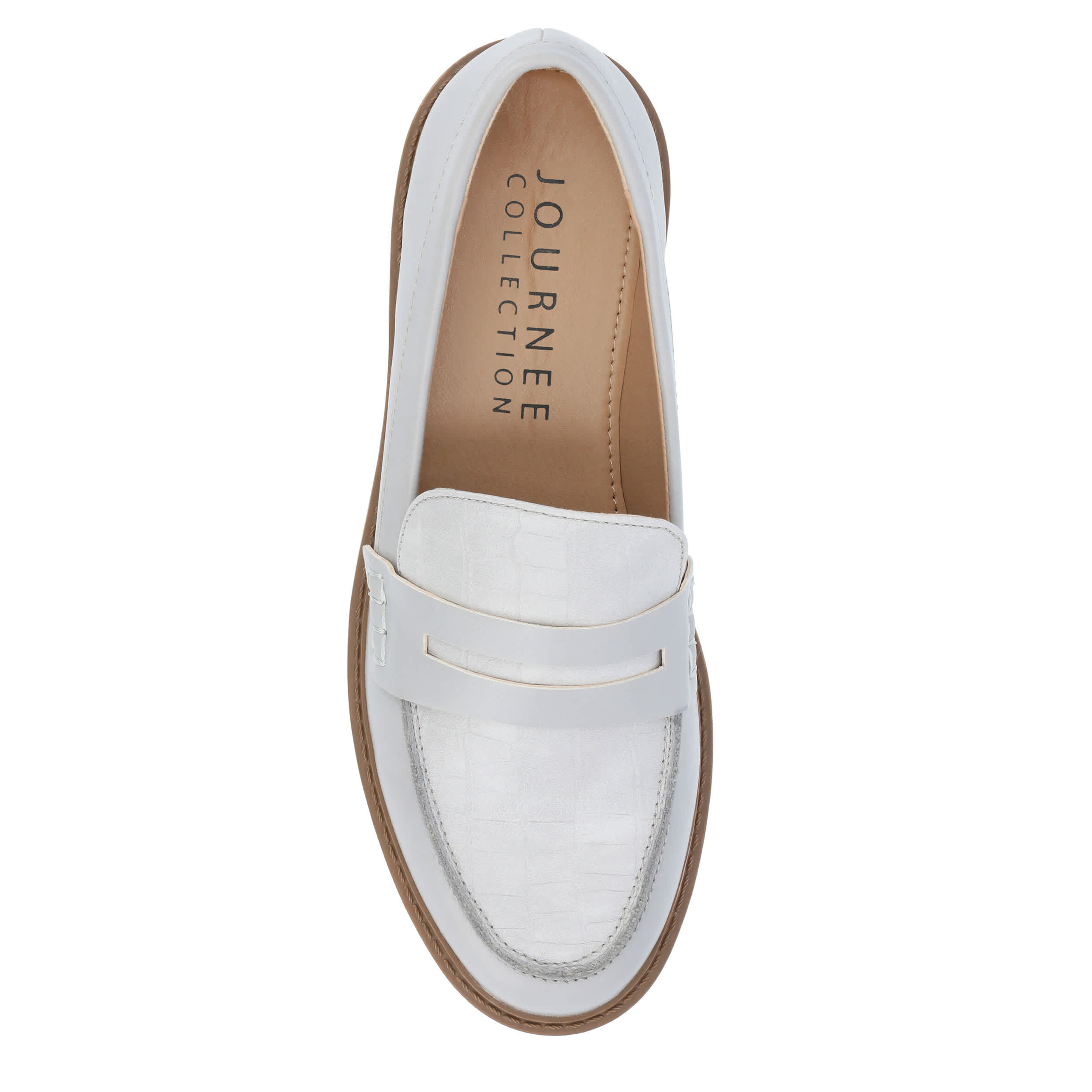 Finish off your ensemble with the Kenly Narrow women's penny loafer from Journee Collection. With a vegan leather upper featuring croc print across the vamp, this loafer brings a little edge to your classy style. The Tru Comfort Foamâ„¢ footbed offers soft cushioning while the chunky traction from the outsole also adds a slight lift.