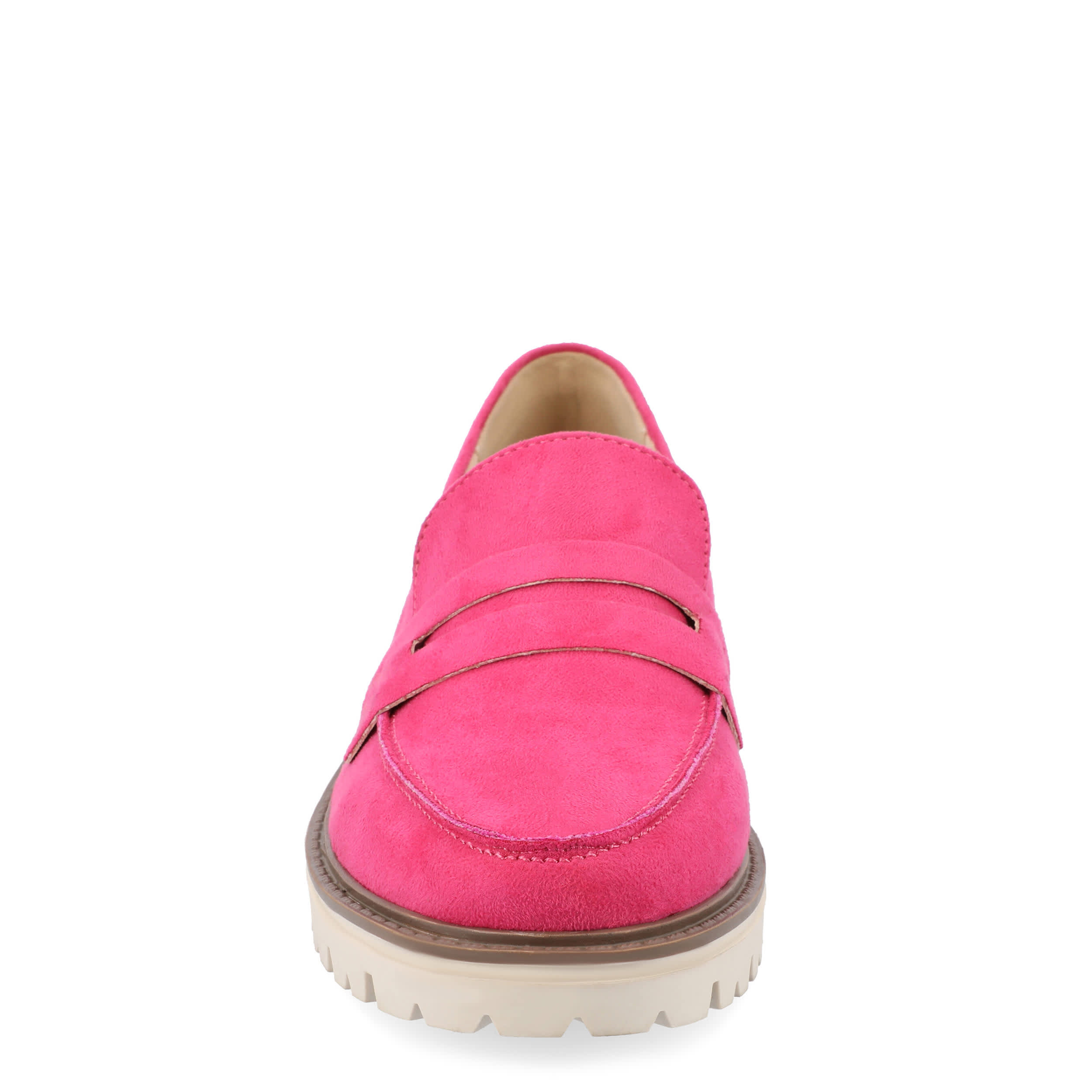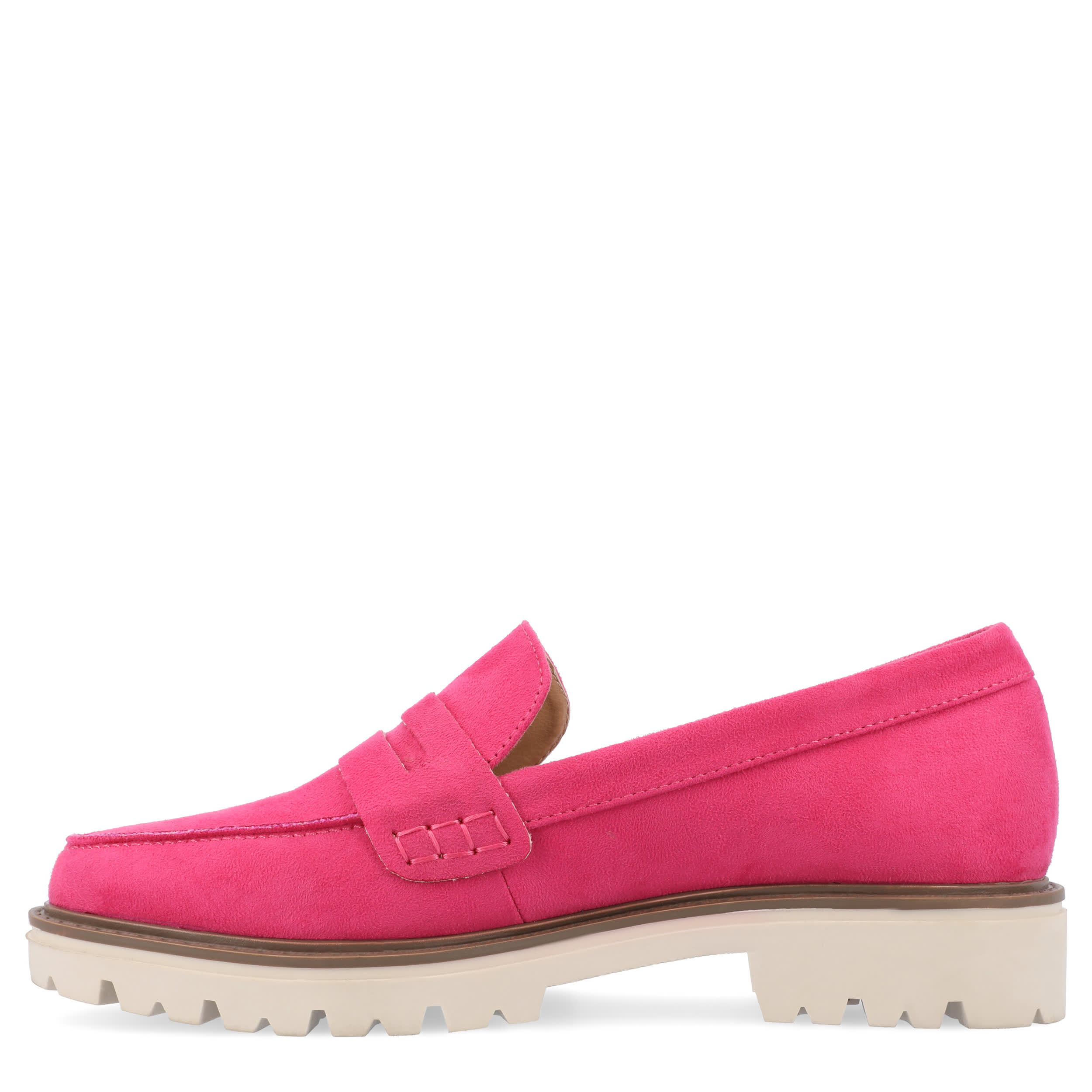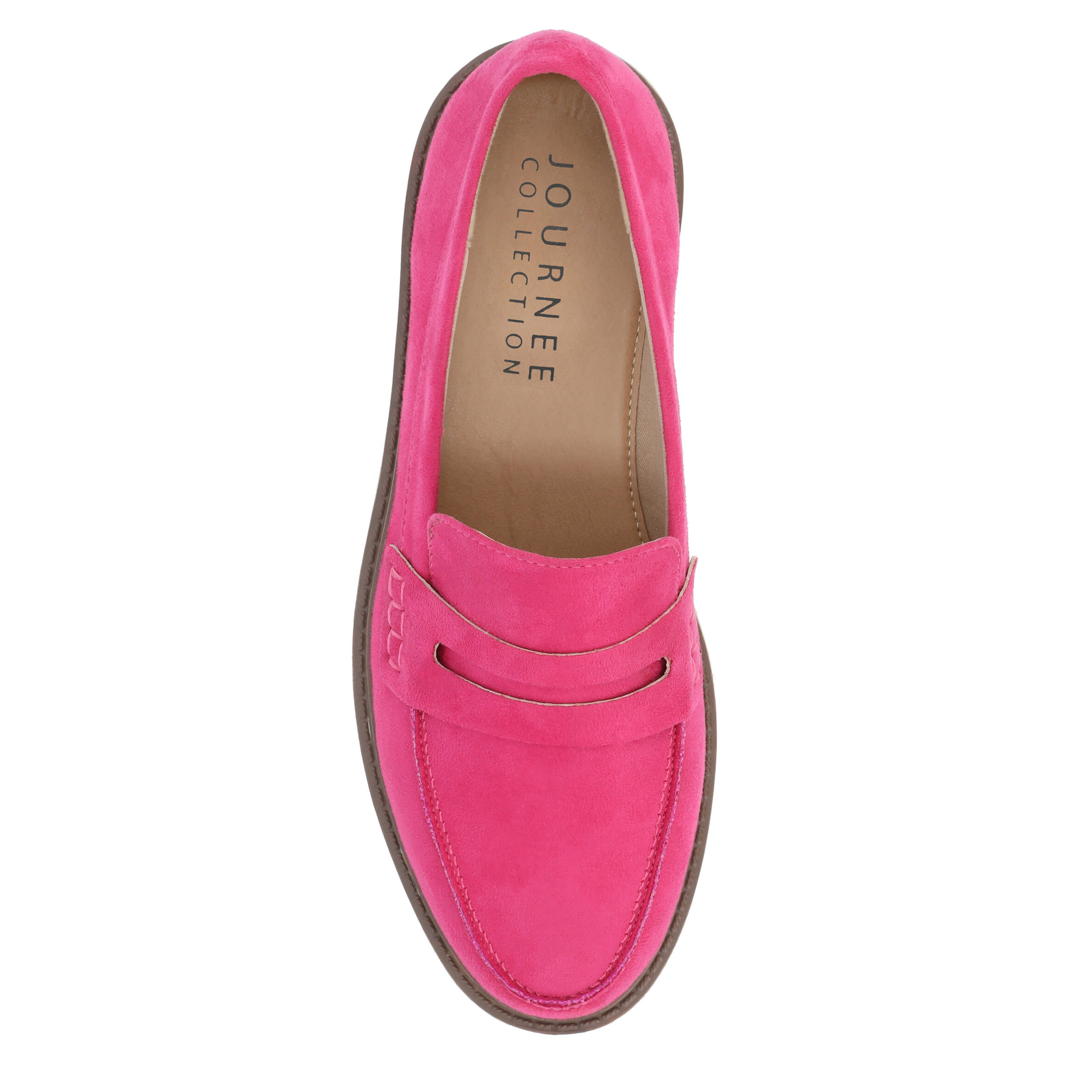 Finish off your ensemble with the Kenly Wide women's penny loafer from Journee Collection. With a faux suede upper featuring the signature slotted strap across the vamp, this moc toe loafer will bring a little edge to your classy style. The Tru Comfort Foamâ„¢ footbed and chunky outsole offer soft cushioning and durable traction, while the low block heel adds a slight lift.