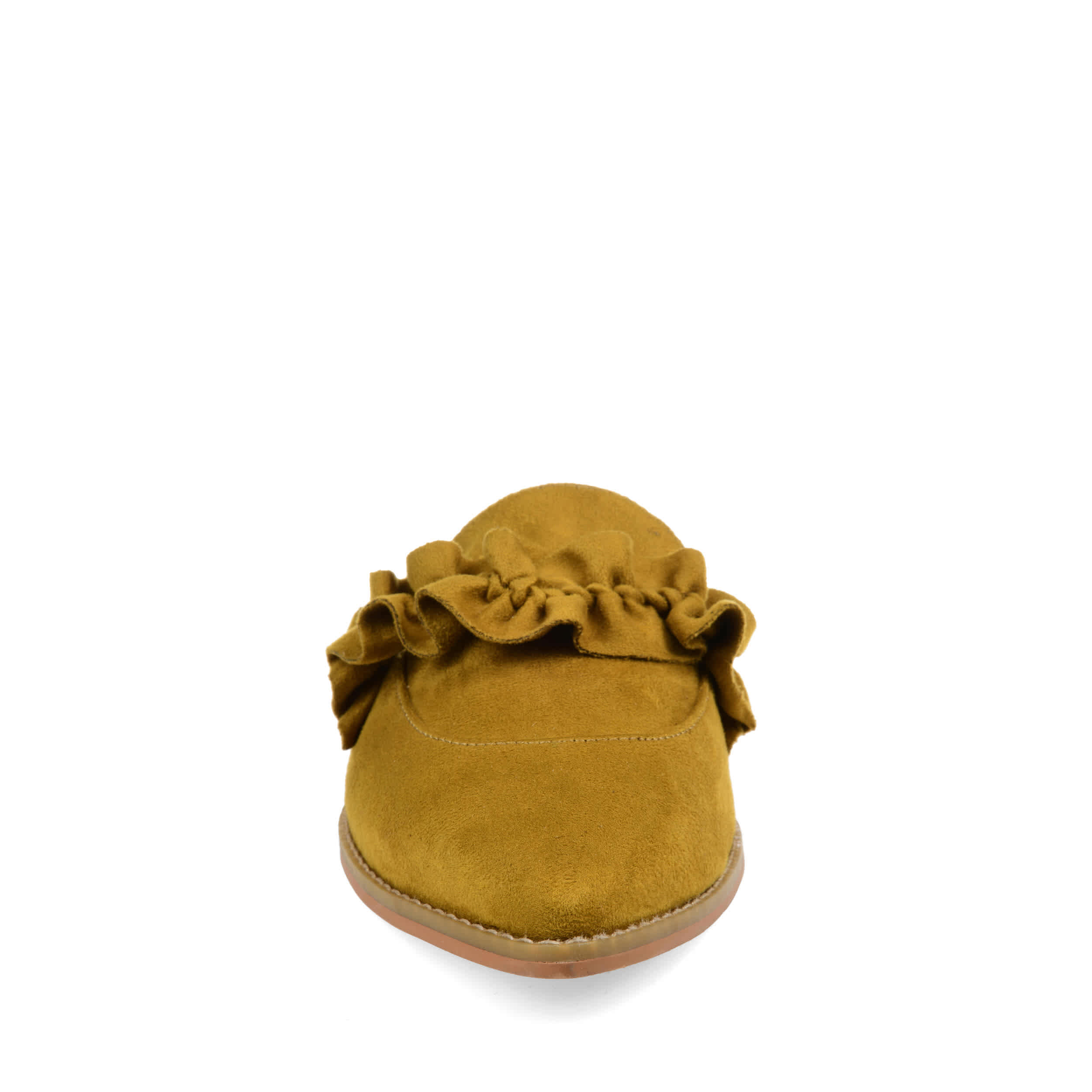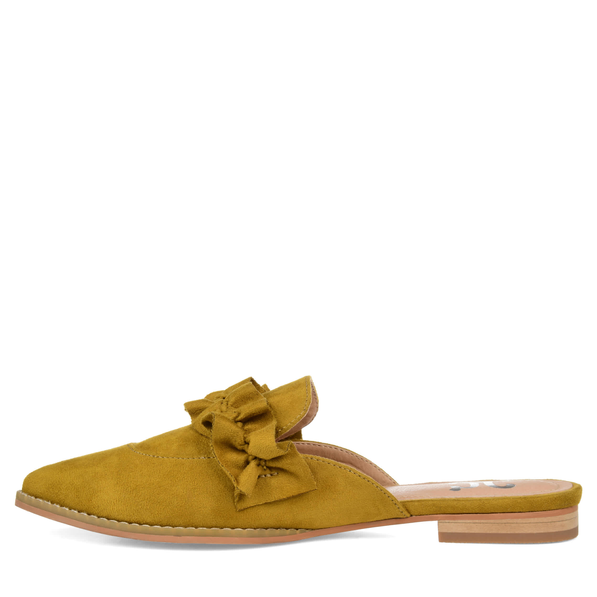Step up your shoe game with the stunning Kessie women's loafer from Journee Collection. The velvety soft microsuede upper featuring a pointed toe with a sassy ruffled accent at the vamp adds sophistication, keeping you looking chic. A padded footbed cushions and soothes your feet with every step, so you can rock these loafers all day without a second thought.