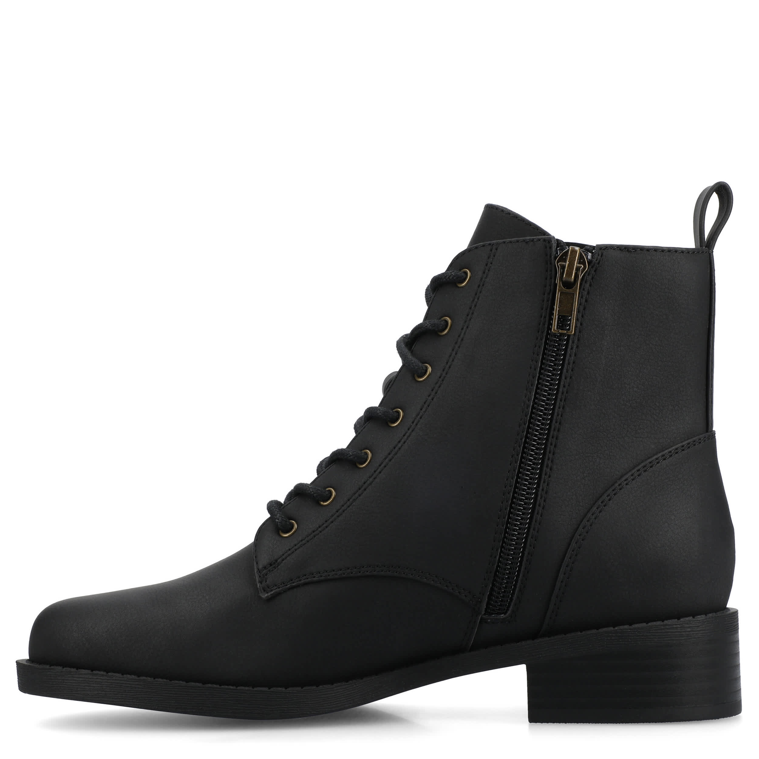 Less work, more style in the Kodah women's boot from Journee Collection. With a vegan leather upper featuring a classic, round toe look, this ankle boot is effortless and versatile. The Journee Comfort System insole cushions, while the low heel provides just enough lift.