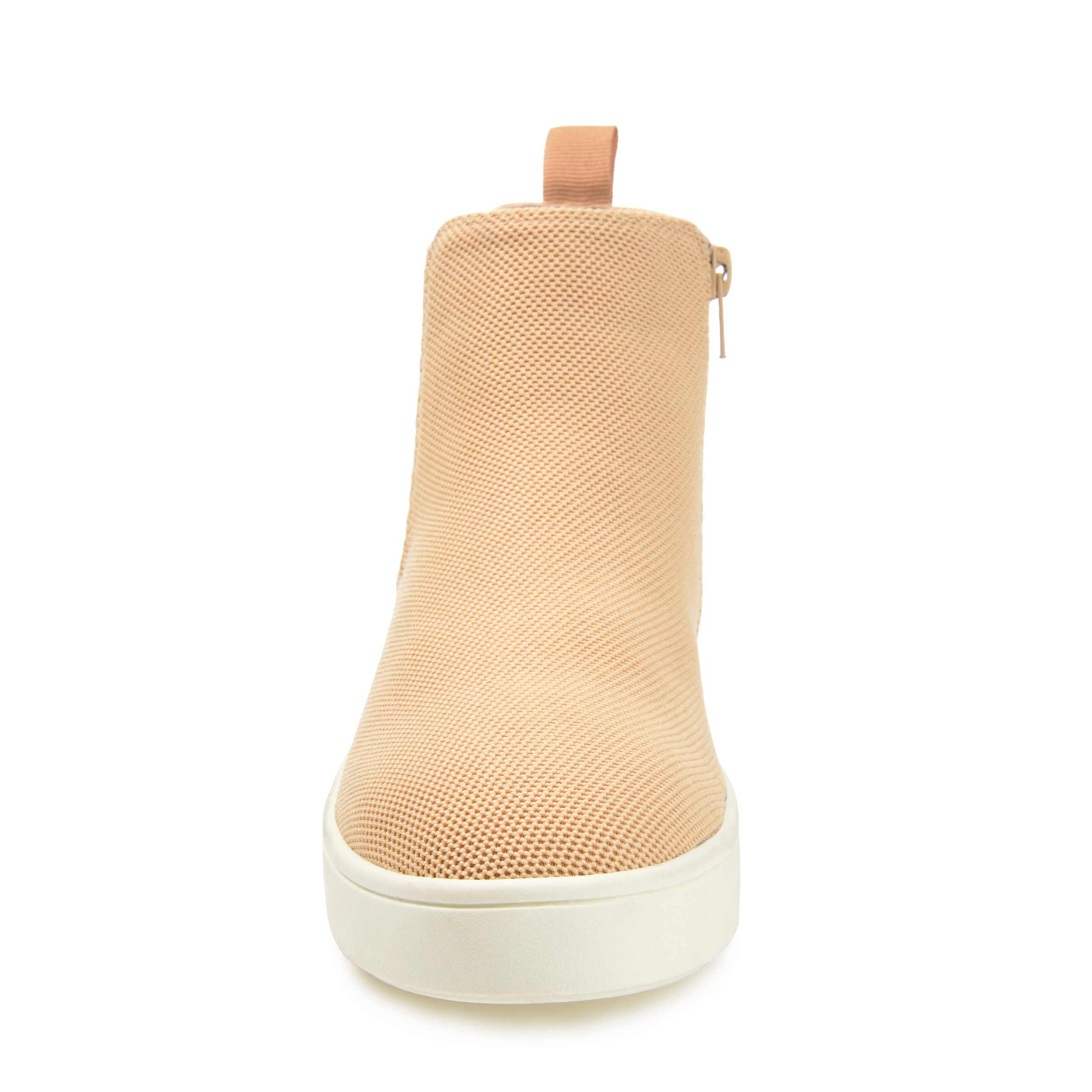 Nothing basic about the Kolbee women's sneaker from Journee Collection. With a mesh knit fabric upper featuring a rear pull tab for easy entry, this pull-on sneaker also has a supportive elastic panel. TheTru Comfort Foamâ„¢ footbed cushions, while the athletic sole is durable.